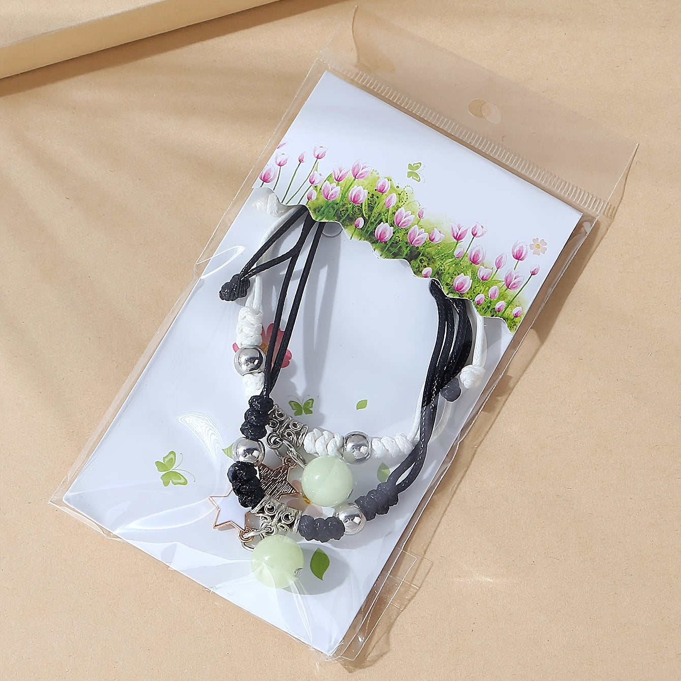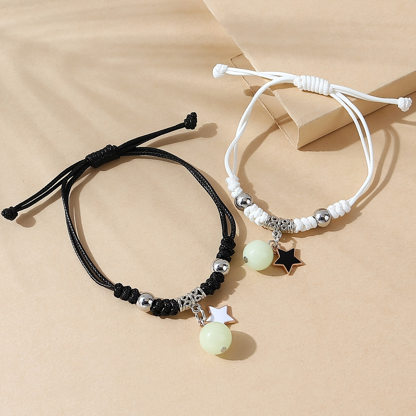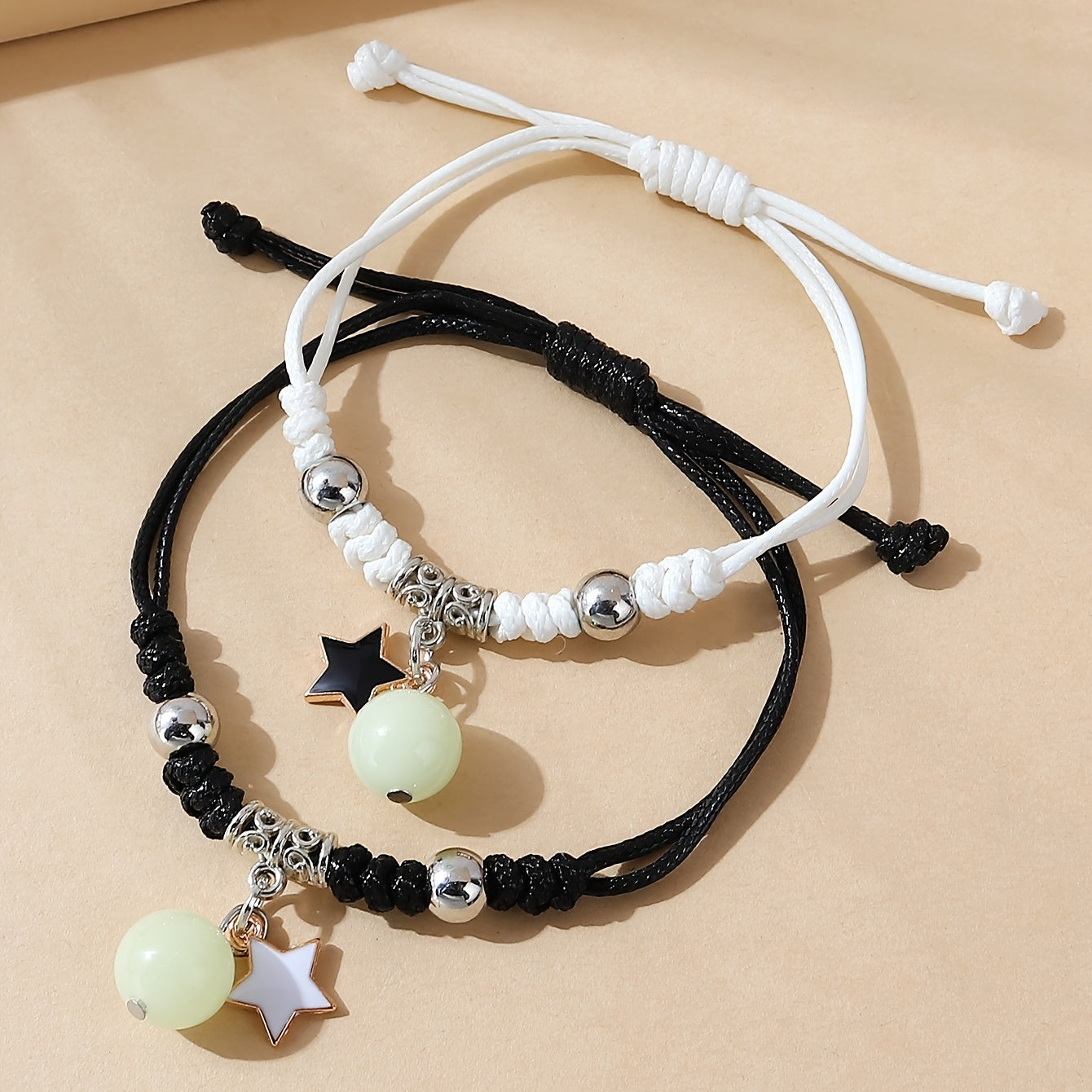 This set includes 2 adjustable braided rope bracelets with luminous ball star pendants, perfect for couples. Ideal Valentine's Day decorations gift.
