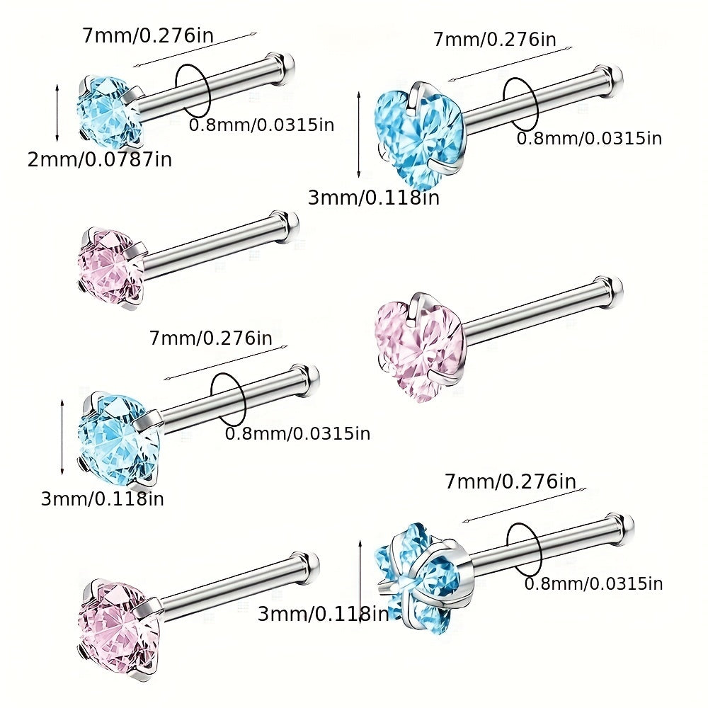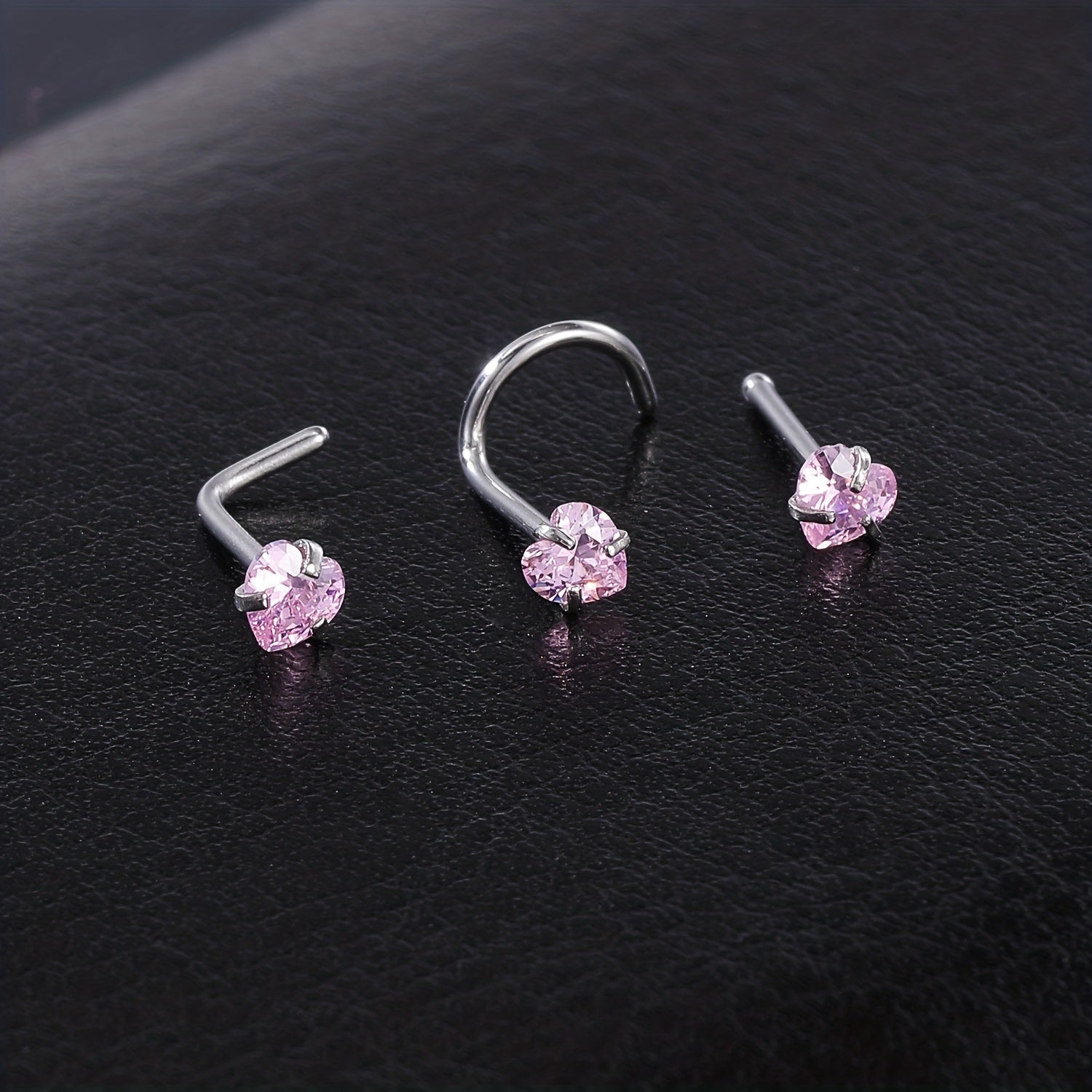 Add a touch of sparkle to your nose piercing with this stylish 20g CZ nose ring. Features a love heart, star, and round design. Made of high-quality materials, this nose bone stud is perfect for everyday wear.