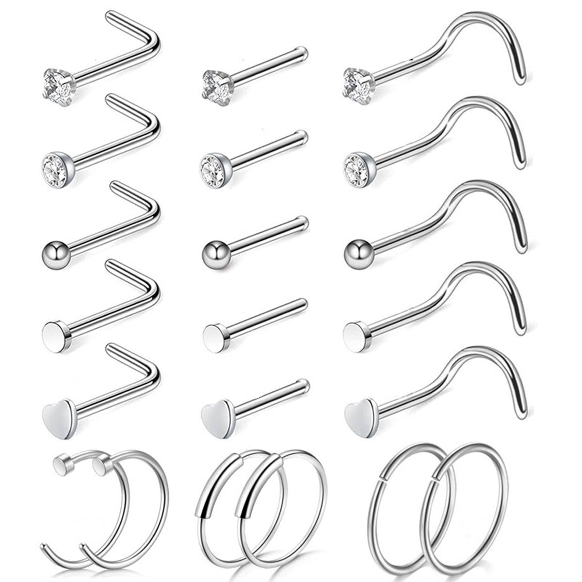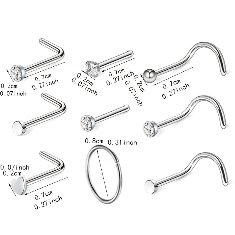 Stylish and durable nose rings made of surgical steel, perfect for women and girls. Includes stainless steel septum rings for versatile styles.