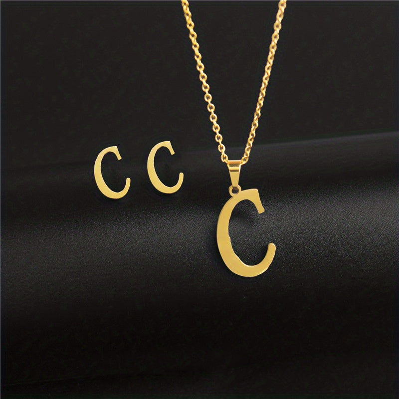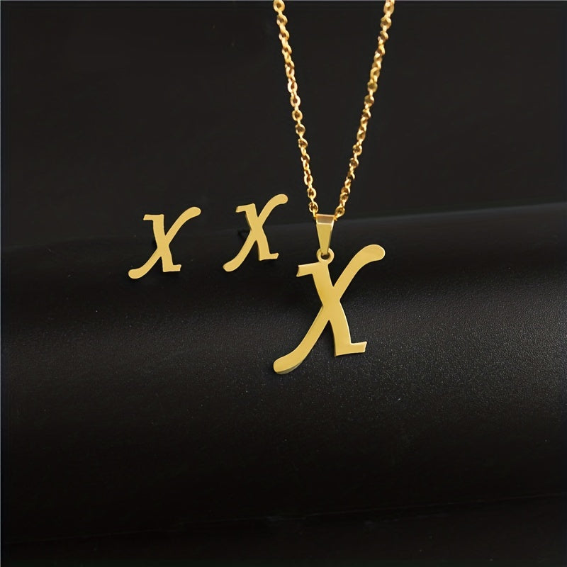 Complete your party look with this stylish set featuring a necklace and earrings. Made of stainless steel, this set includes the letters A to Z in a trendy design.