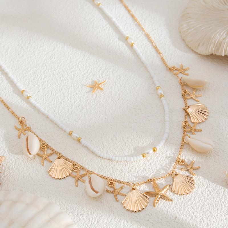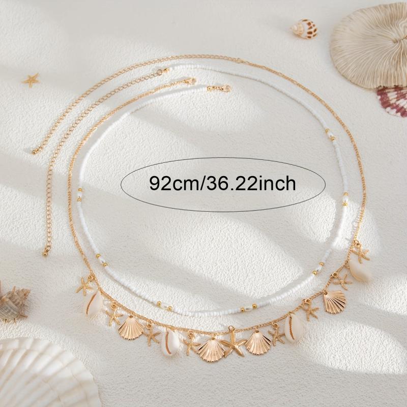 Add a touch of bohemian charm to your beach or holiday outfit with this set of 2 rice beads waist chains featuring star pendants.