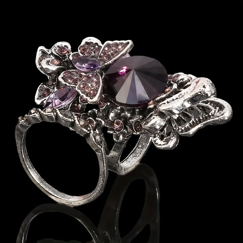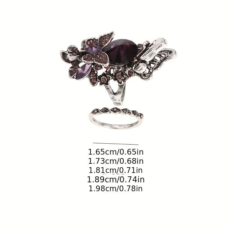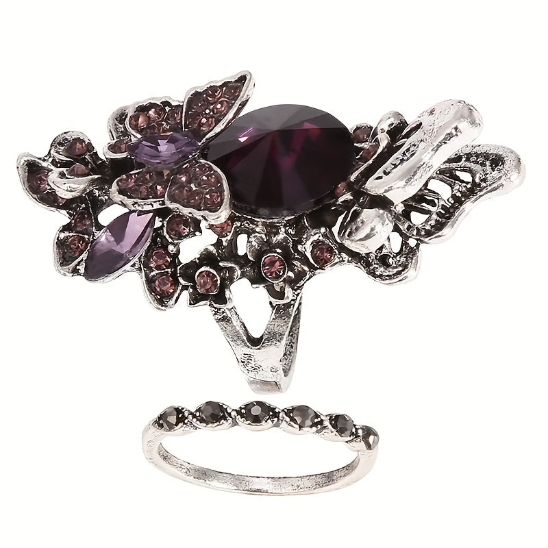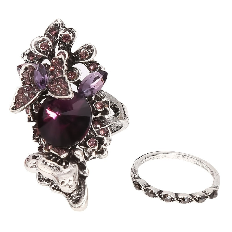 These 2pcs stacking rings feature a butterfly inlaid large gemstone design in purple, perfect for adding a touch of elegance to your evening party attire.