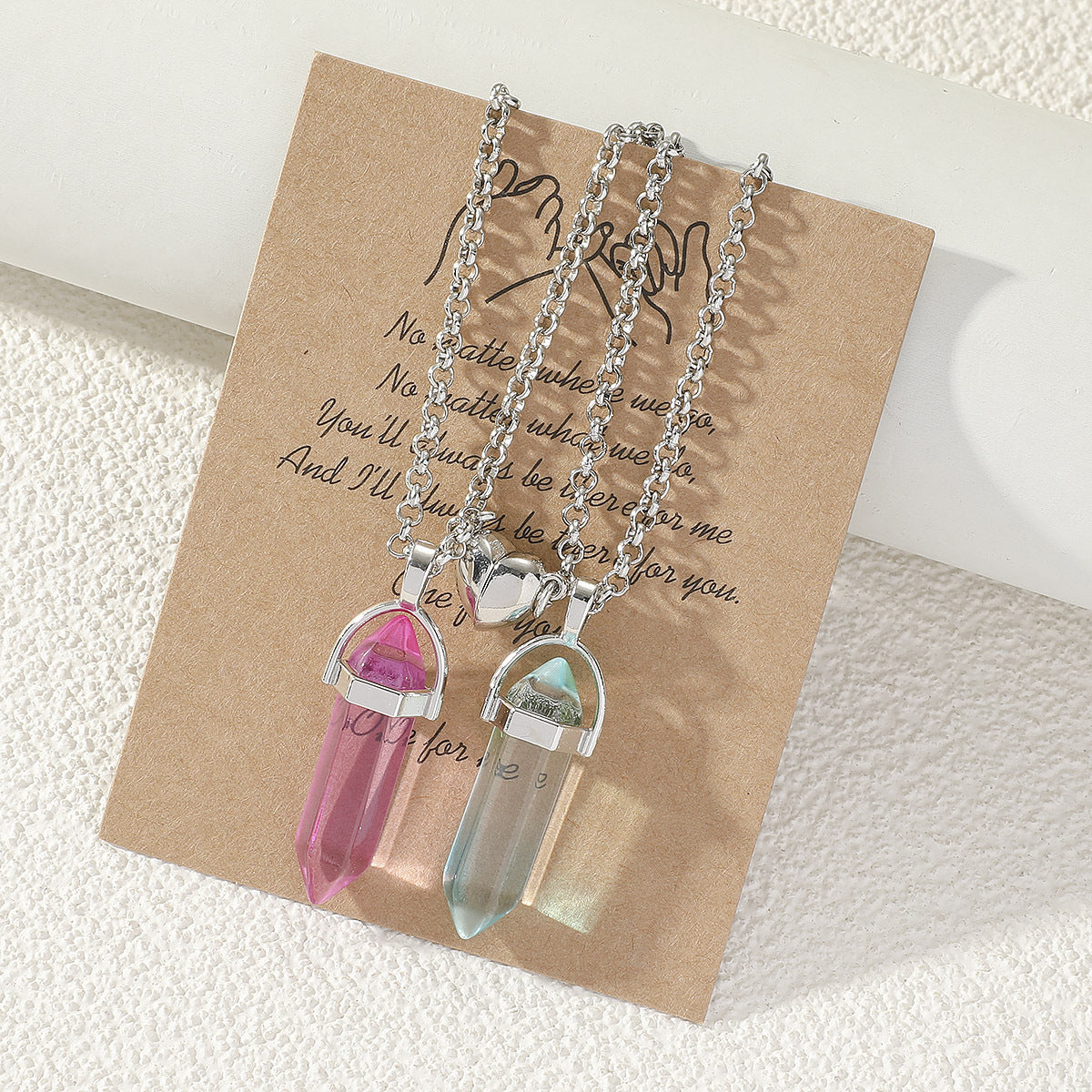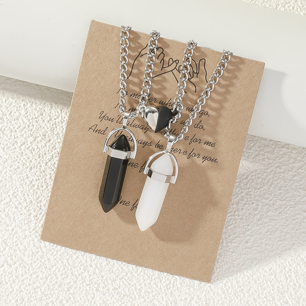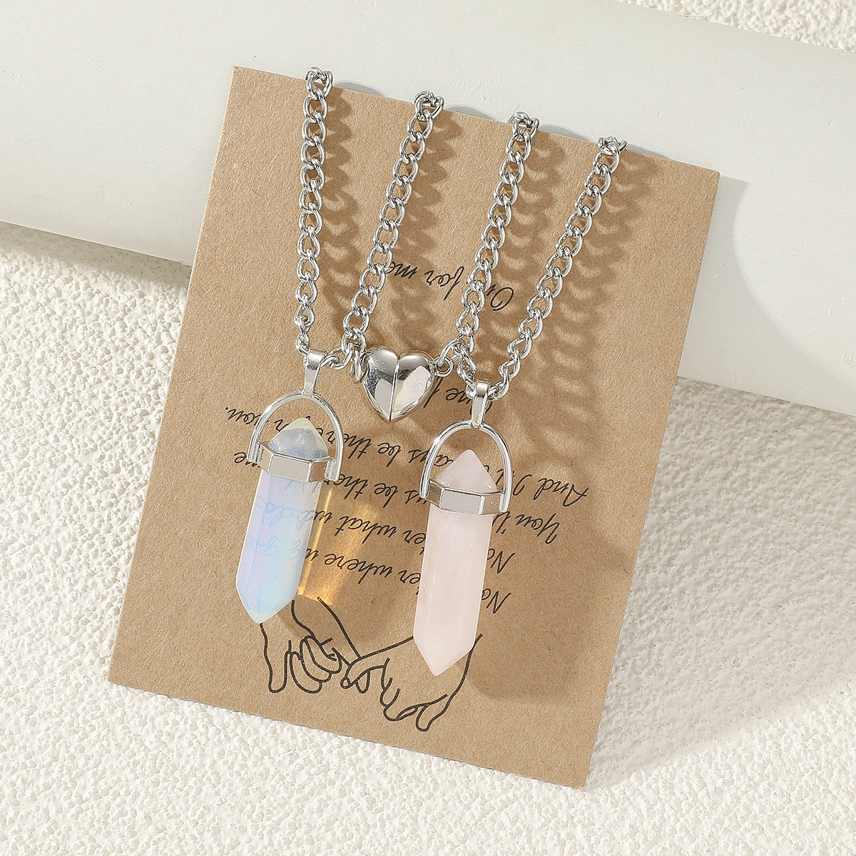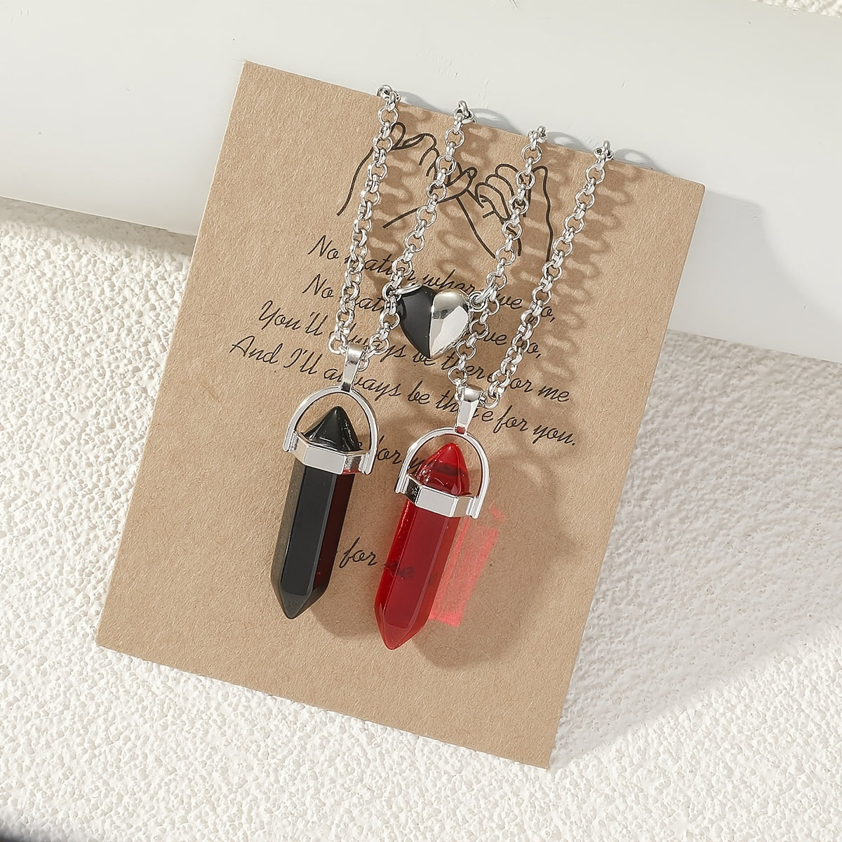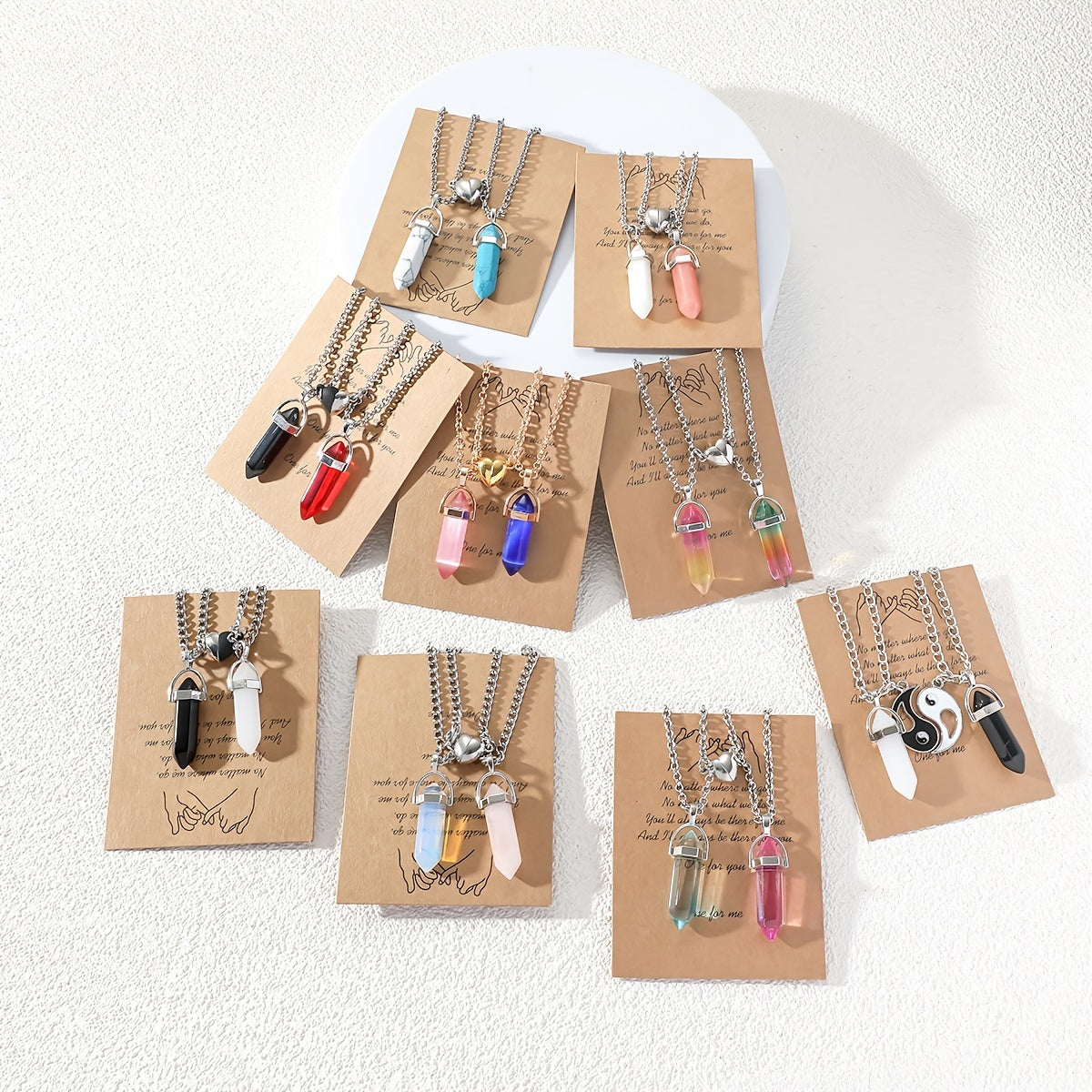 This set includes two natural stone crystal pendant magnet necklaces with wishes card. Perfect gift for couples to share positive energy and connection.