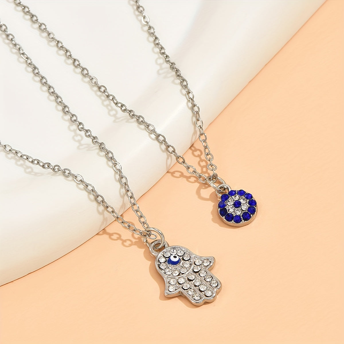 This set includes two Evil's Eye Hand Of Fatima pendant necklaces, perfect for women and girls. Made of high-quality materials, these necklaces are stylish and protective.