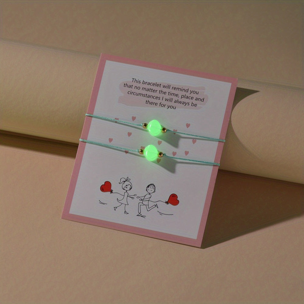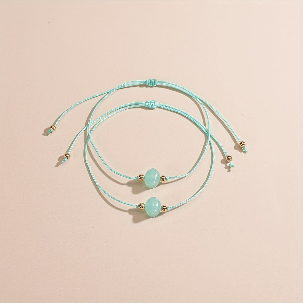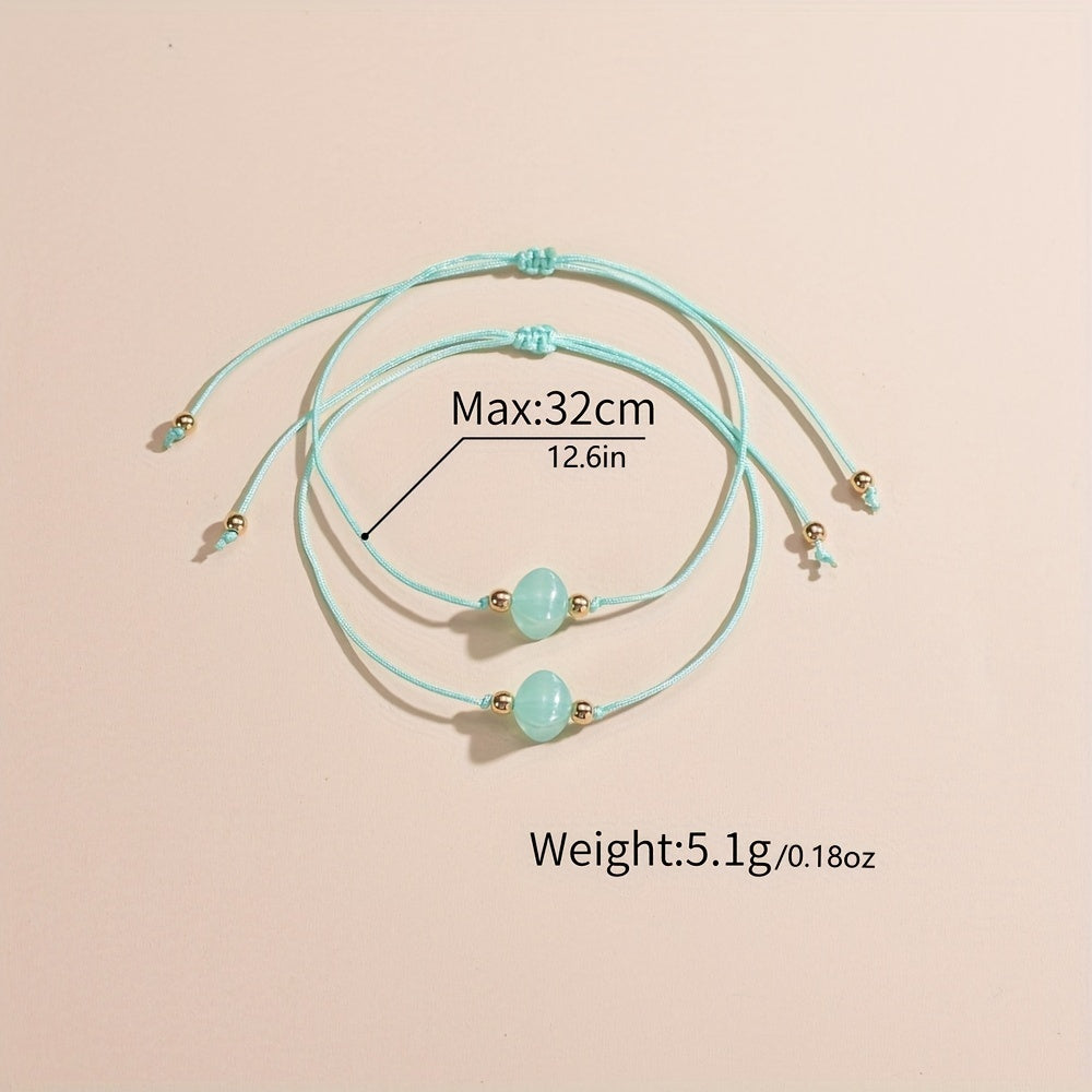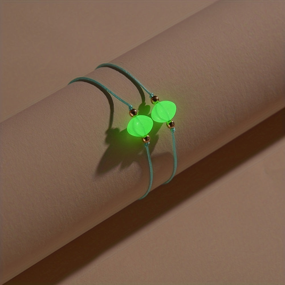 Get this stylish bracelet set featuring green luminous beads. The bracelets are adjustable and perfect for ladies who love unique accessories.