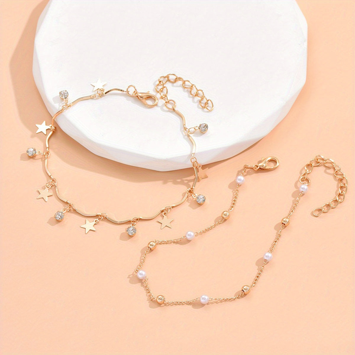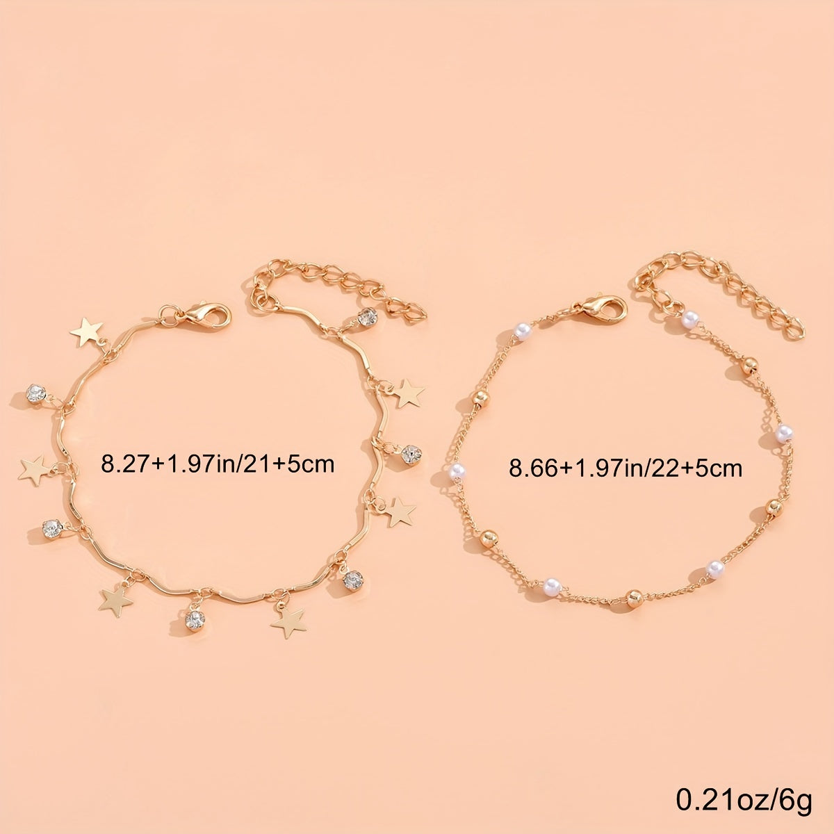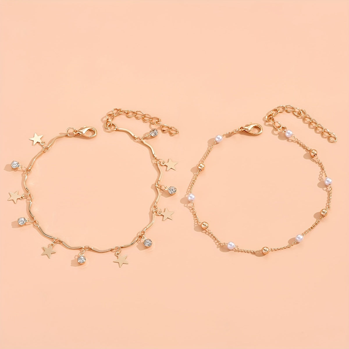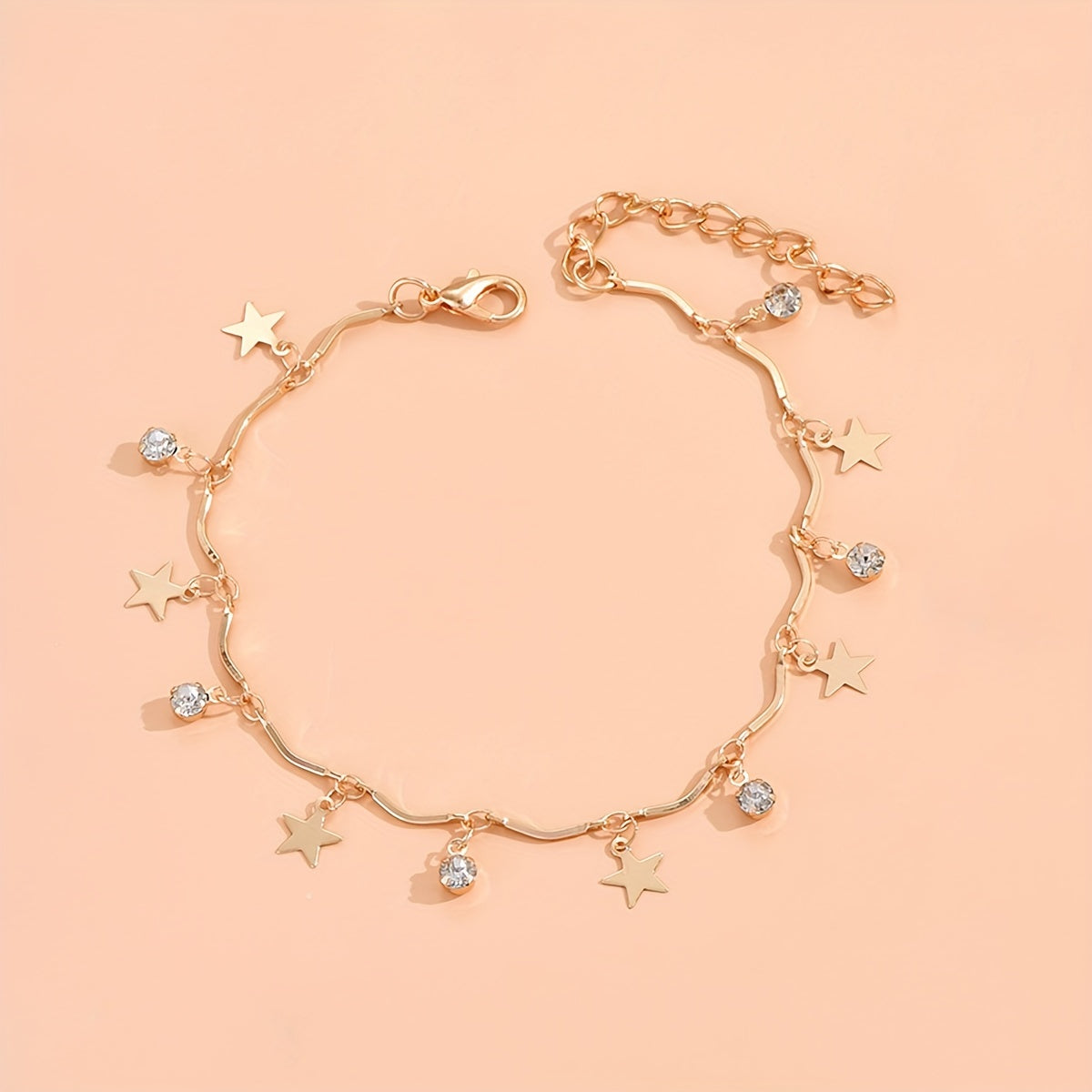 Elevate your ankle game with this stunning set of two anklets featuring a star tassel pendant and inlaid rhinestones. Perfect for adding a touch of sparkle to your summer look.
