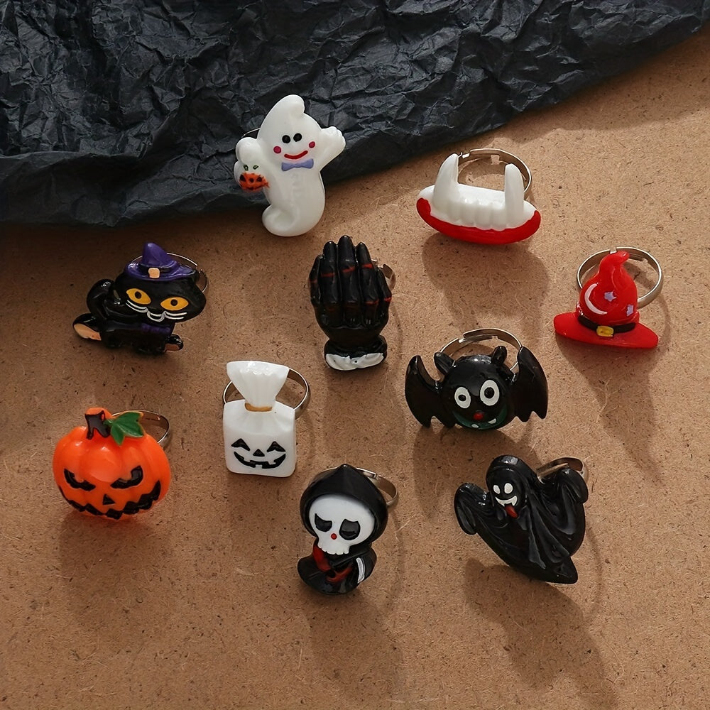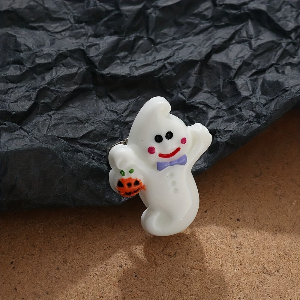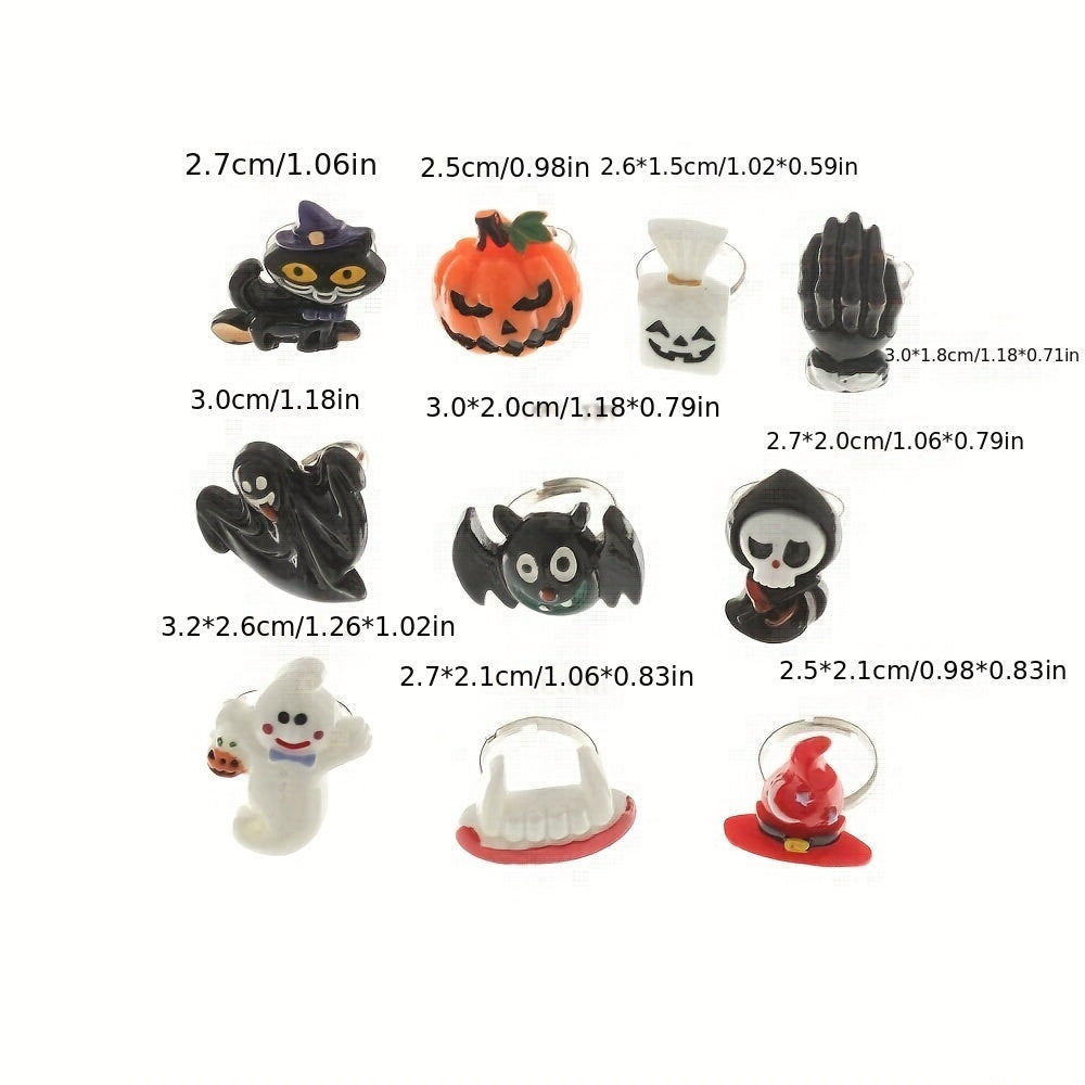 Add a spooky touch to your Halloween outfit with these 3 pairs of silver-plated resin rings featuring ghost and pumpkin designs. Perfect for girls' party accessories.