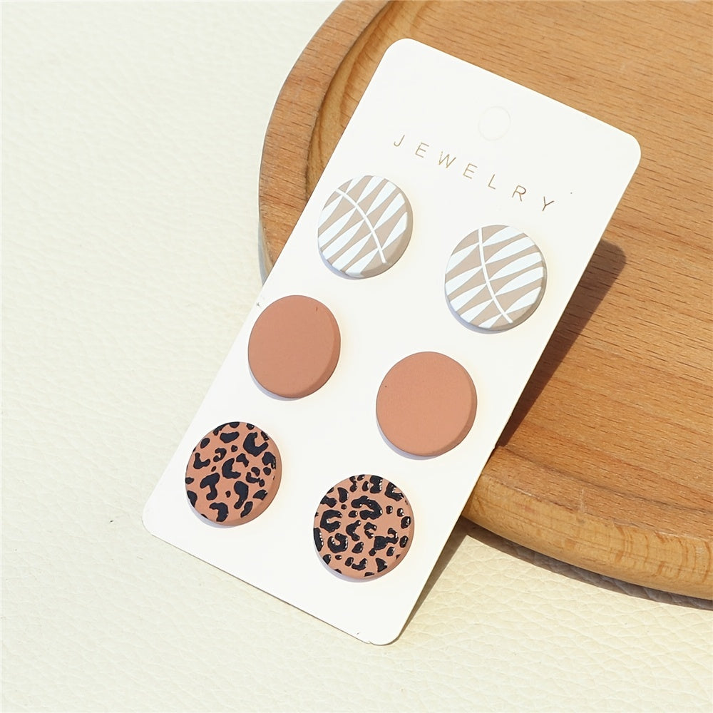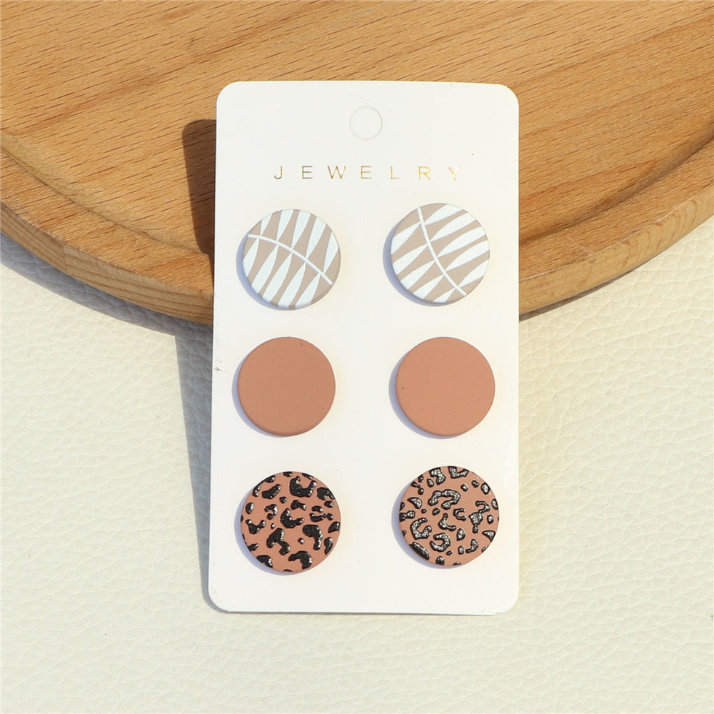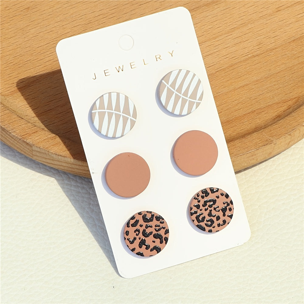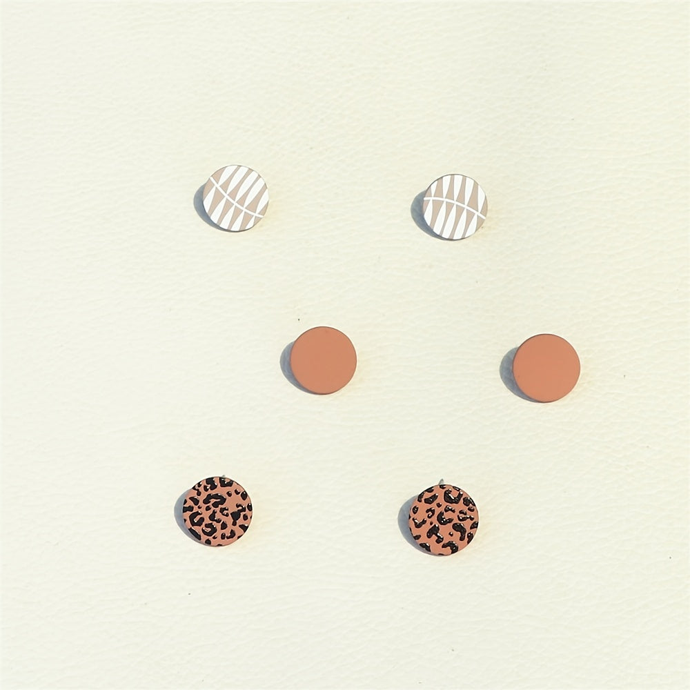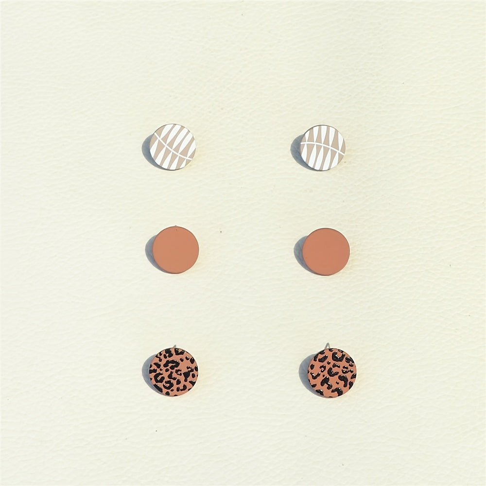 3 Pairs Leopard Pattern Stud Earrings Acrylic Jewelry
