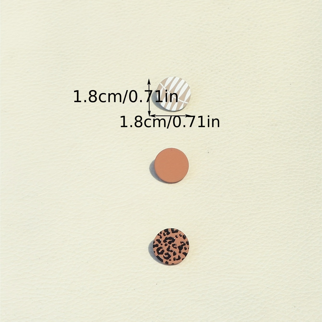 Add a touch of wild style to your daily look with these round stud earrings featuring a brown and leopard pattern. Perfect for everyday wear and easy to mix and match with different outfits.