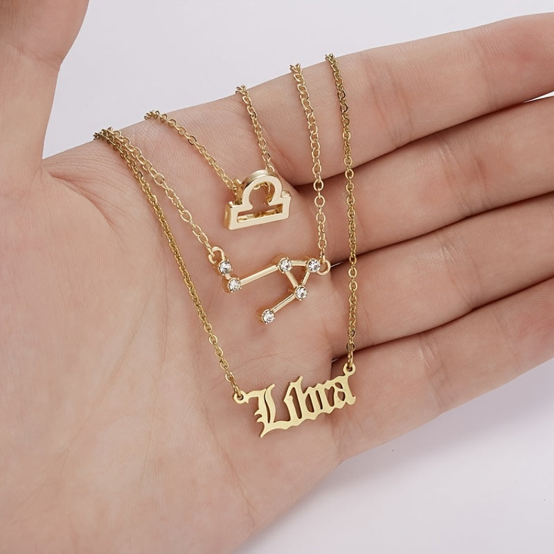 Elegant set of 3 constellation necklaces featuring 12 zodiac signs with a unique design. Perfect gift for women and girls on their birthday or any special occasion.