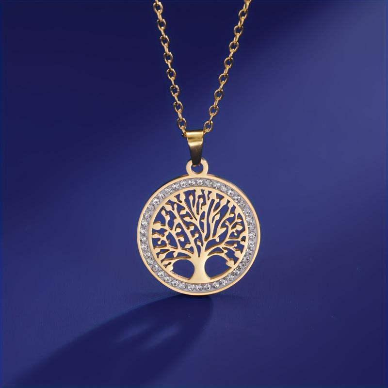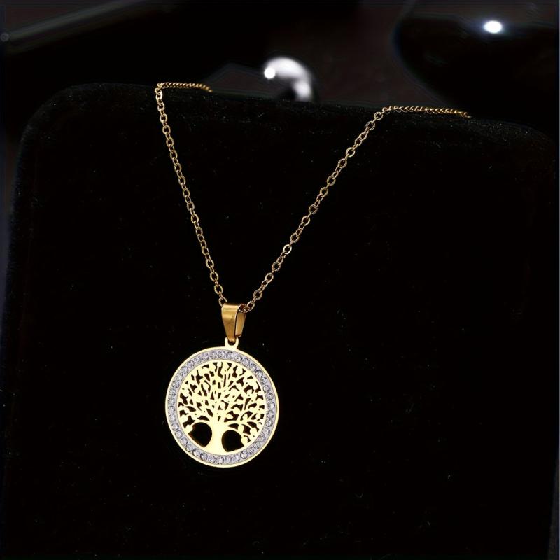 Embrace eternal growth with this stunning Tree of Life necklace made of 316 stainless steel. Perfect for weddings, daily wear, and parties, this piece symbolizes endless possibilities and sparkles with rhinestones.