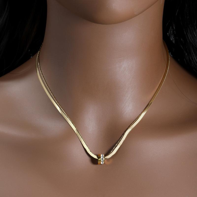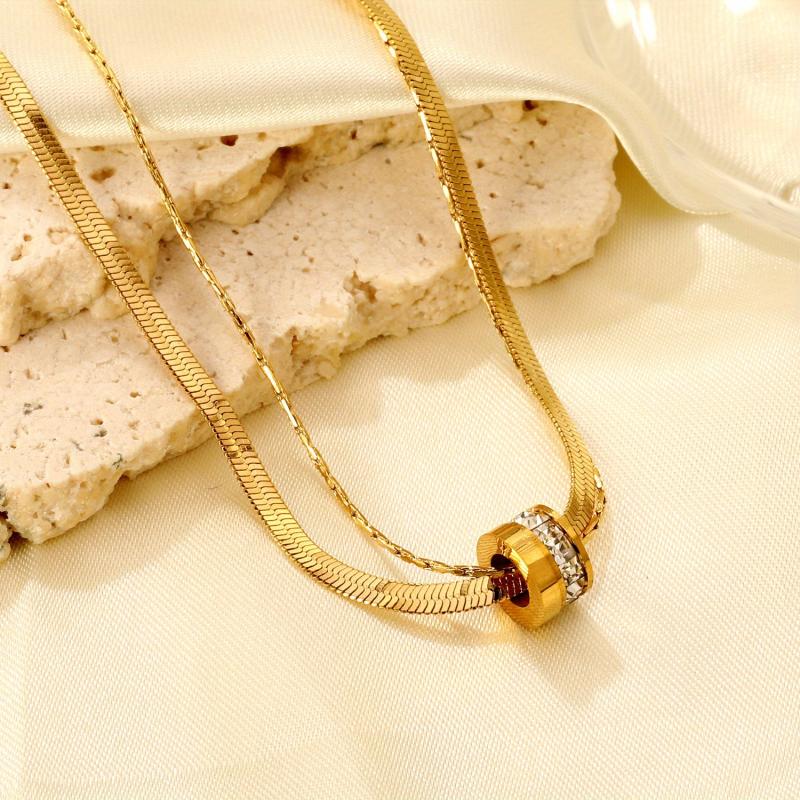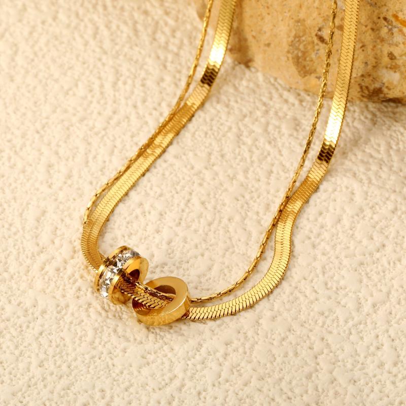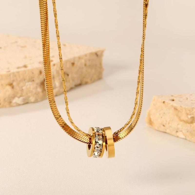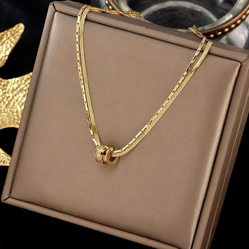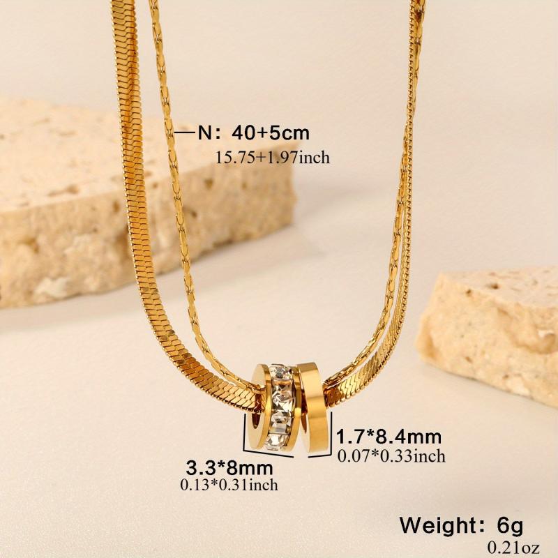 Elevate your look with this 316 stainless steel double layer necklace featuring an interlocking ring pendant in a luxurious 18K golden plated finish. Perfect for both casual attire and special occasions, this bohemian jewelry piece is a must-have for women.