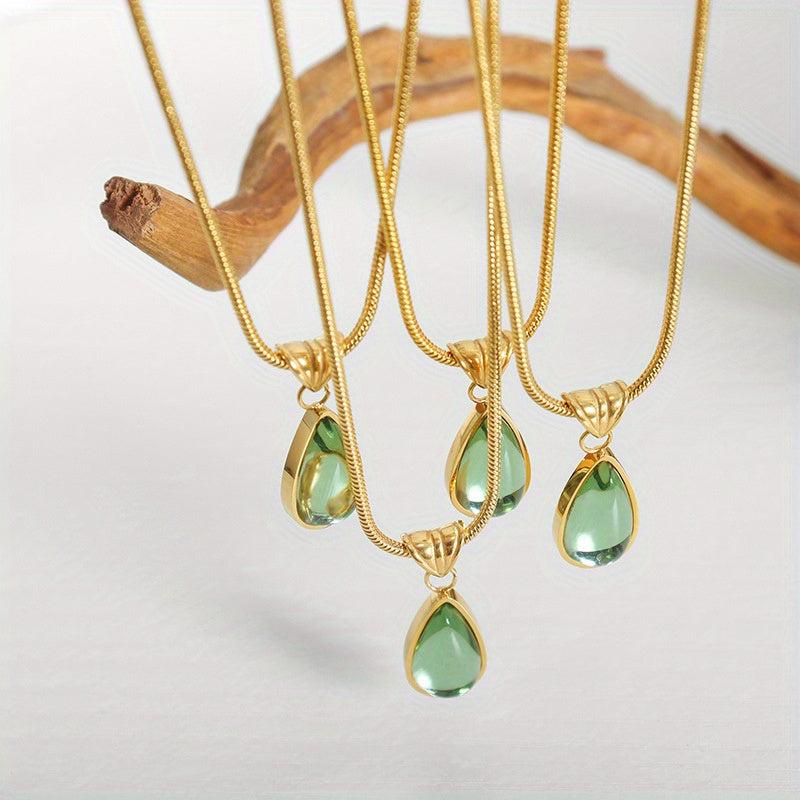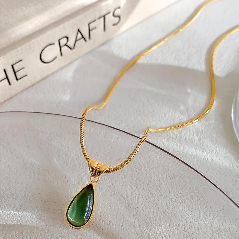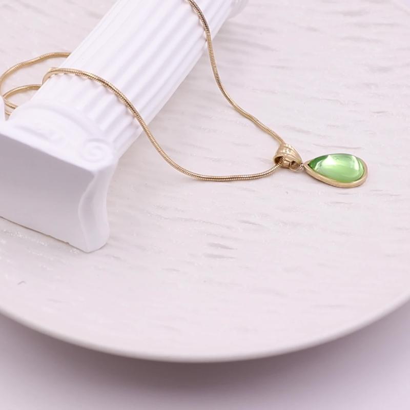 Add a touch of boho chic to your style with this stunning French drop pendant necklace. The green water drop ocean design is perfect for daily wear and special occasions. The snake bone pendant adds an edgy yet elegant touch to your outfit.