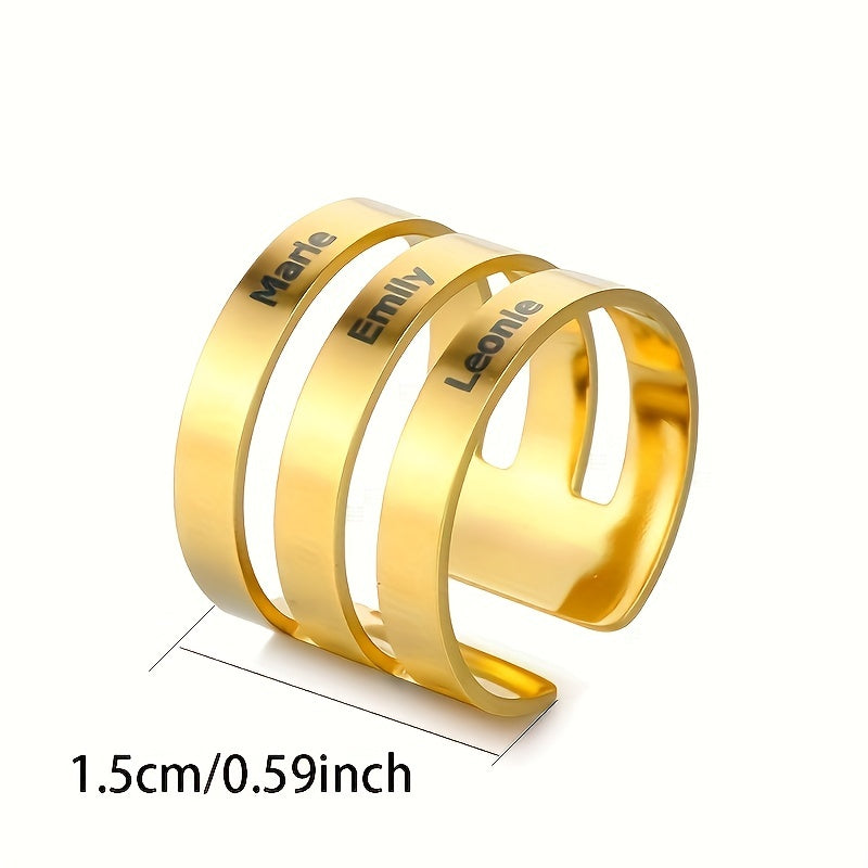 Elevate your daily outfits with this wide ring crafted from 316L stainless steel plated with 18k gold. Make it unique by choosing to carve personalized letters. Customized service available for a special touch.
