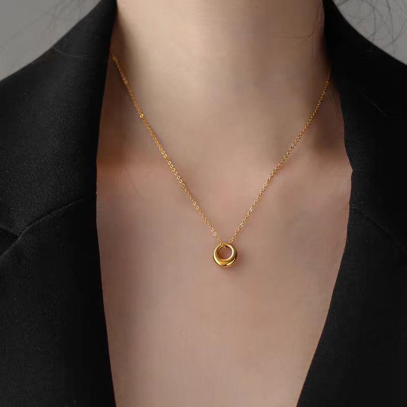 316L Stainless Steel O Pendant Necklace 18K Golden Plated Chain