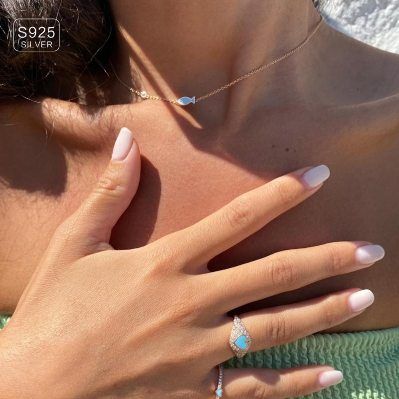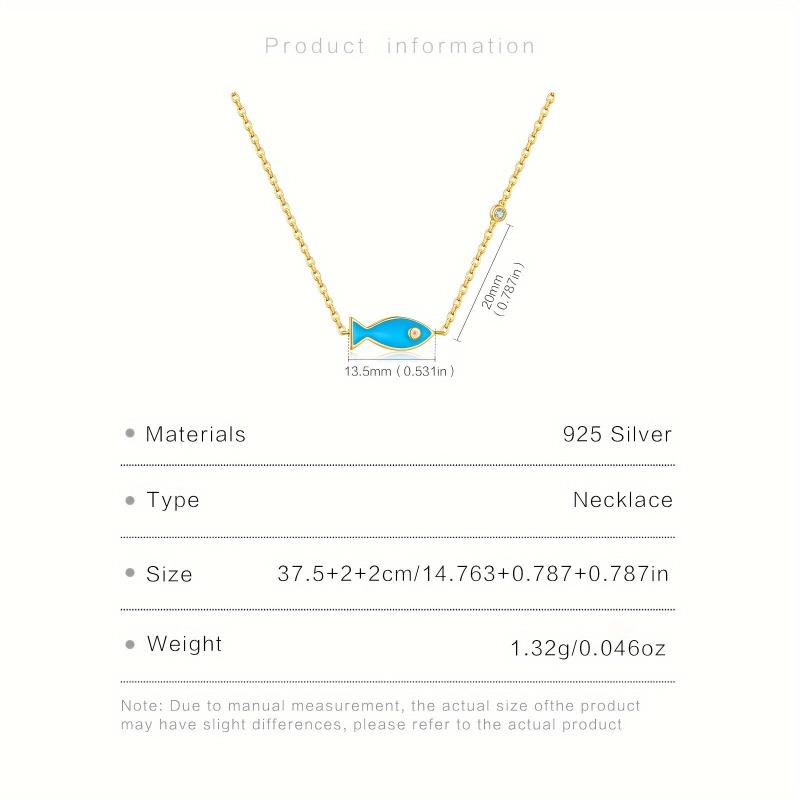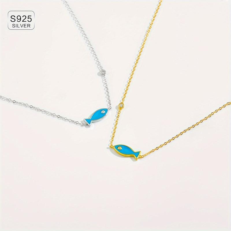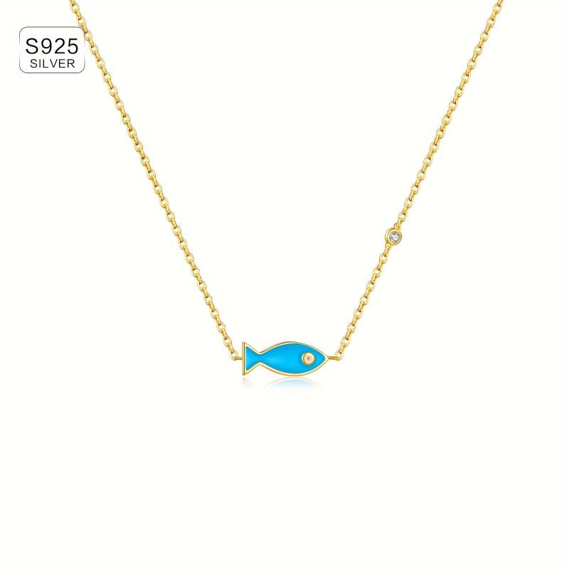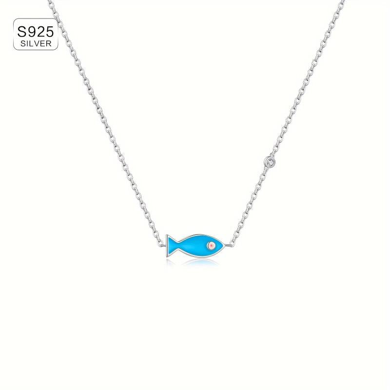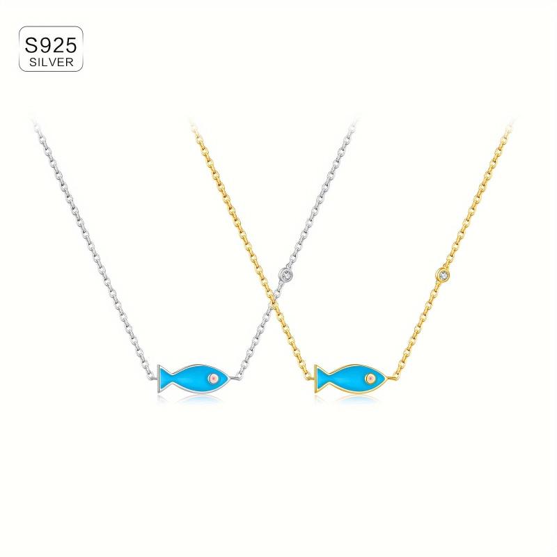32g Fish Pendant 925 Silver Necklace with Sparkling Zirconia Accents