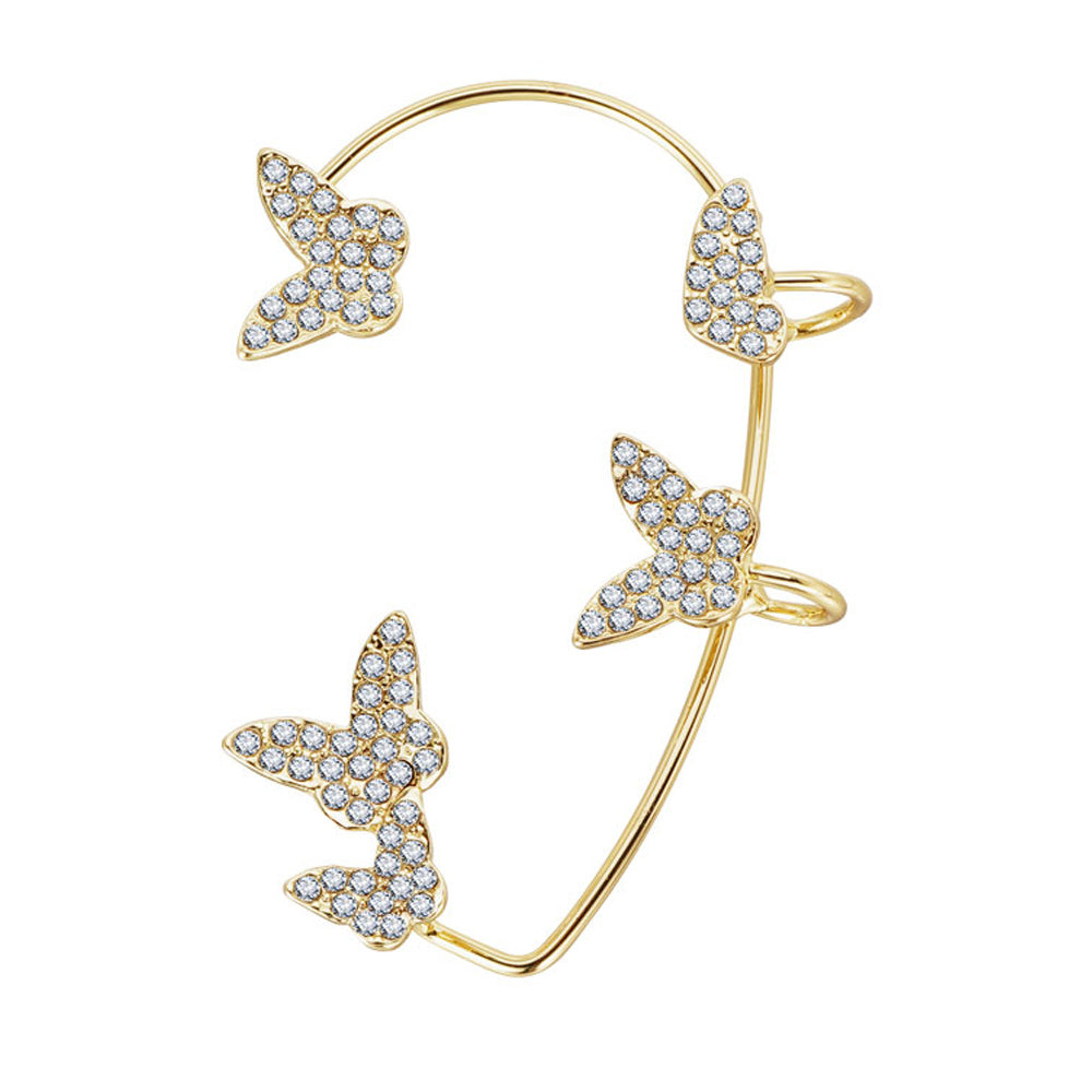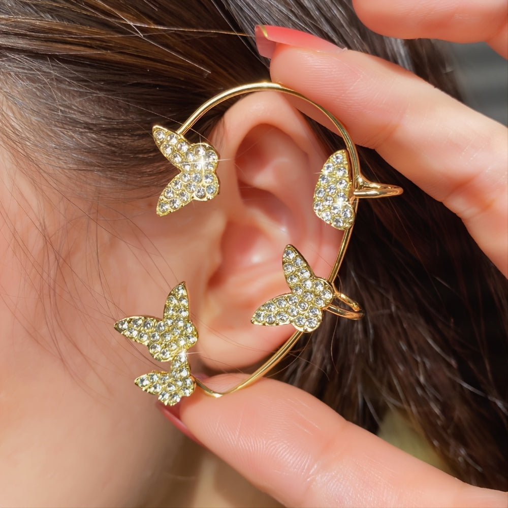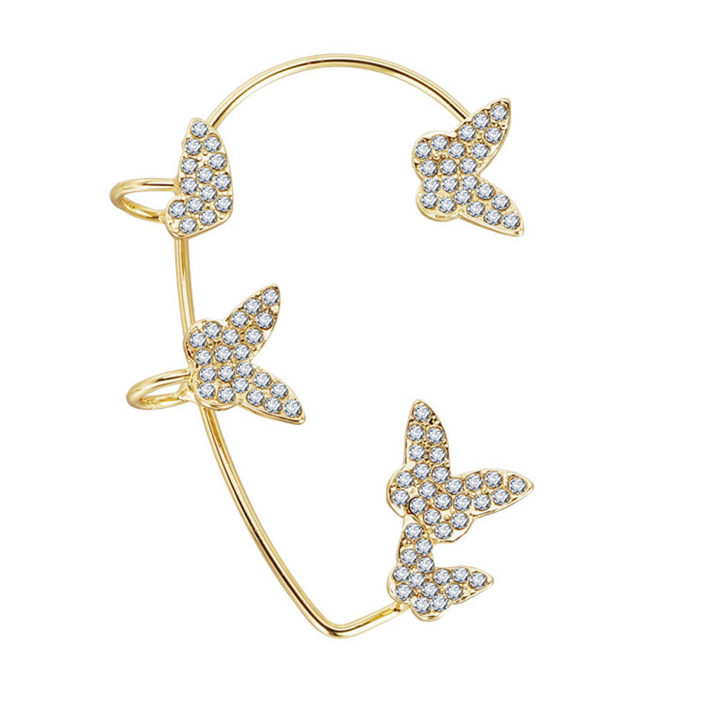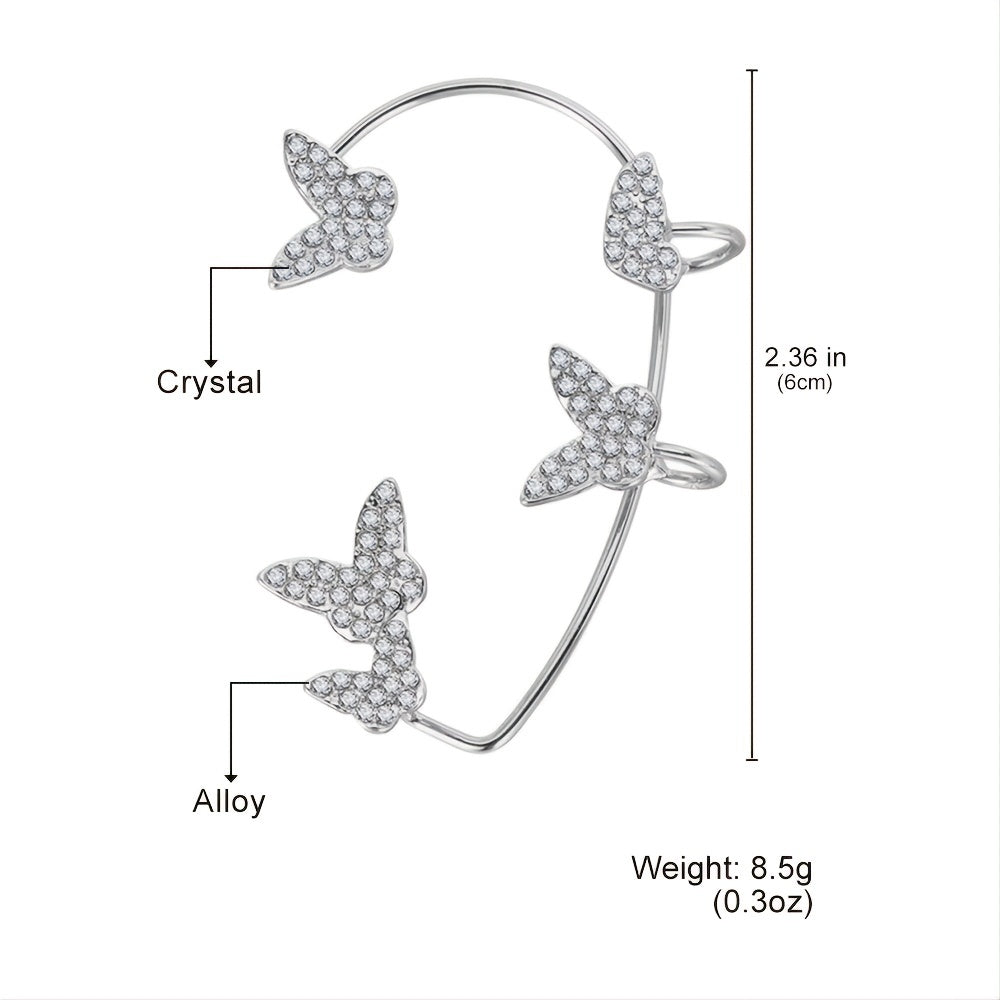 Stylish 3D butterfly cuff earrings with crystal detailing, no piercing required.