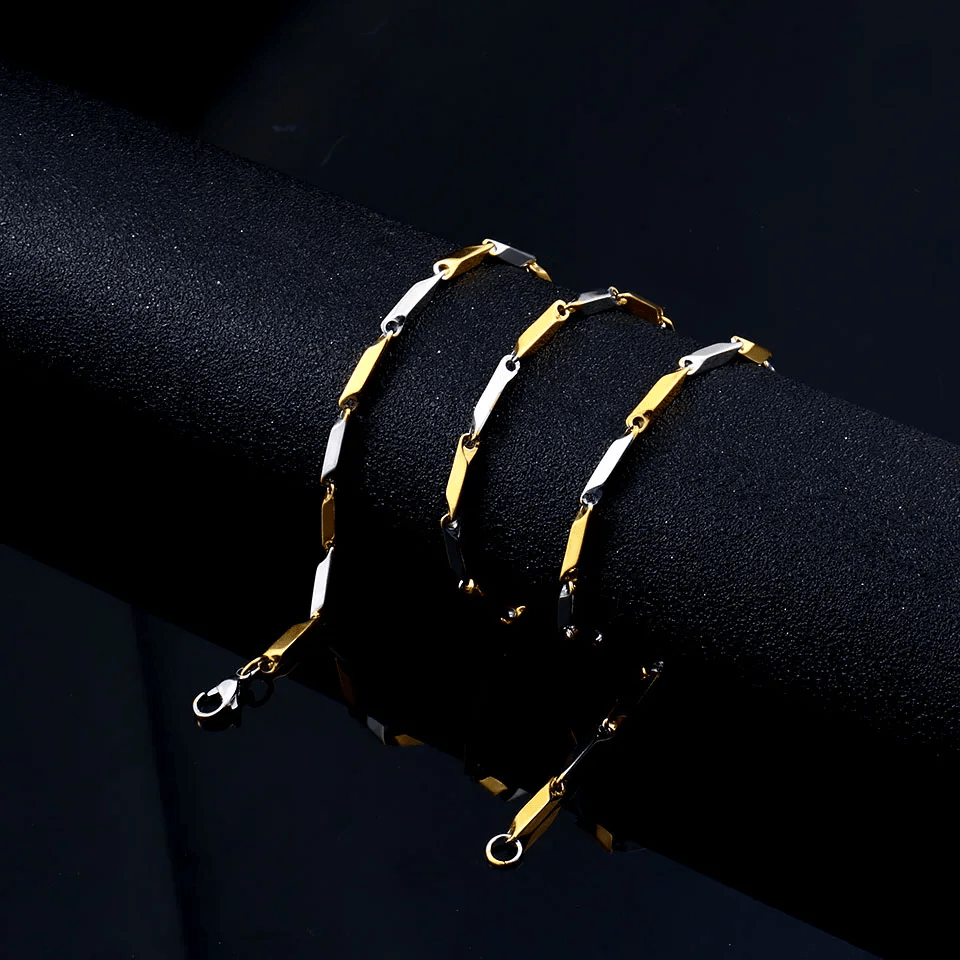 This hip-hop inspired necklace features a 3mm stainless steel square bamboo link chain, perfect for adding a touch of rock style to your outfit. It's a great accessory and gift for men.