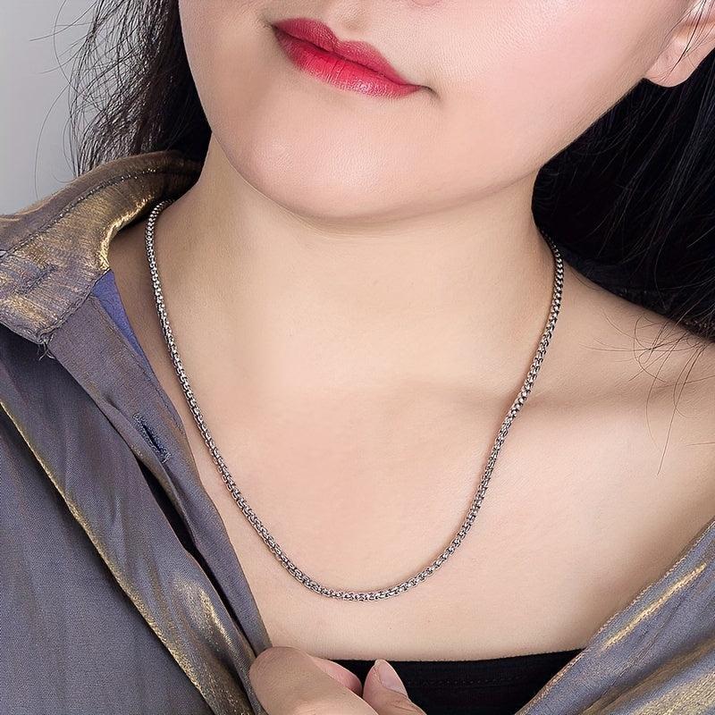 Get this unisex 3mm stainless steel necklace that is hypoallergenic, never fades, and water washable. Perfect for couples, parties, and vacations.