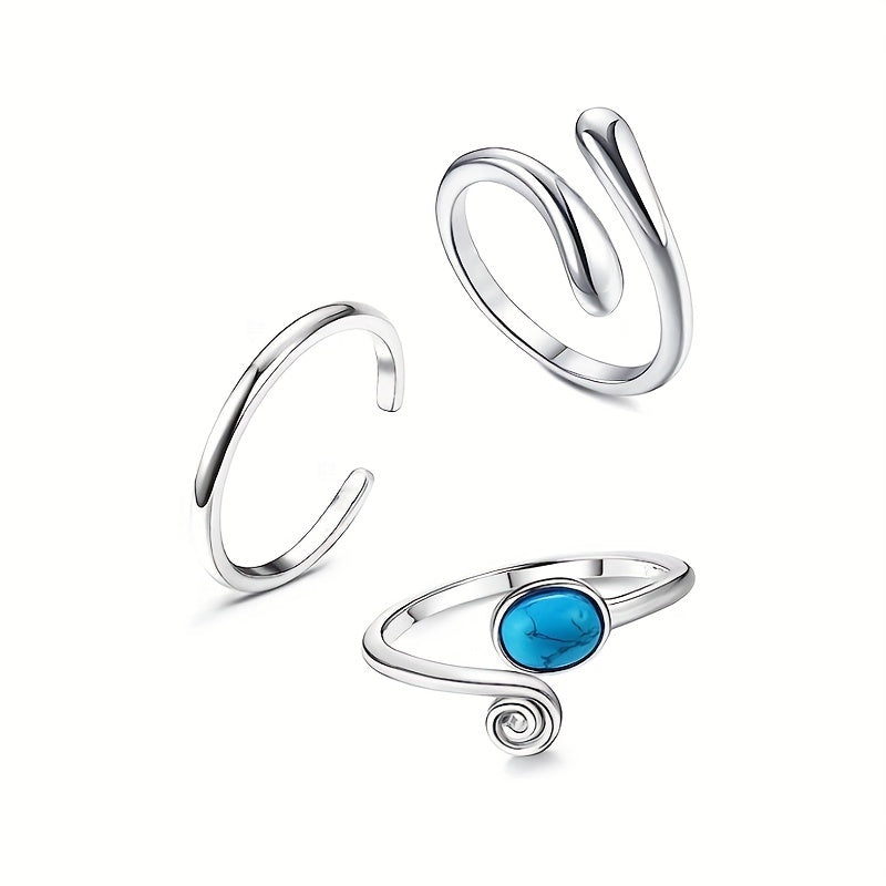 Enhance your summer style with these 3pcs open band toe rings featuring moonstone and turquoise gemstones. Comfortably fits most sizes for a chic barefoot look.