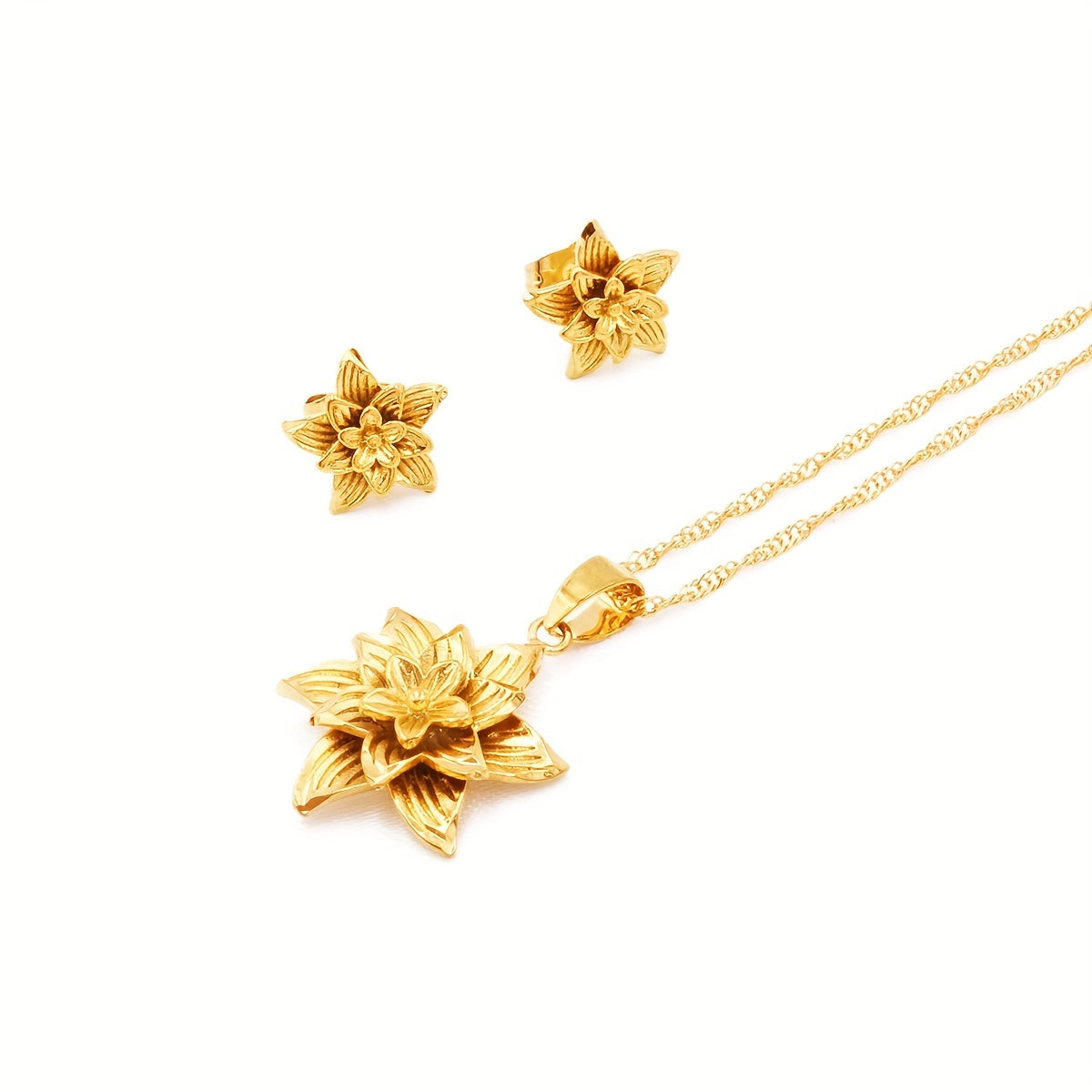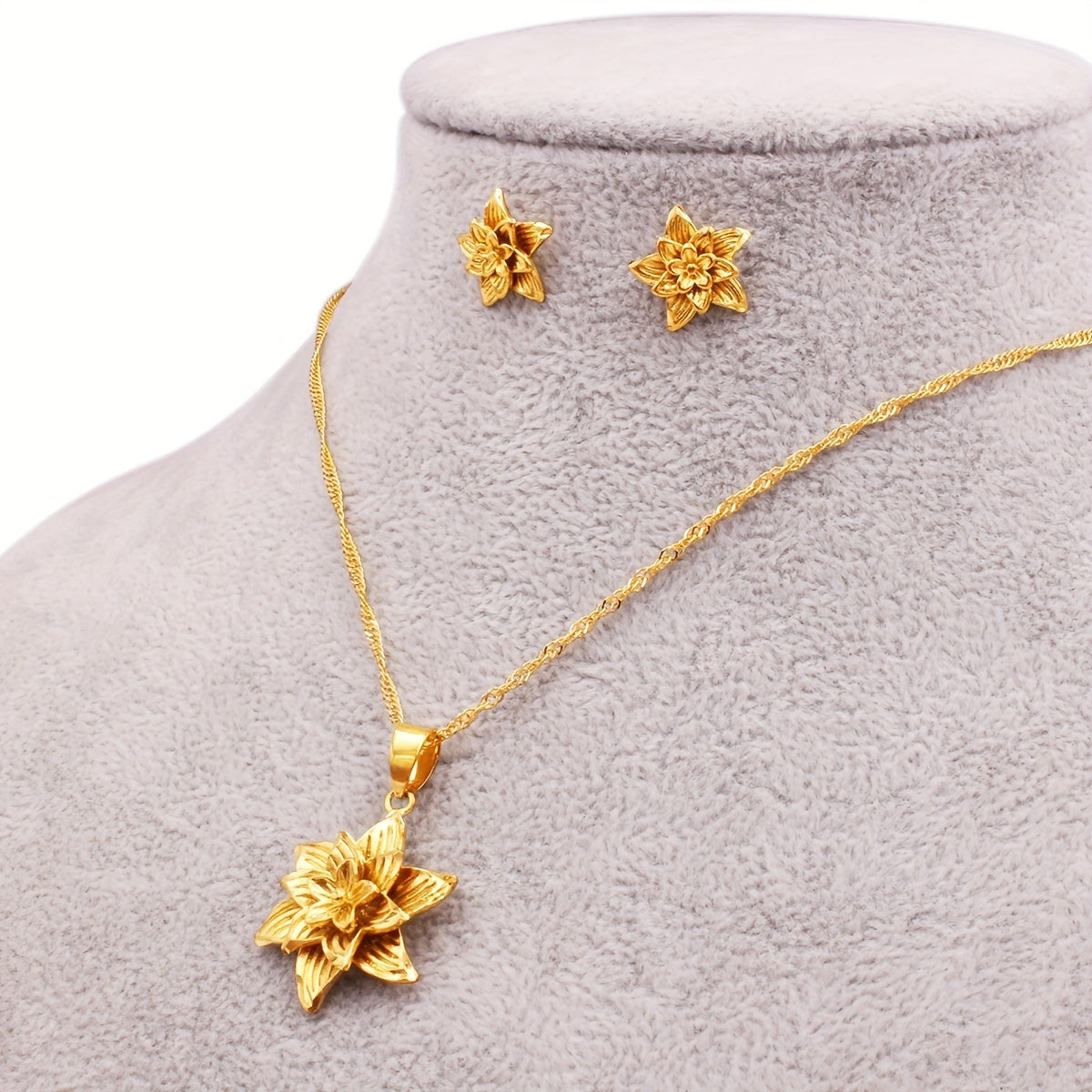 3pcs Flower Jewelry Set 18k Plated for Daily Outfits Dainty Chrismas Gift