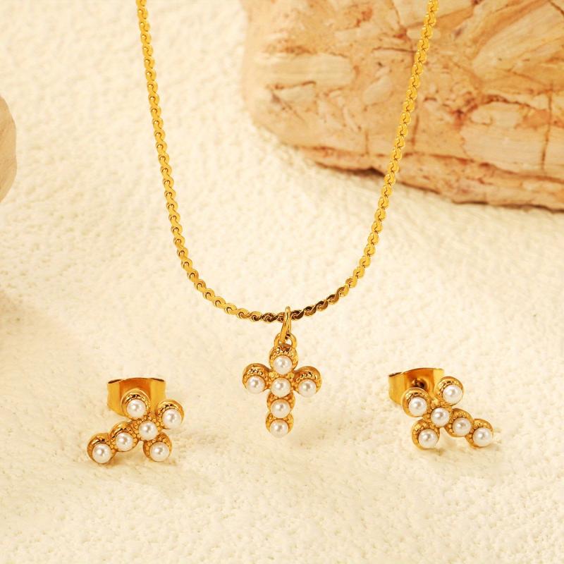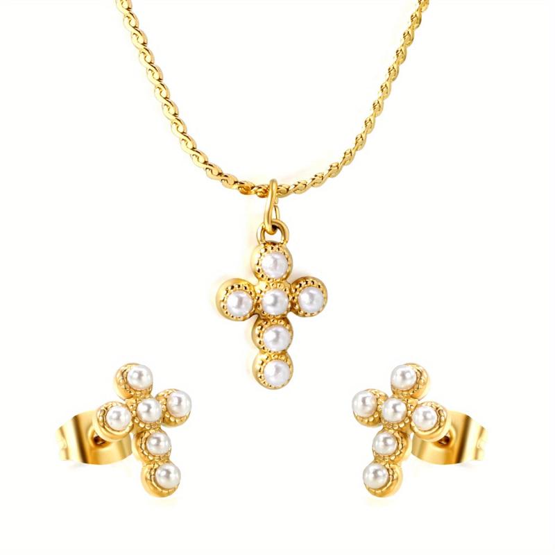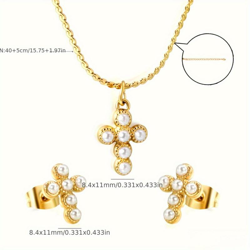 Complete your casual attire with this elegant 3-piece jewelry set featuring a cross pendant necklace and sophisticated earrings. Perfect for parties, banquets, and music festivals.