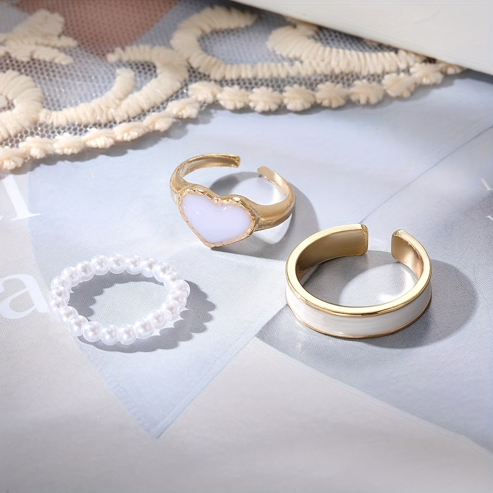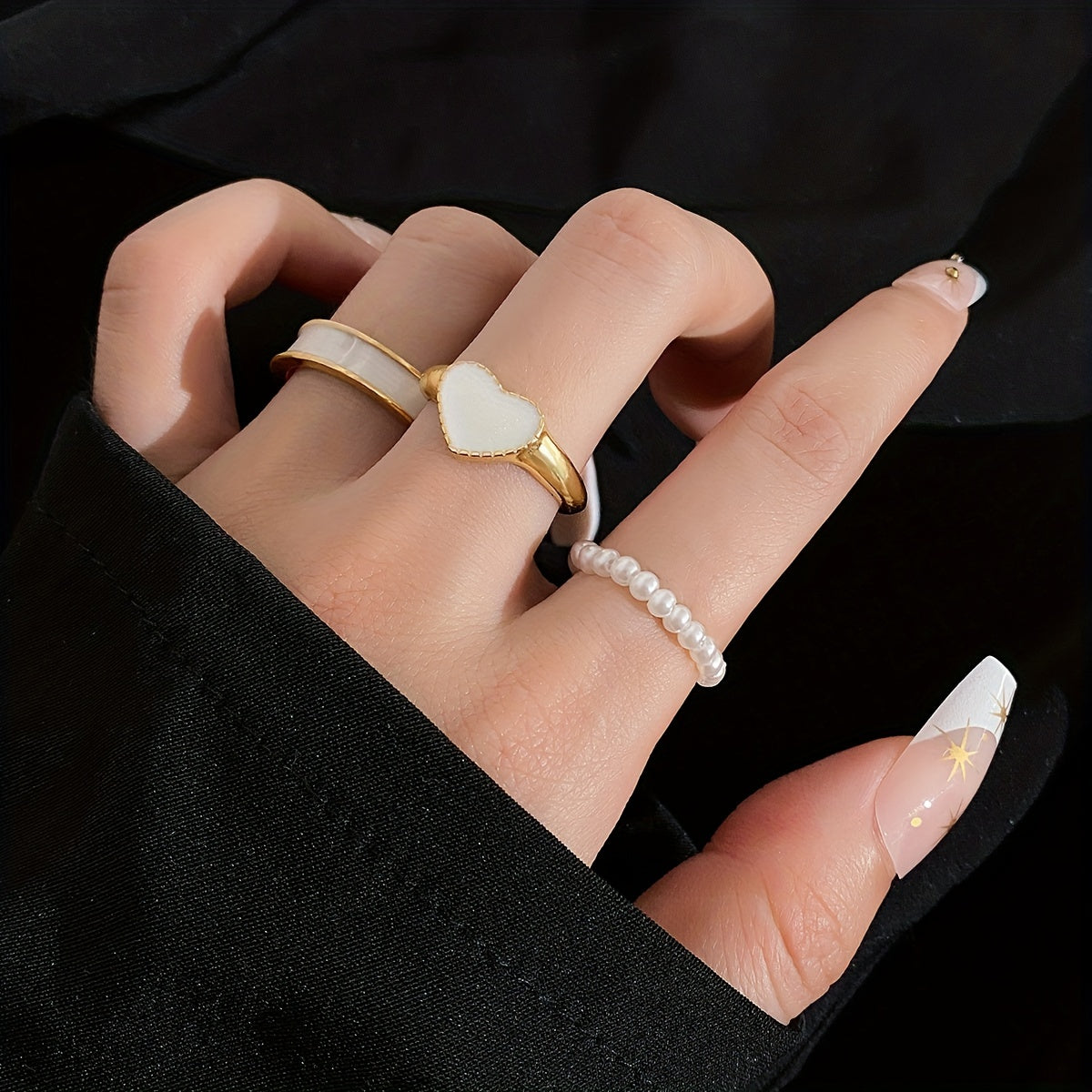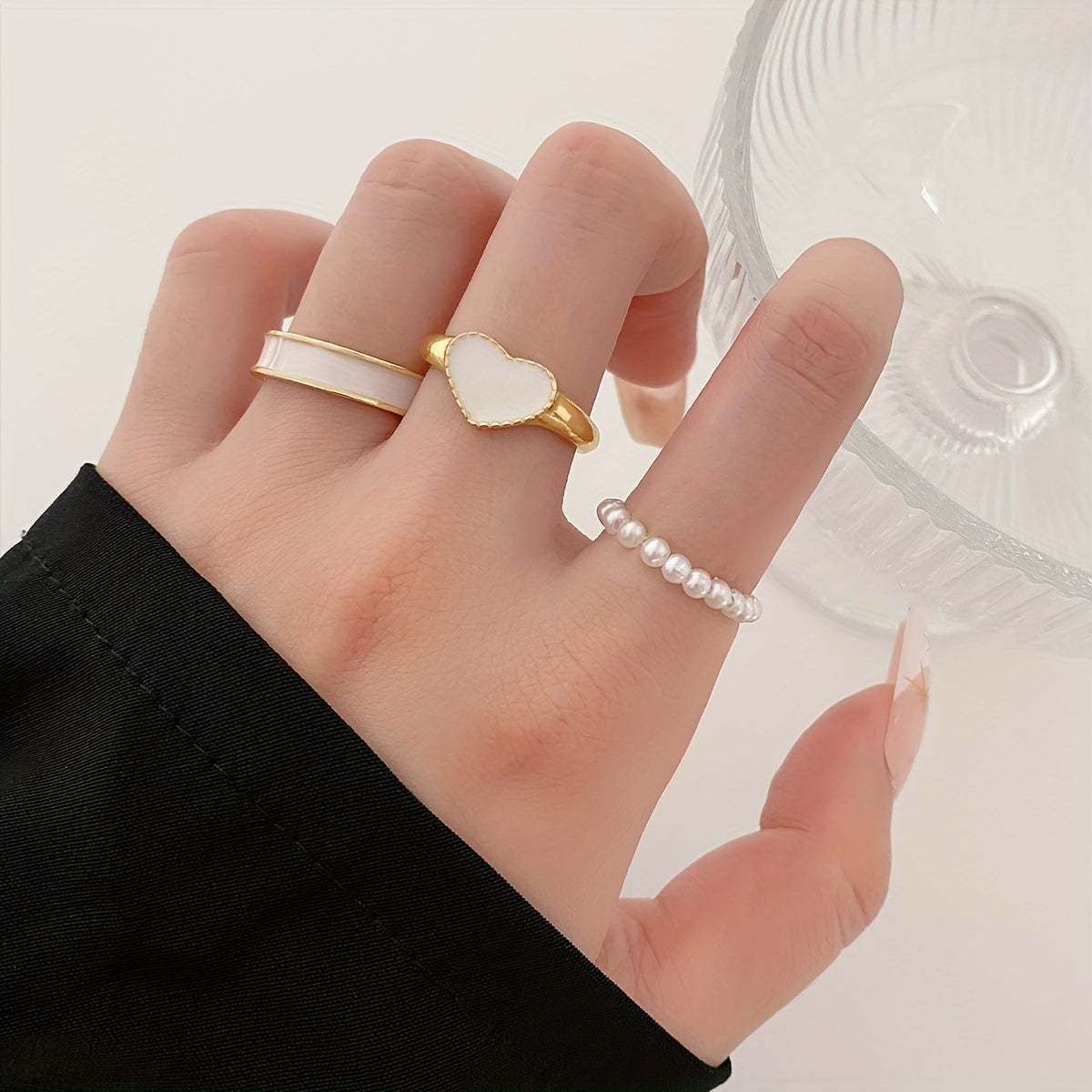 3pcs Kpop Style Stacking Rings Heart Shape Oil Dripping Craft Mix & Match