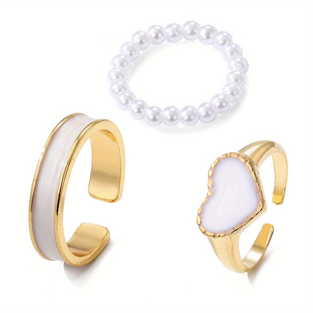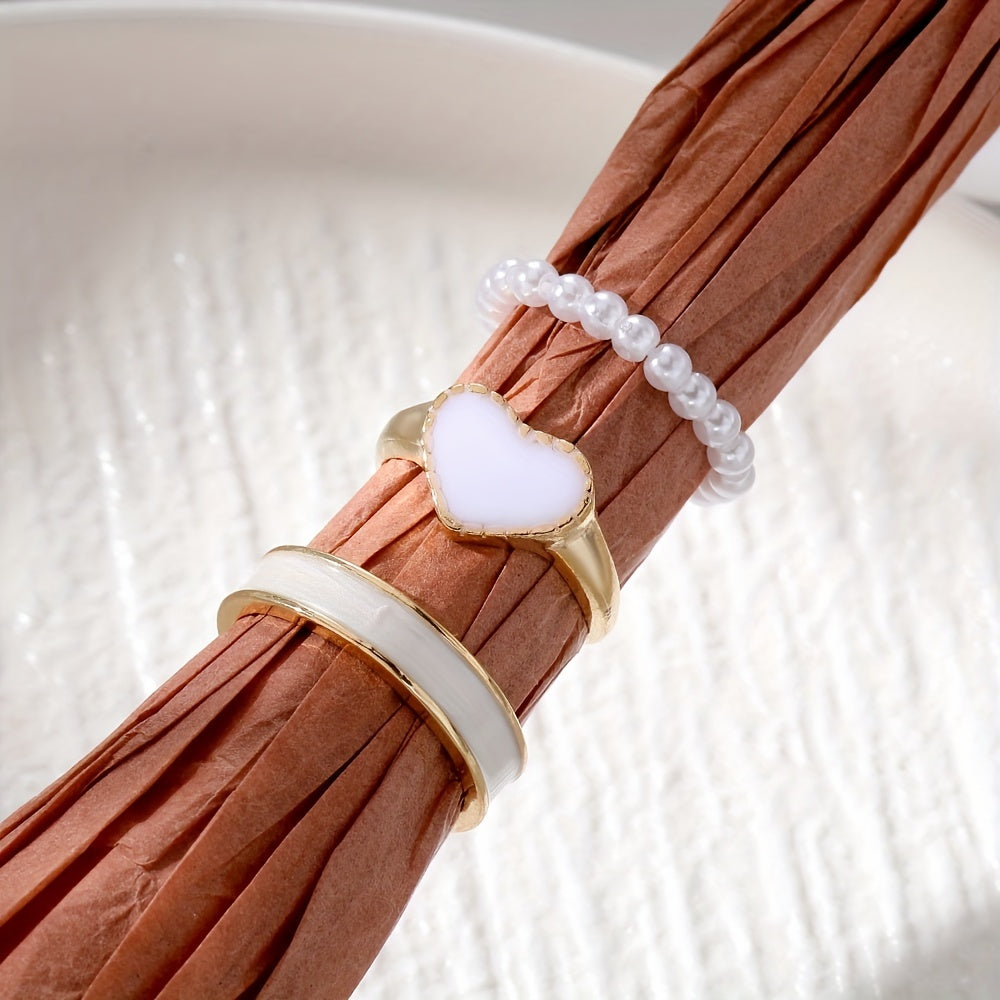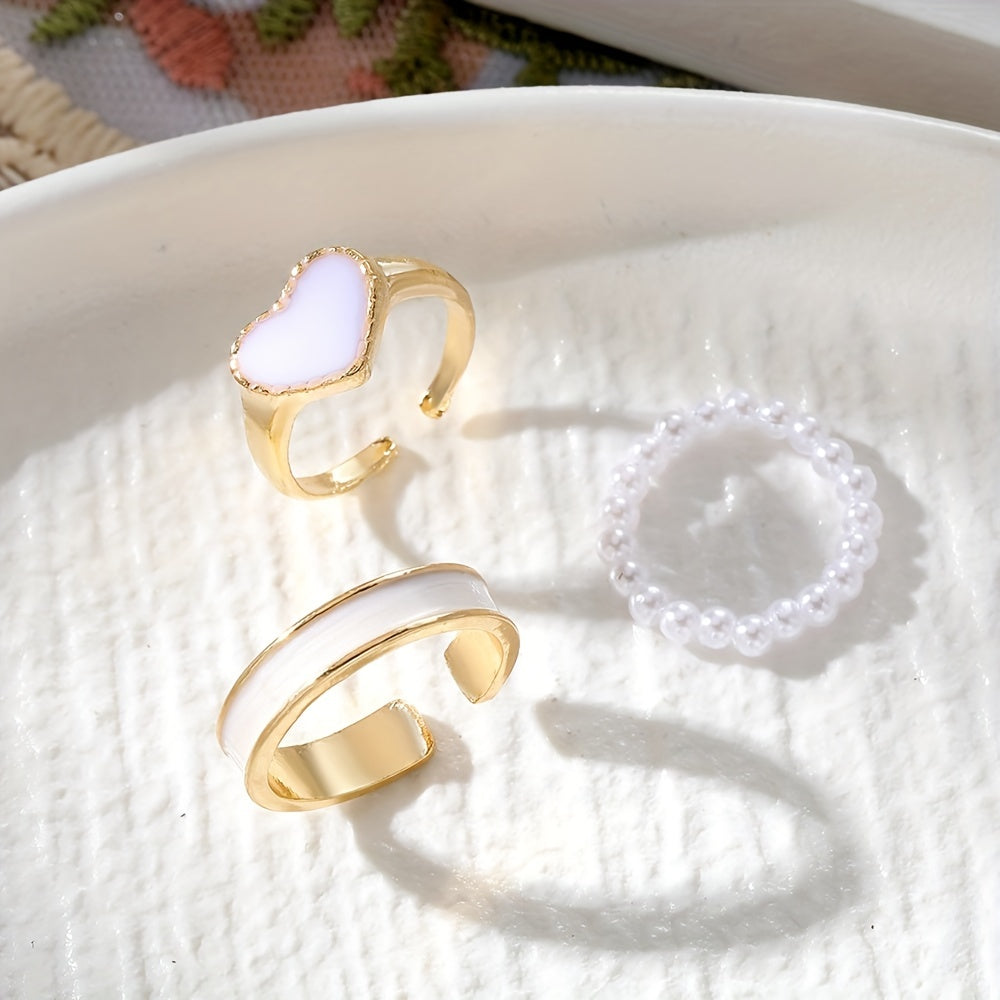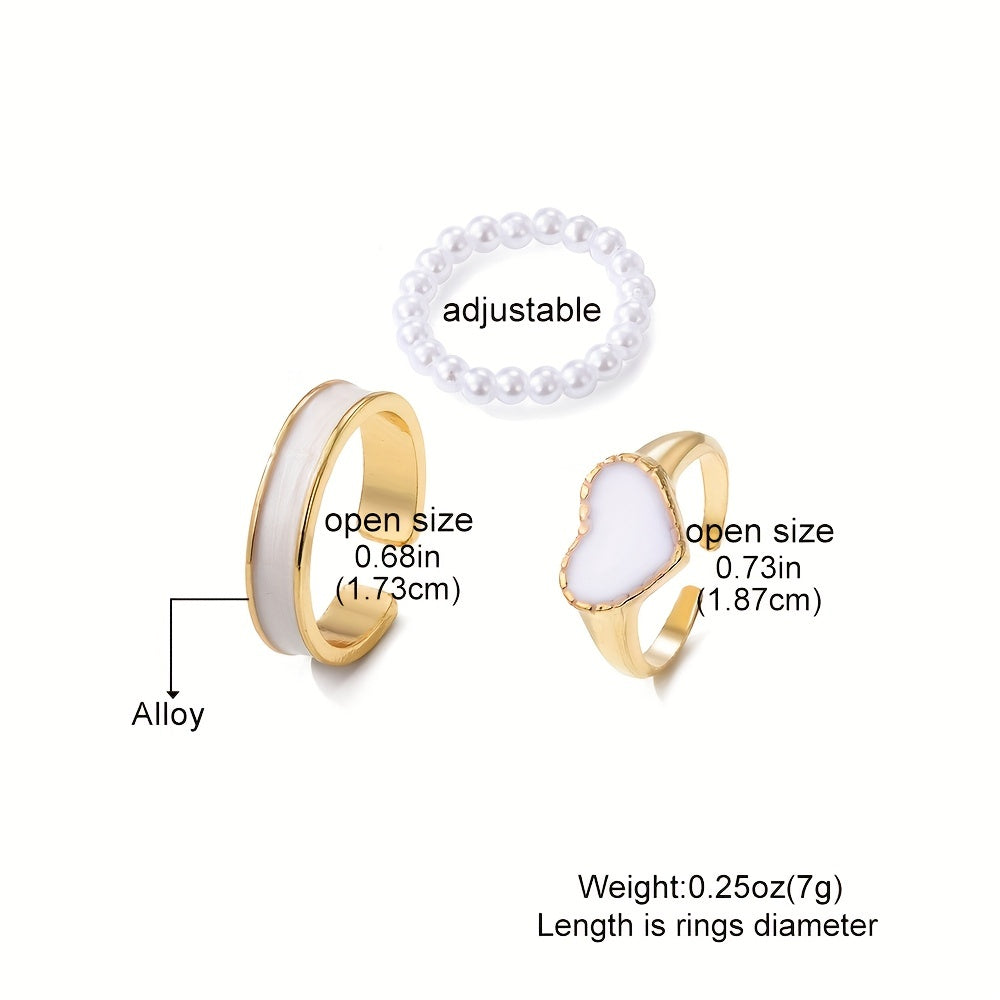3pcs Kpop Style Stacking Rings Heart Shape Oil Dripping Craft Mix & Match