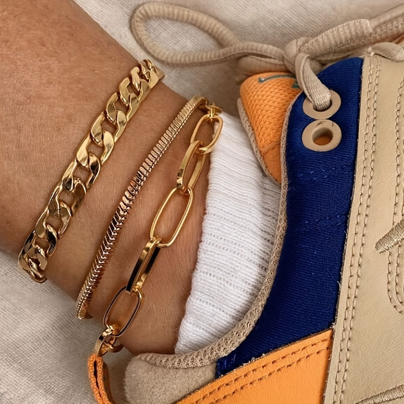 Enhance your style with this set of 3 layer chain anklets designed as stackable foot jewelry accessories for women.