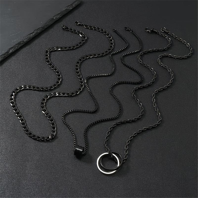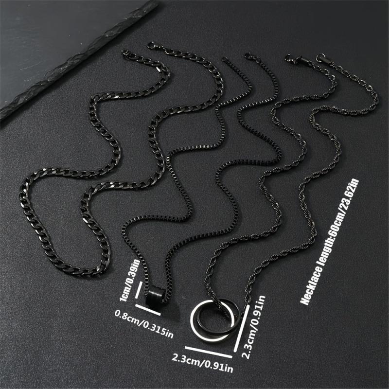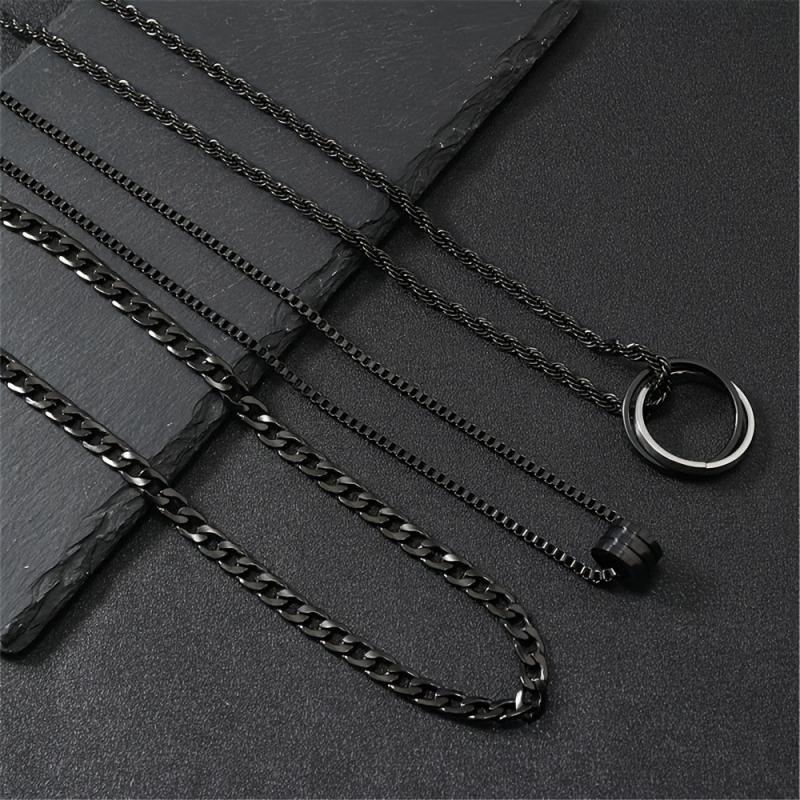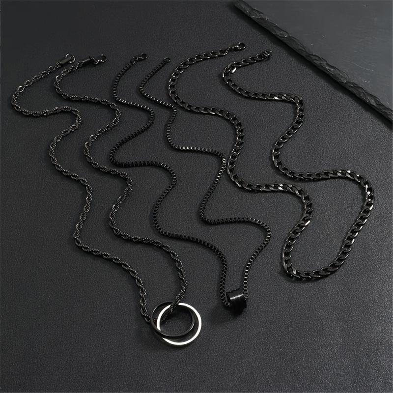 This set includes 3 twisted chain necklaces made of durable stainless steel. They are perfect for men's fashion and can be worn on various occasions.