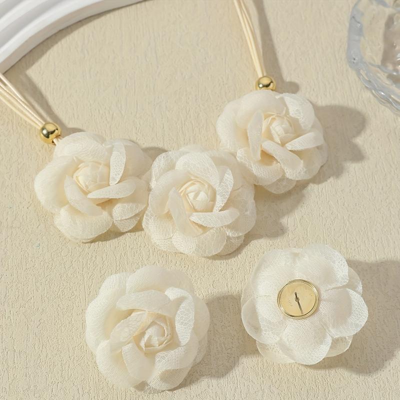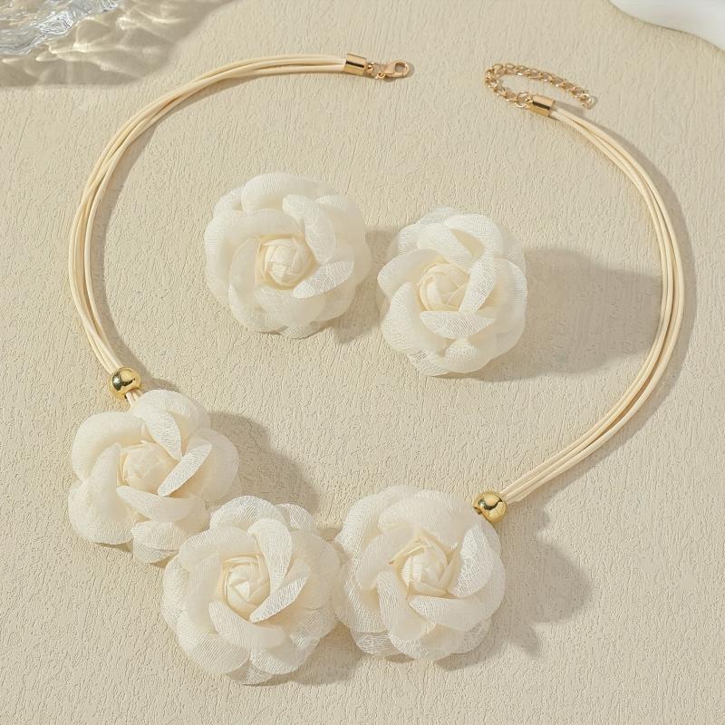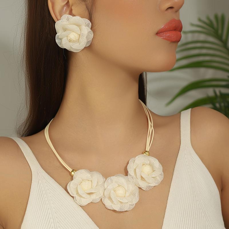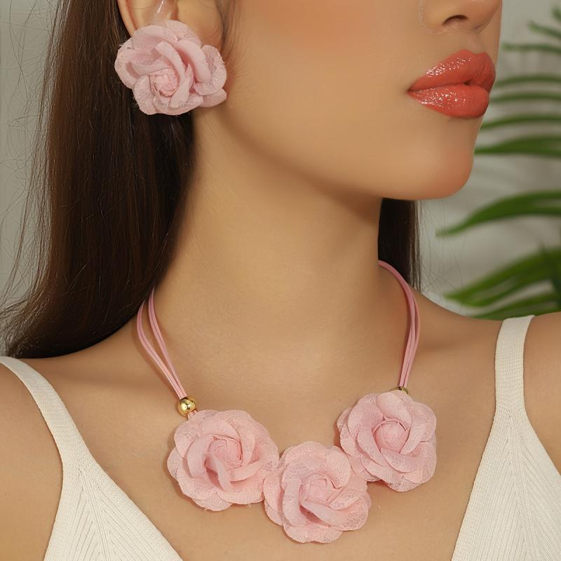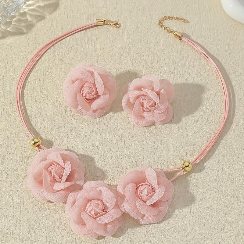Add a touch of summer charm with this sweet and mesh rose earrings and necklace set. The French retro style adds a unique flair to any outfit, making it a perfect gift for someone special.