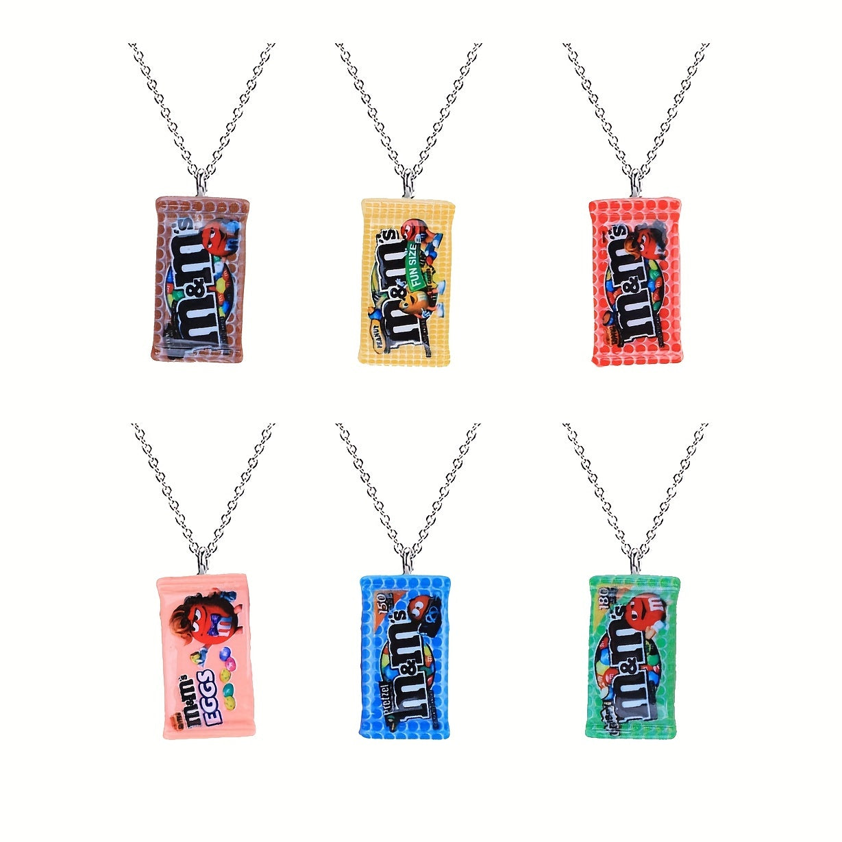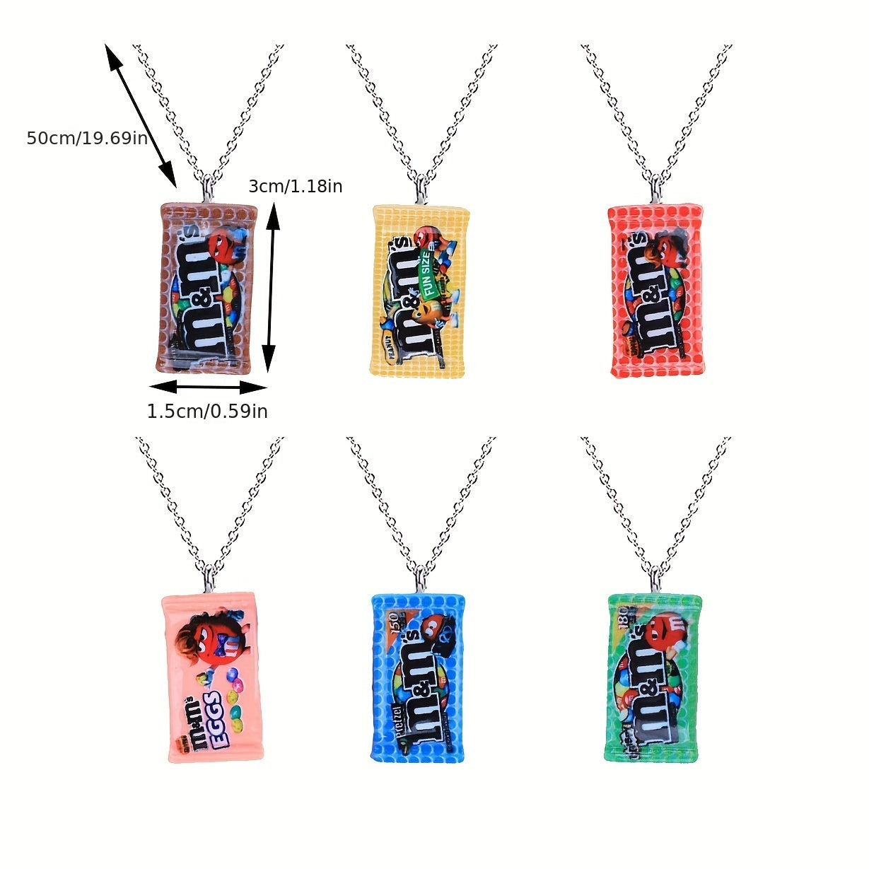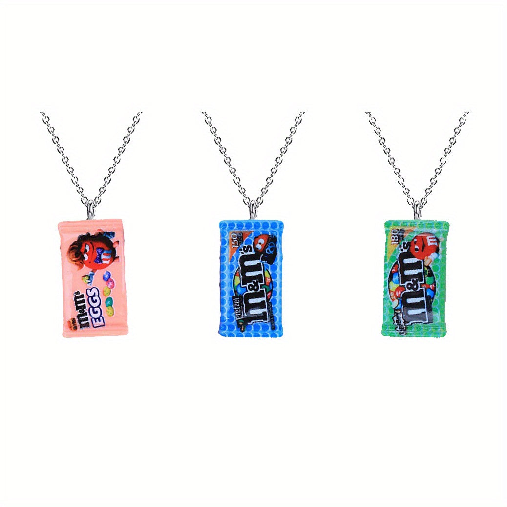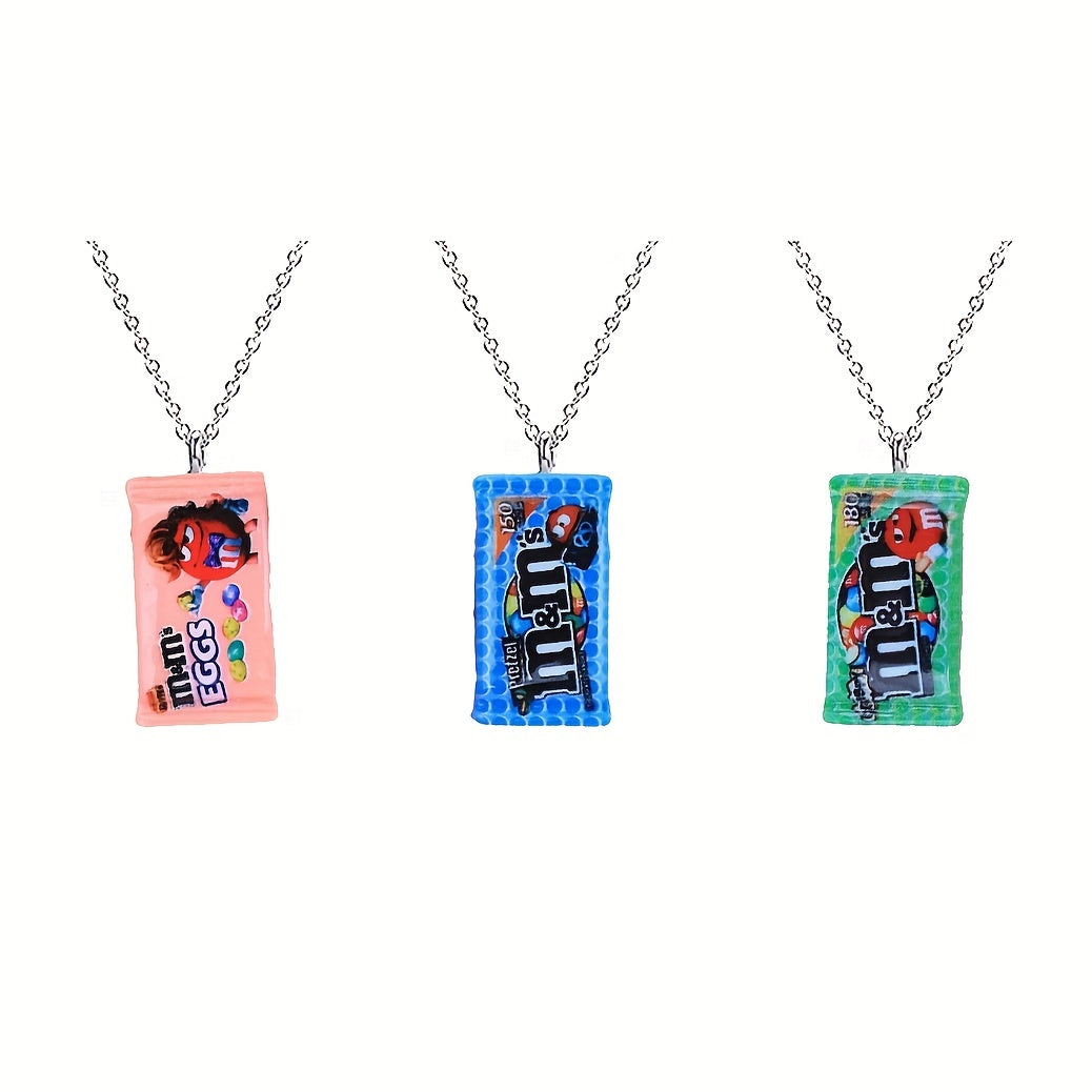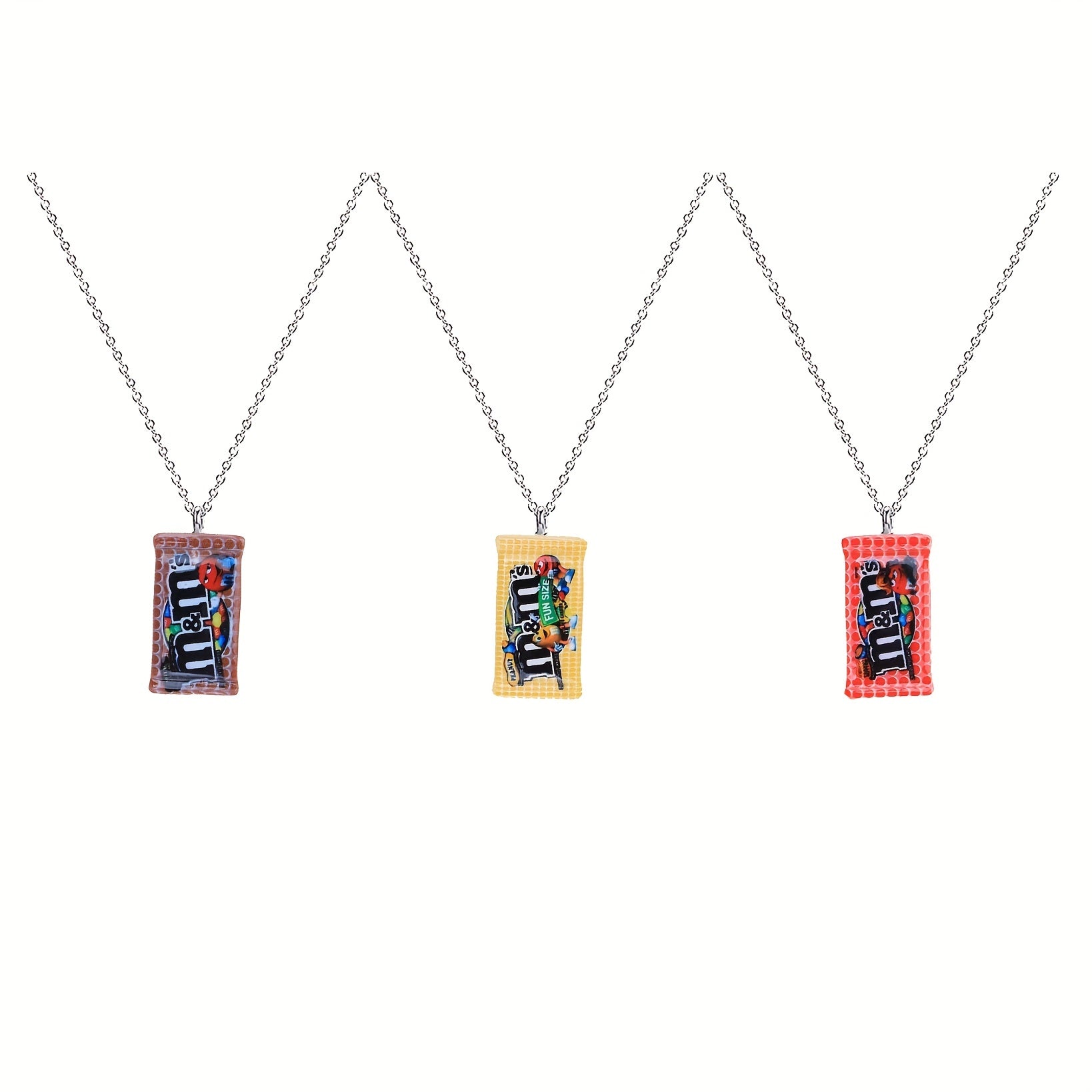 Add a playful touch to your outfit with this 3-piece set of funny chocolate candy pendant necklaces. The resin pendants offer a unique and quirky look, perfect for expressing your personality.