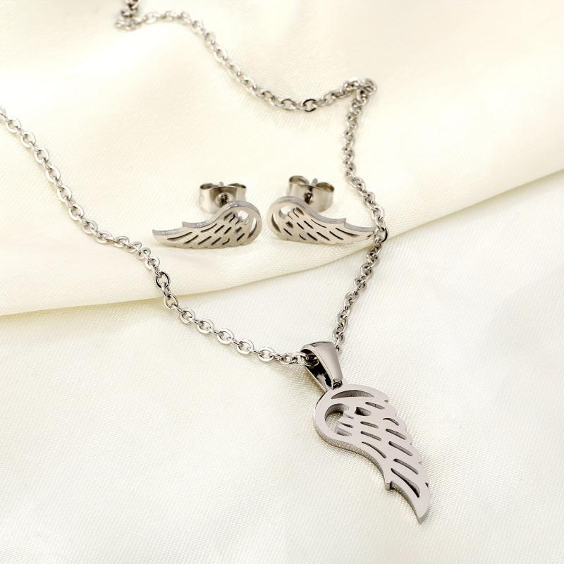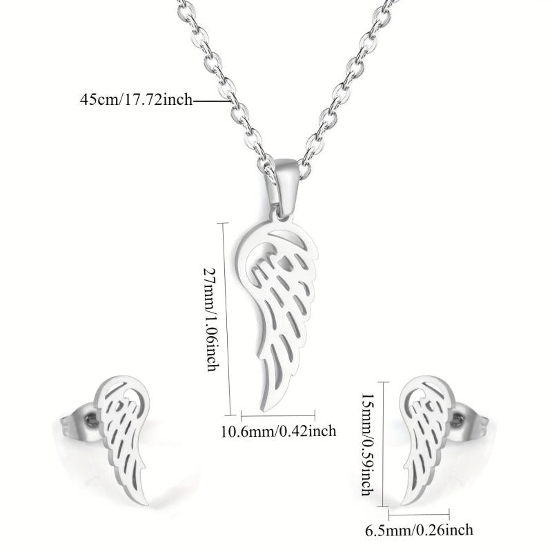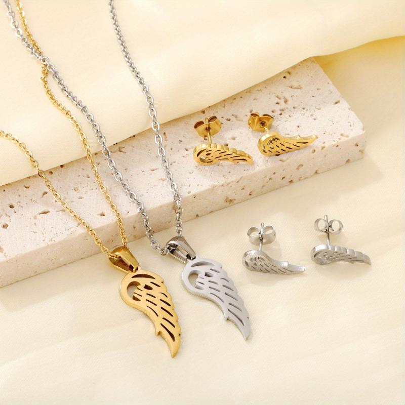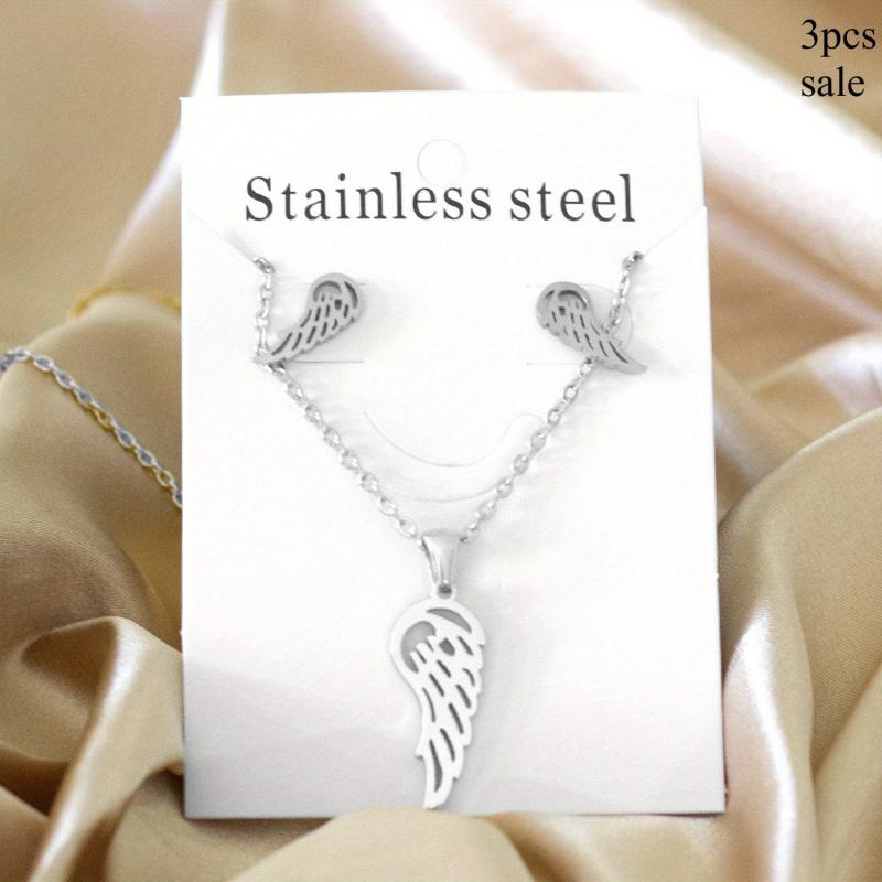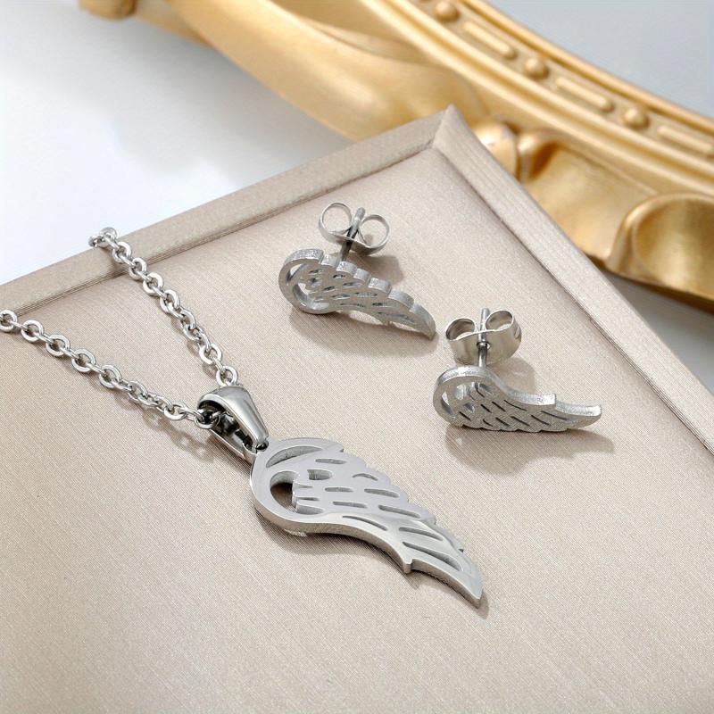 Elevate your look with this stylish stainless steel jewelry set, featuring a hollow wing design. Perfect for concerts, banquets, ceremonies, or as a gift.