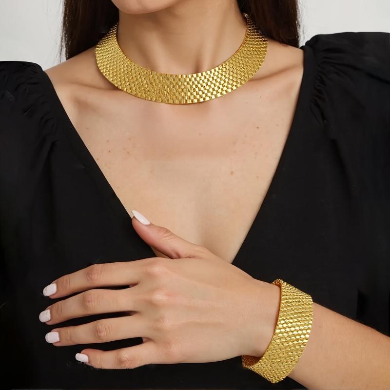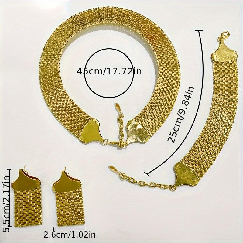 Elegant set including earrings, necklace, and bracelet. Perfect gift for wife, family, or girlfriend. Fashionable watch chain for daily wear.