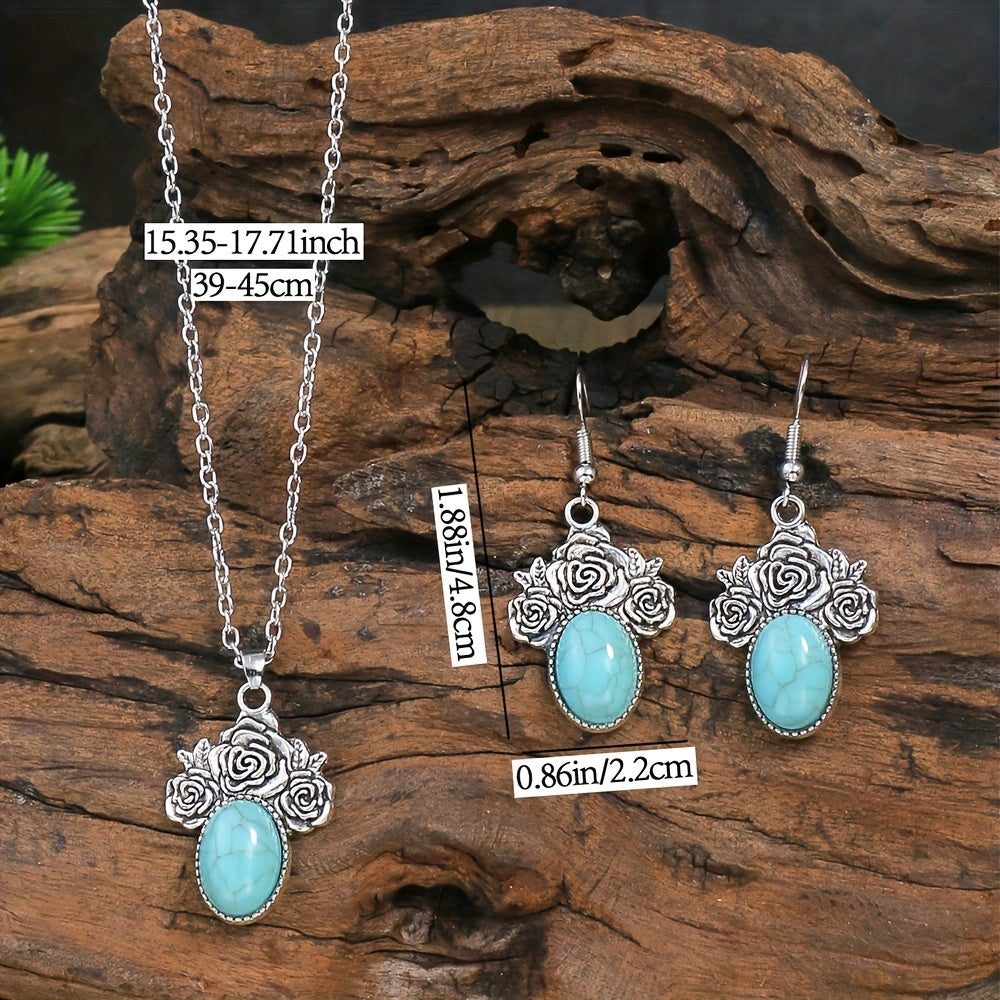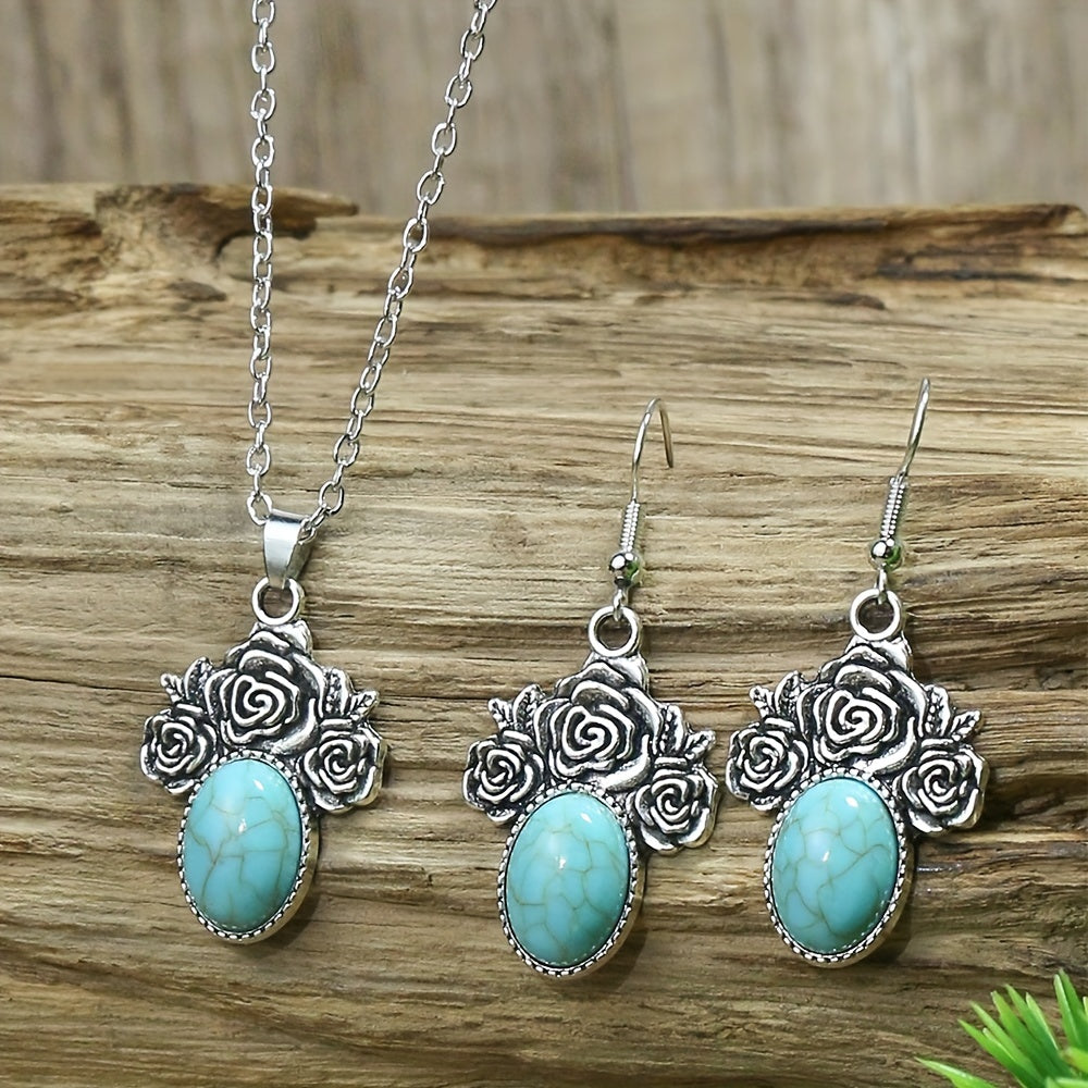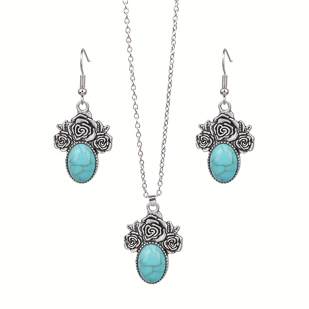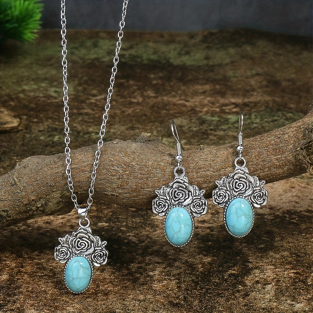 Complete your daily outfits or add a touch of elegance to your party look with this dainty jewelry set. Set includes matching turquoise rose earrings and necklace.