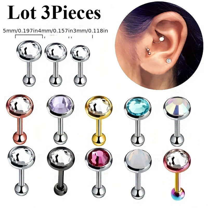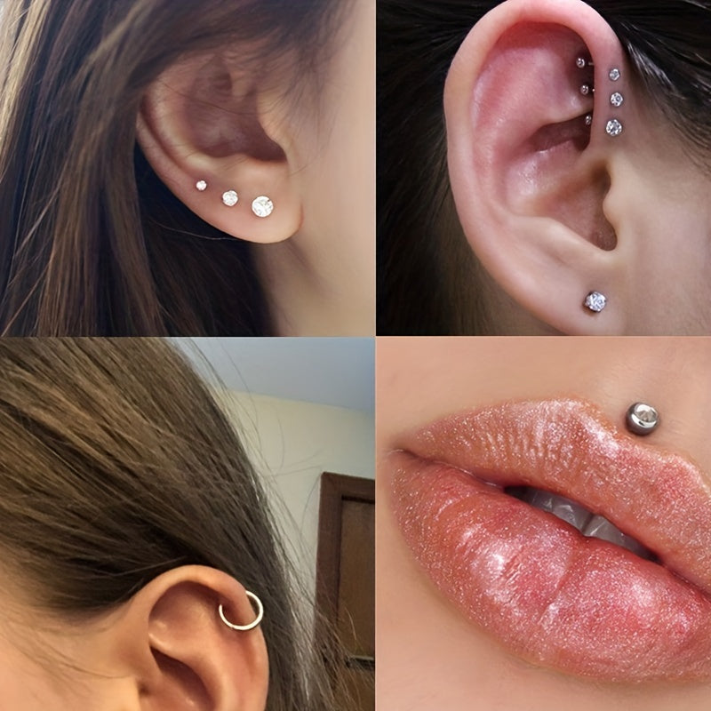 Enhance your style with this set of 3 lip rings featuring stunning zircon inlays. These body piercing jewelry pieces are perfect for expressing your unique personality.
