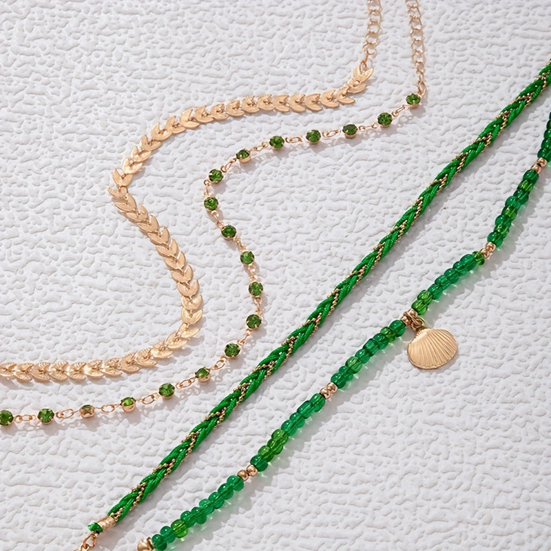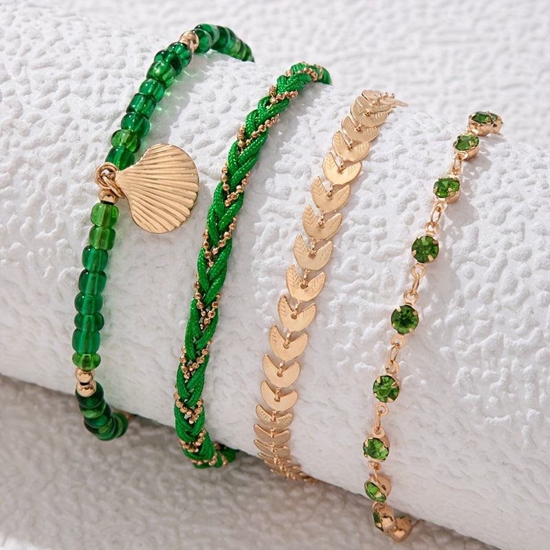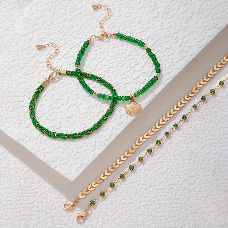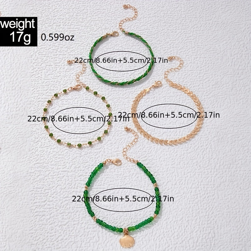 Adorn your ankles with this stylish 4-piece beaded chain anklet set, perfect for adding a boho touch to your summer beach outfits.