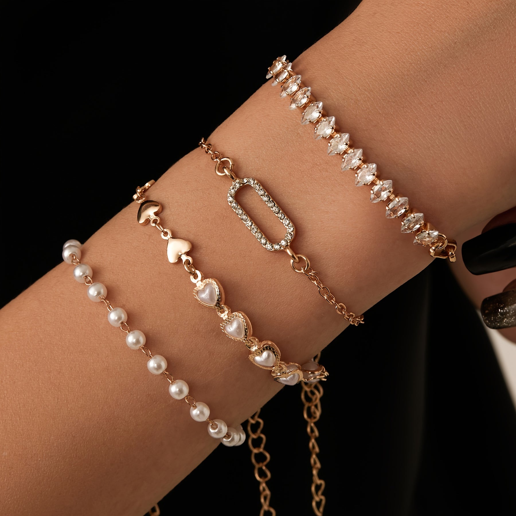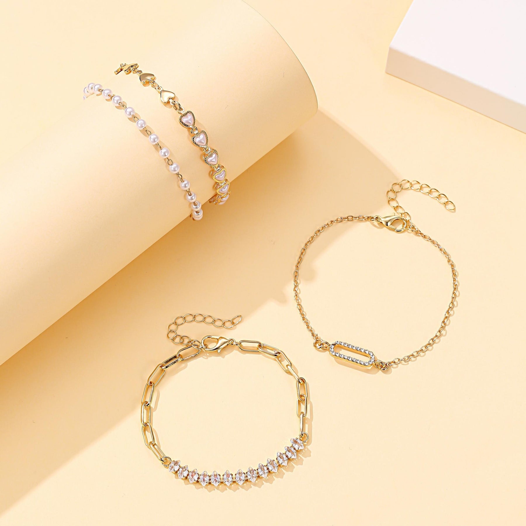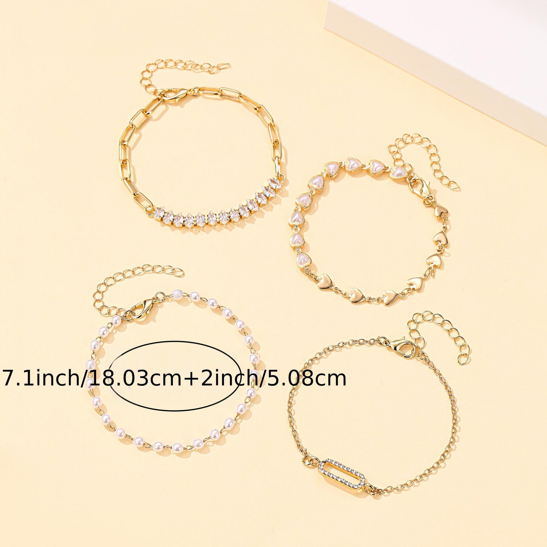 Elevate your beach look with this 4-piece beaded chain bracelet set. Each bracelet features a unique design with faux pearls and zircon beads, perfect for adding a touch of sparkle to your summer outfits. The elastic design ensures a comfortable fit for all wrist sizes.
