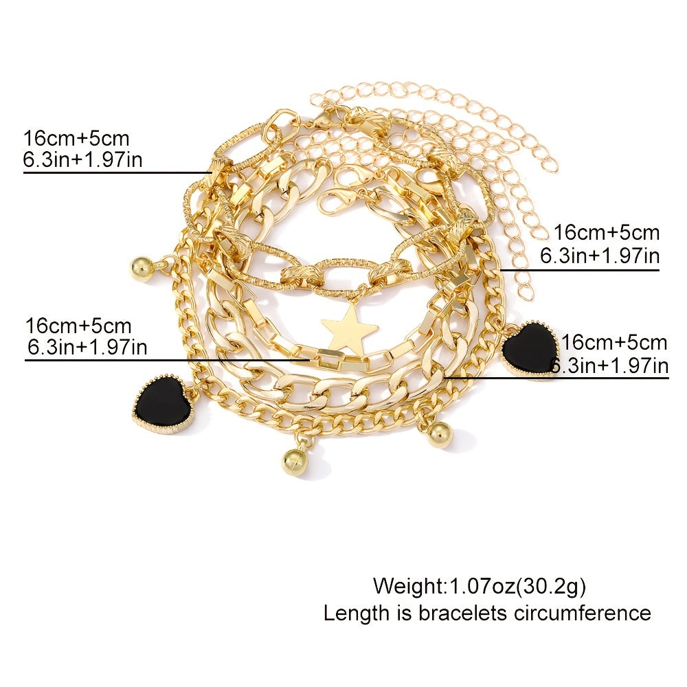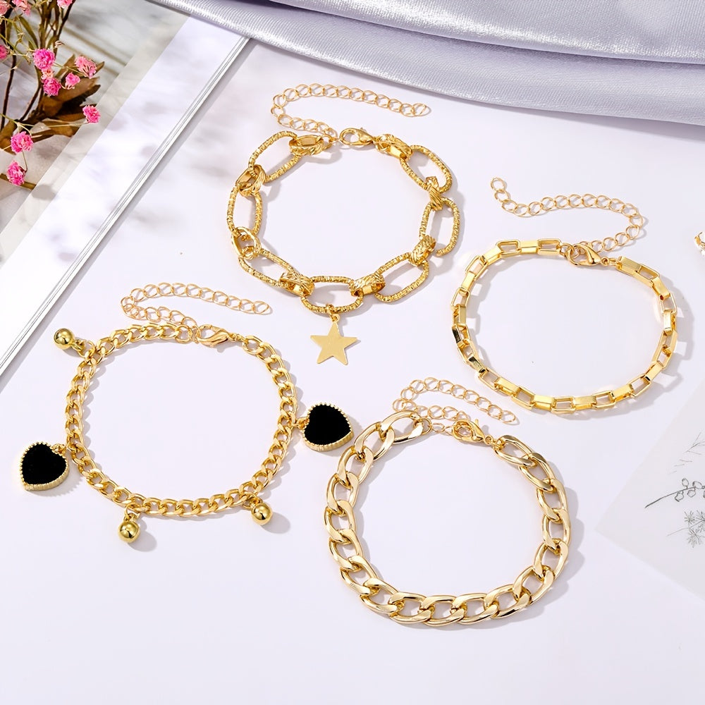 Elevate your summer look with this set of 4 chunky chain bracelets. Perfect for beach and surfing, these adjustable bracelets are stylish and versatile hand jewelry.