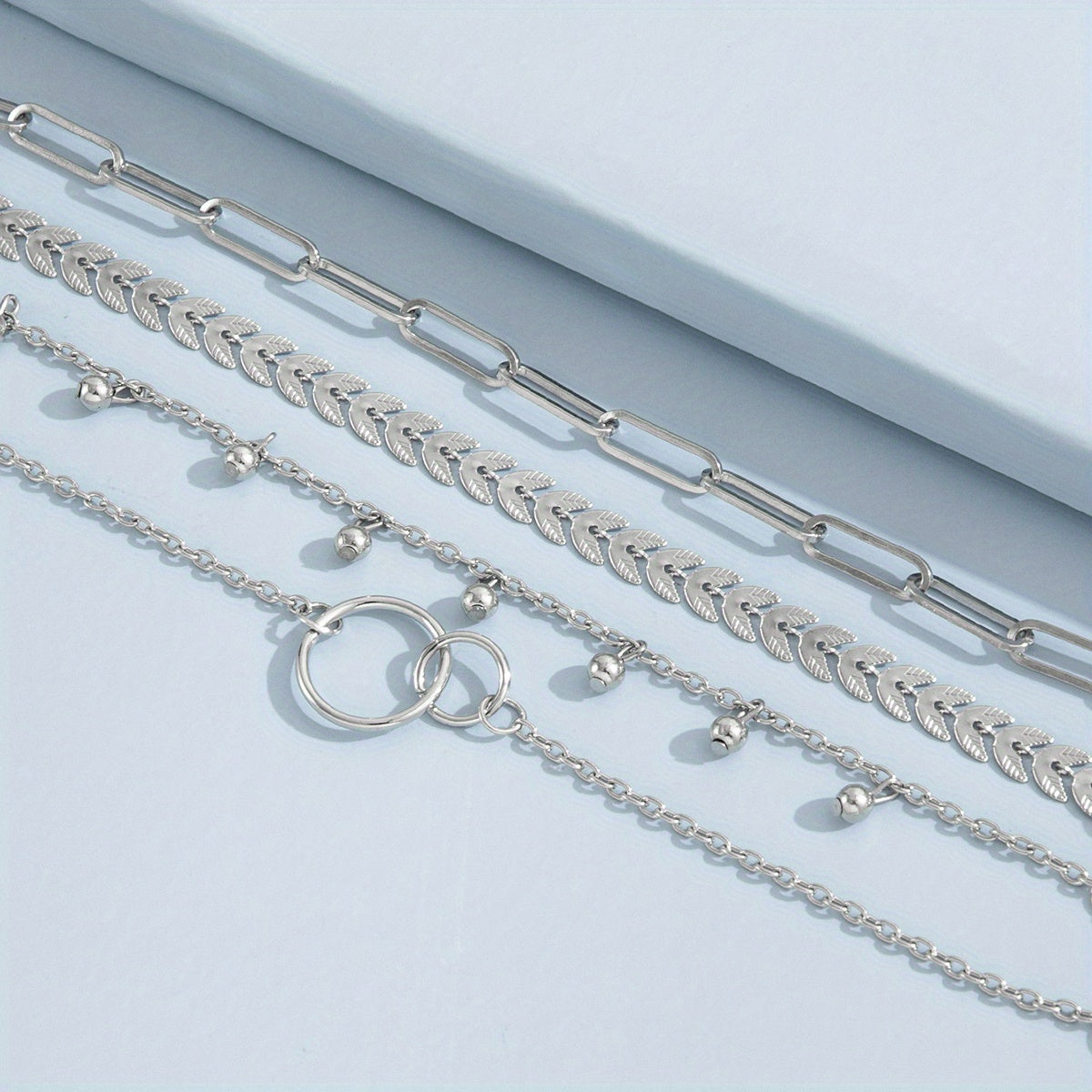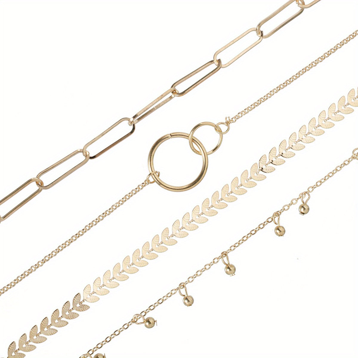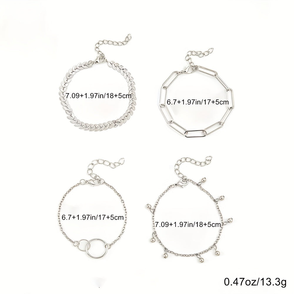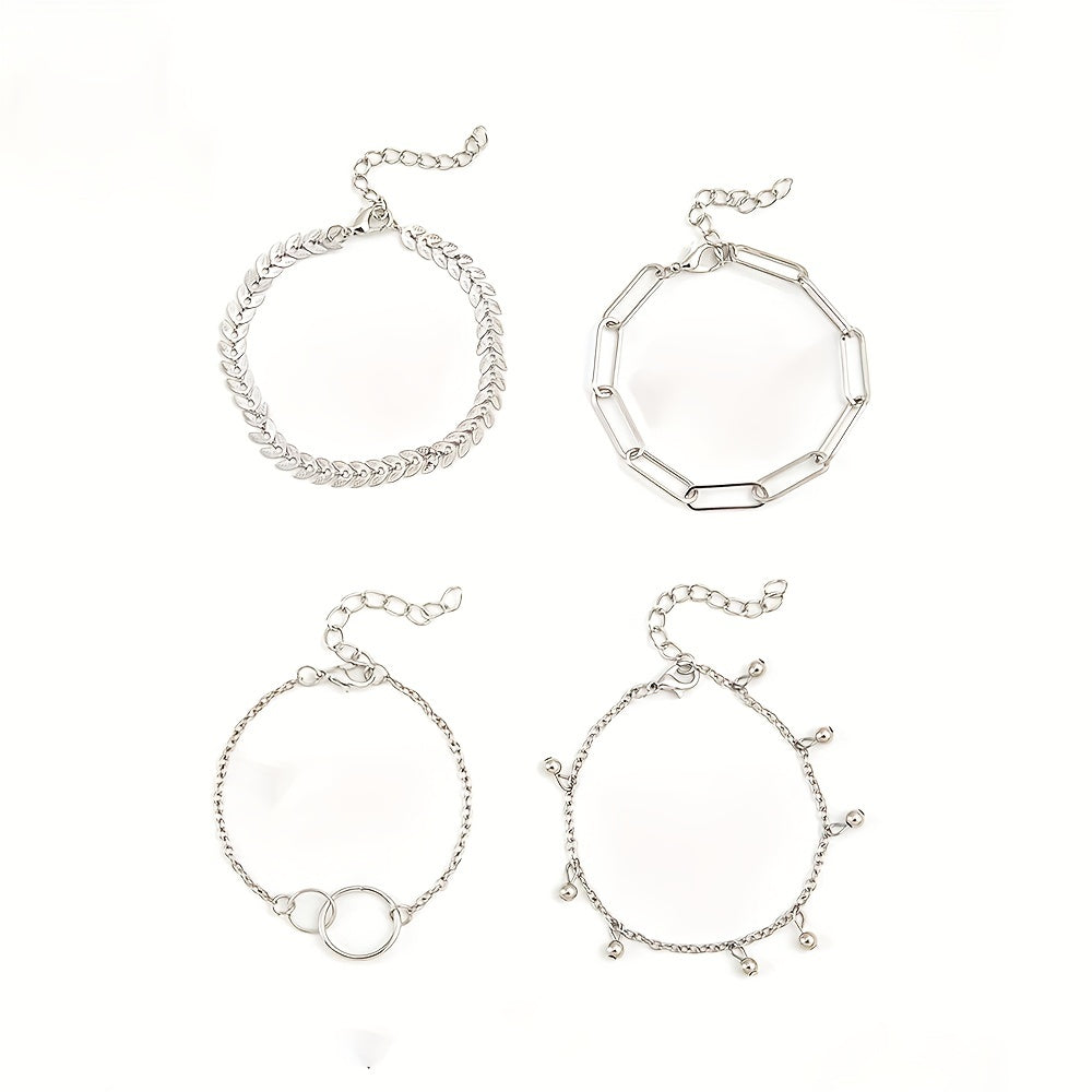 Enhance your hand jewelry collection with this set of 4 chain bracelets designed for women. These stackable bracelets add style and elegance to any outfit.