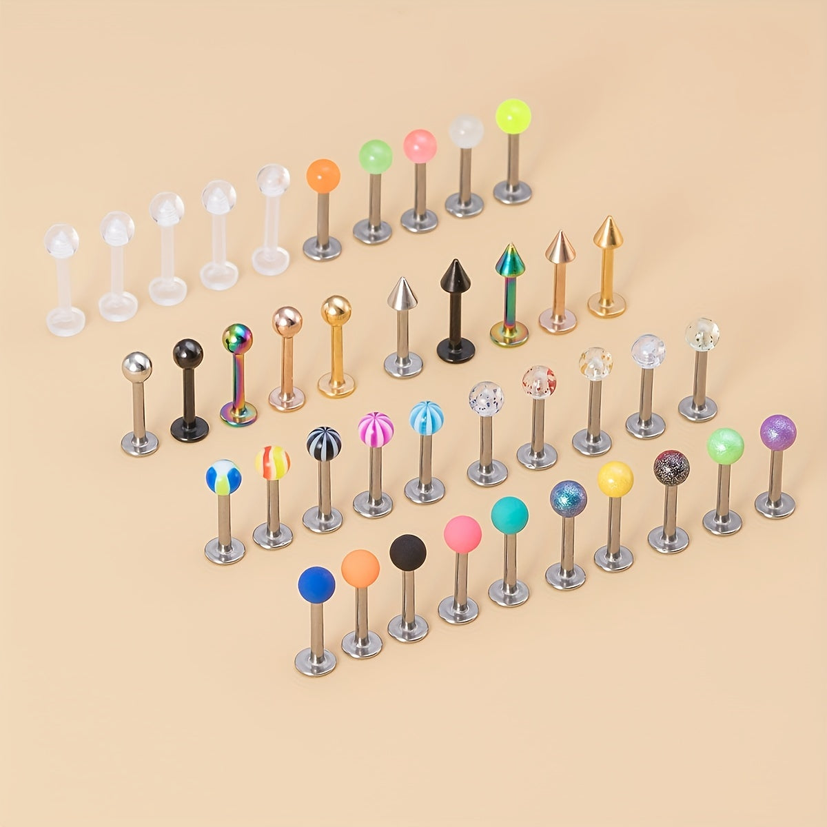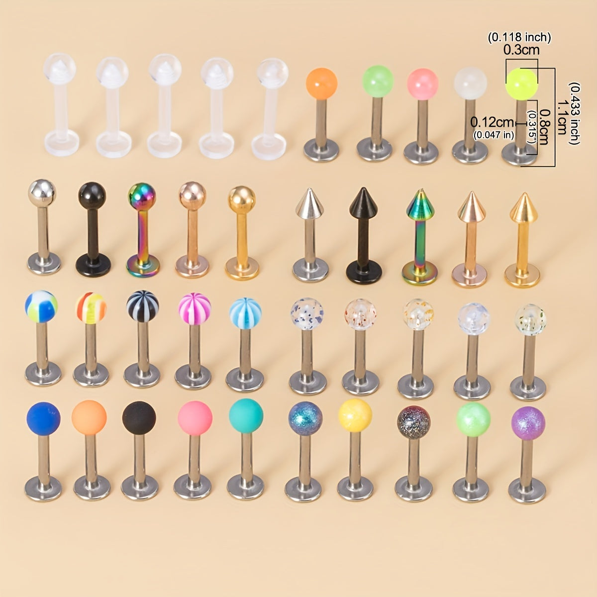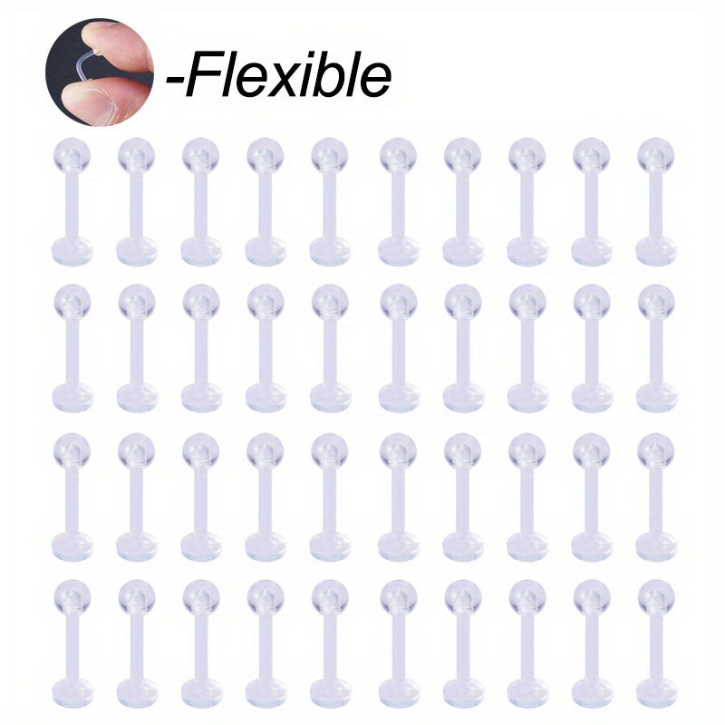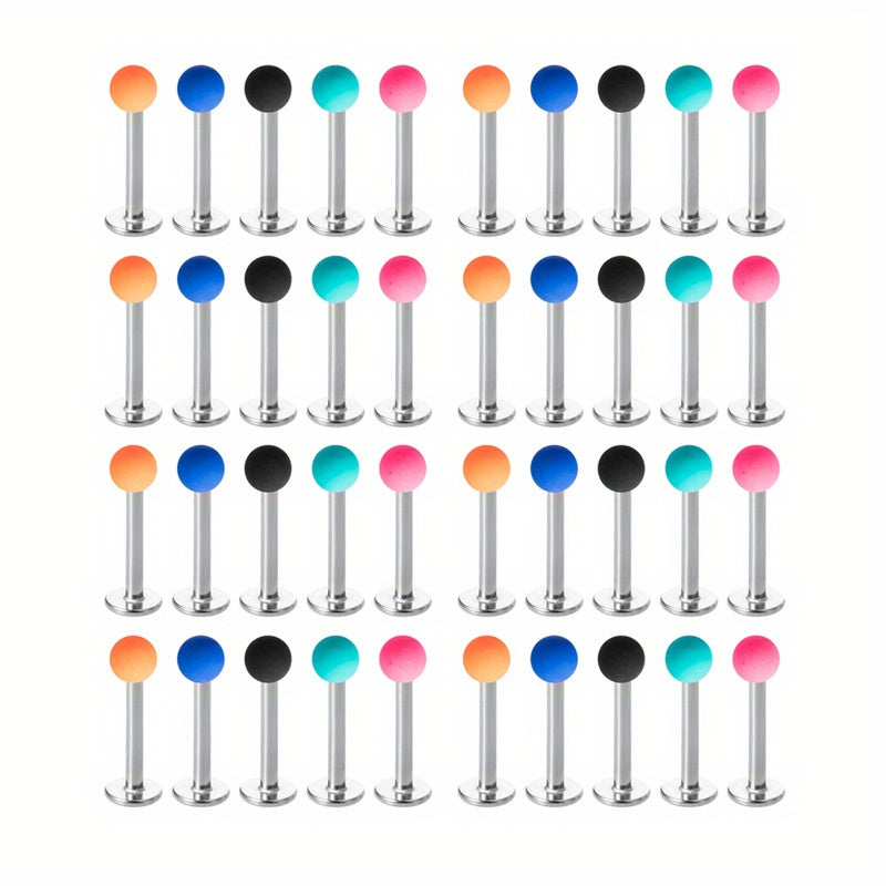 Enhance your style with this set of 40 barbell lip rings designed for cartilage piercings. Made of high-quality materials, these piercings are perfect for both men and women.