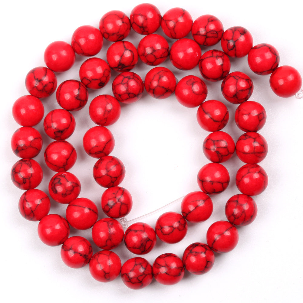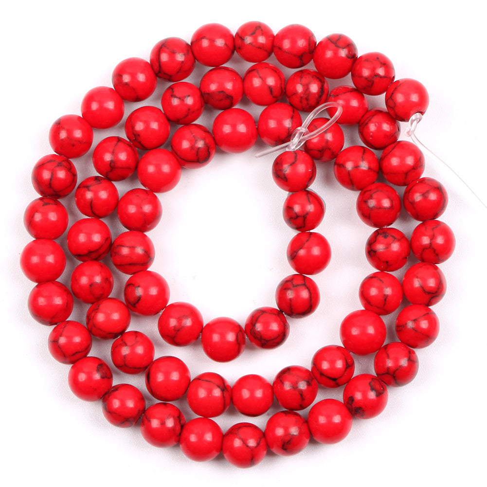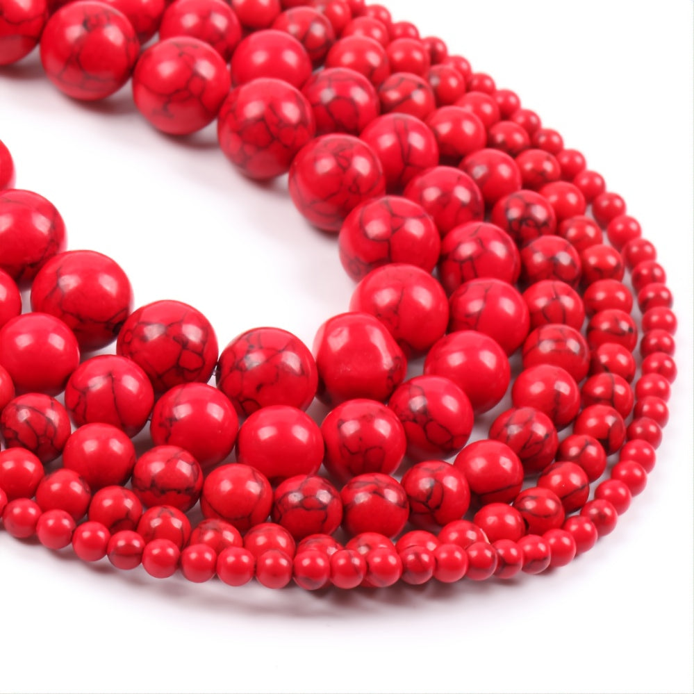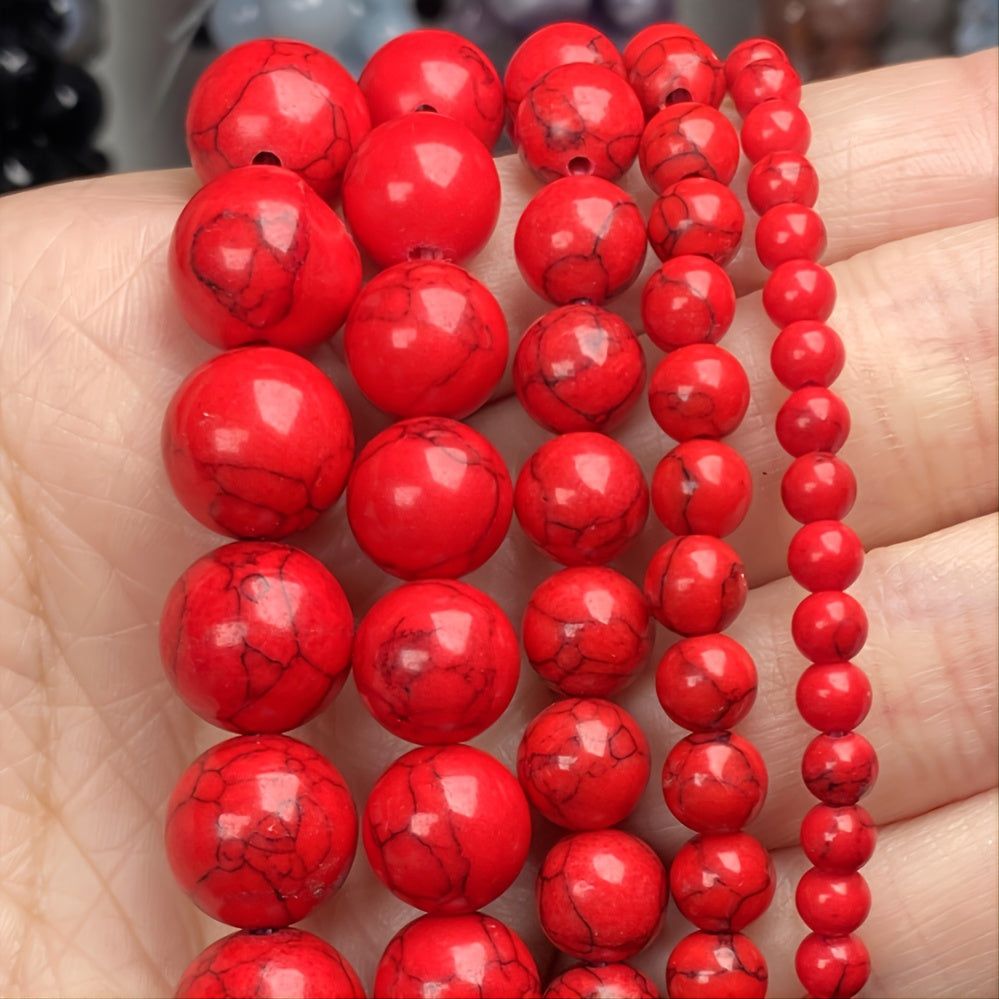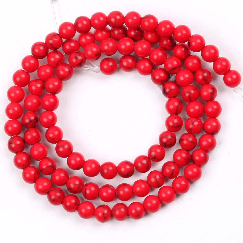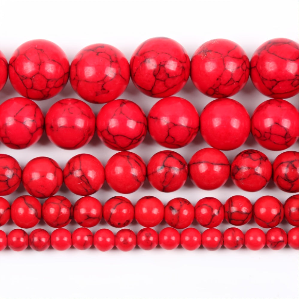 Create your own unique bracelets and necklaces with these 4mm red turquoise stone loose beads. Each bead is perfect for DIY projects and comes in a 15-inch cord for easy crafting.