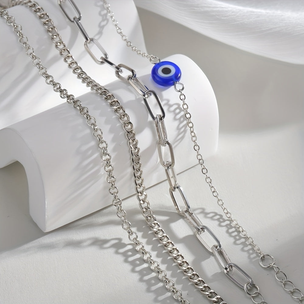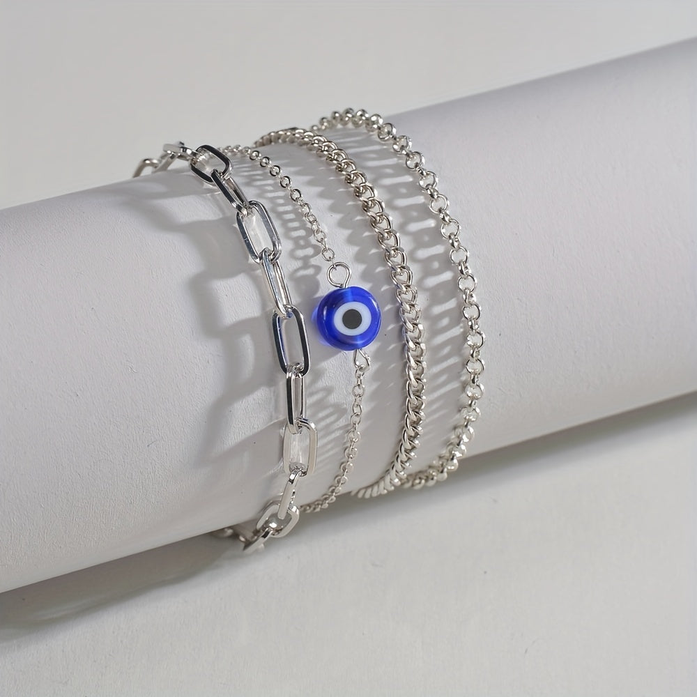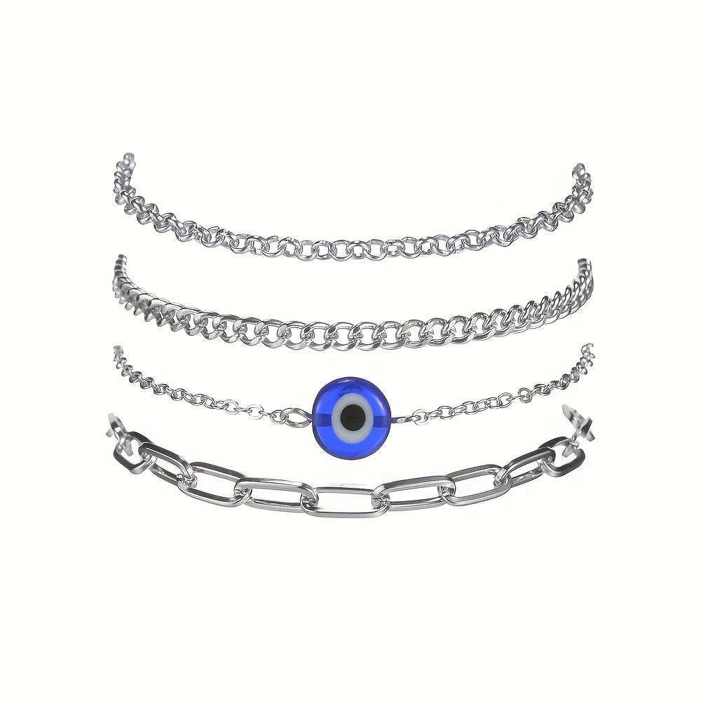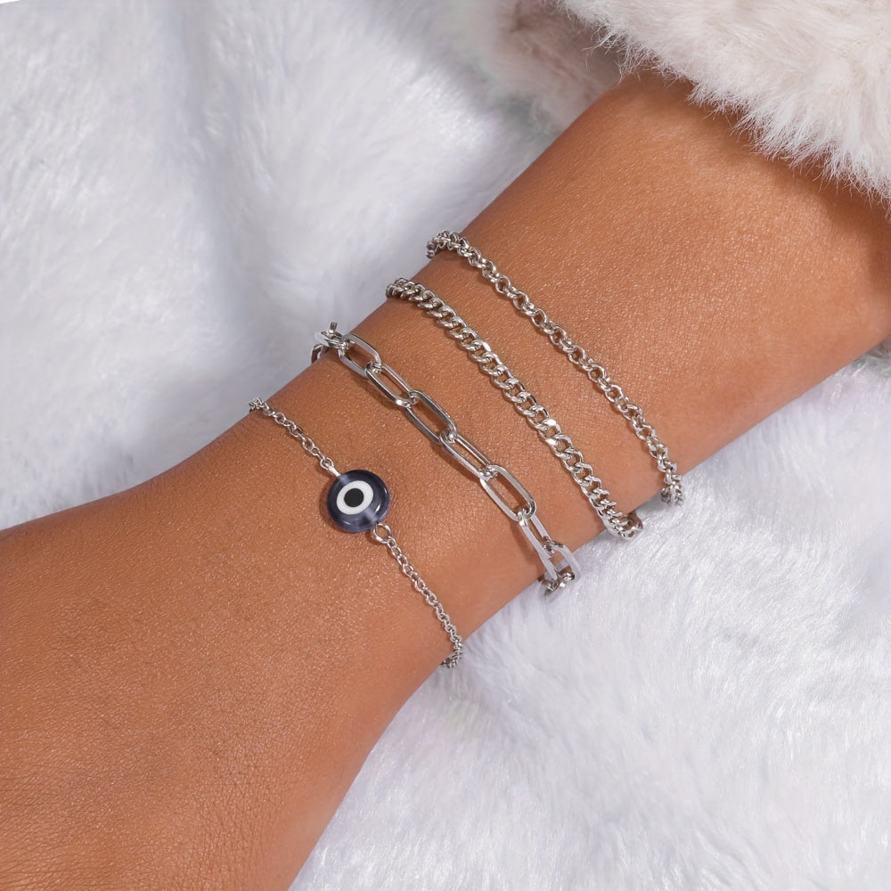 This set of 4 trendy bracelets feature cartoon evil eye designs. Made from high-quality alloy, these pieces add a unique touch to your look.
