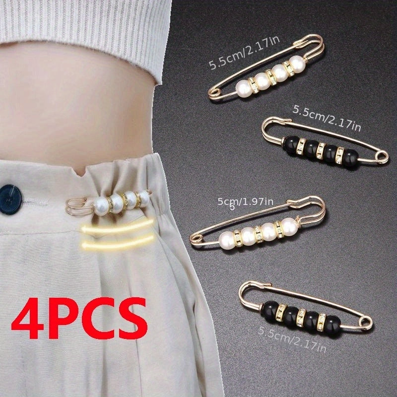 Elevate your style with this set of 4 faux pearl brooches featuring inlaid zircon, perfect for adding a touch of elegance to your sweater or dress. Great for DIY projects and accessorizing.