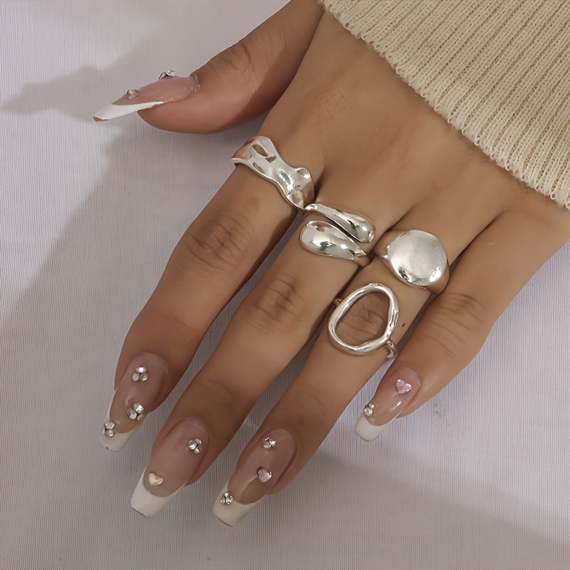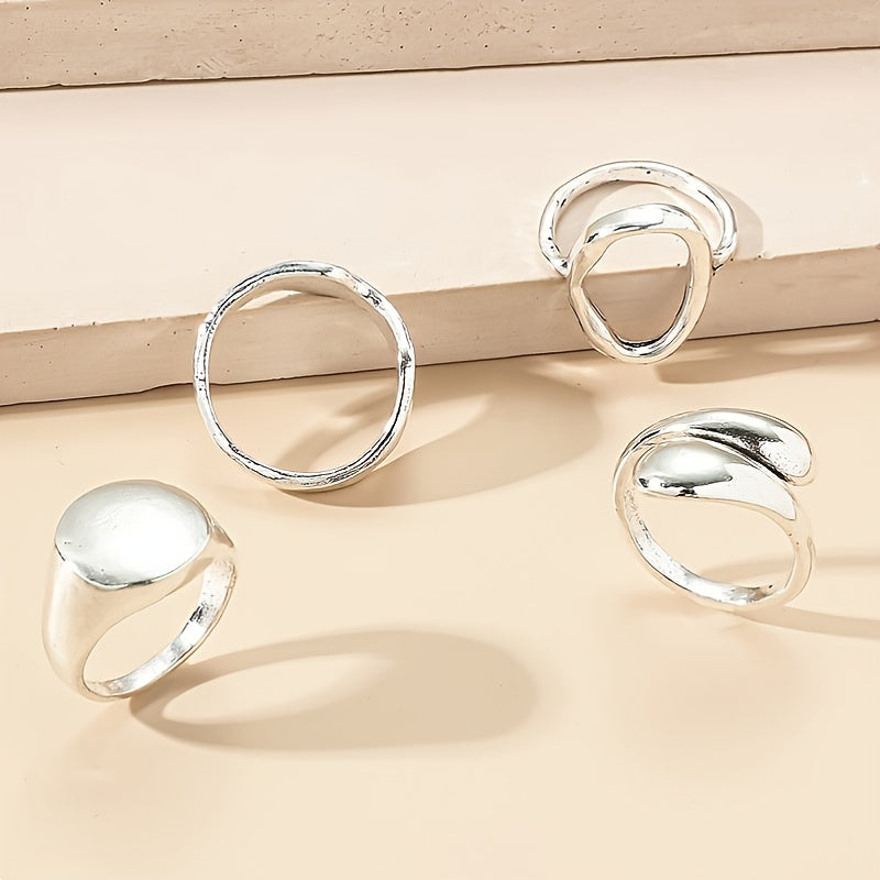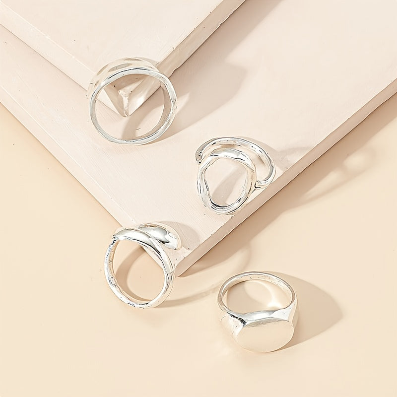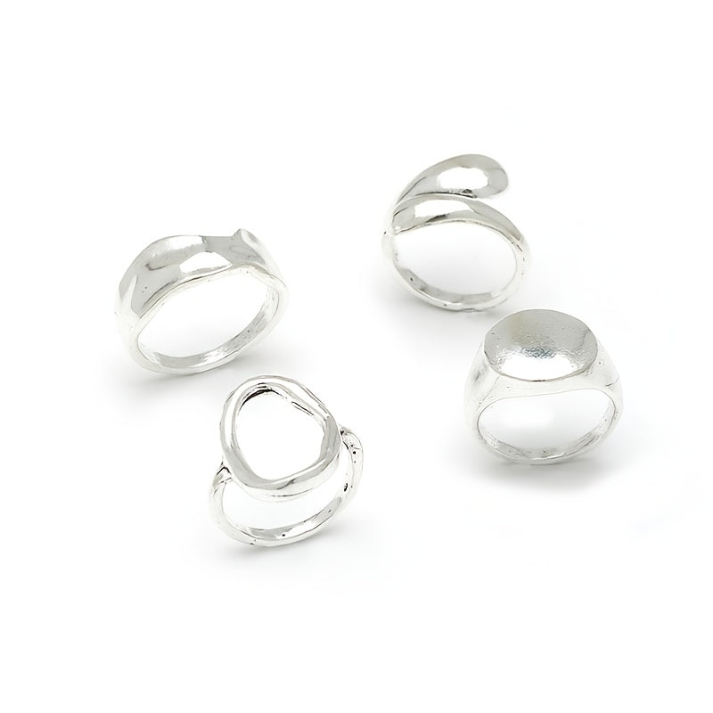 Elevate your style with this set of 4 geometric finger rings that add a chic touch to any outfit. Perfect for daily wear or special occasions.
