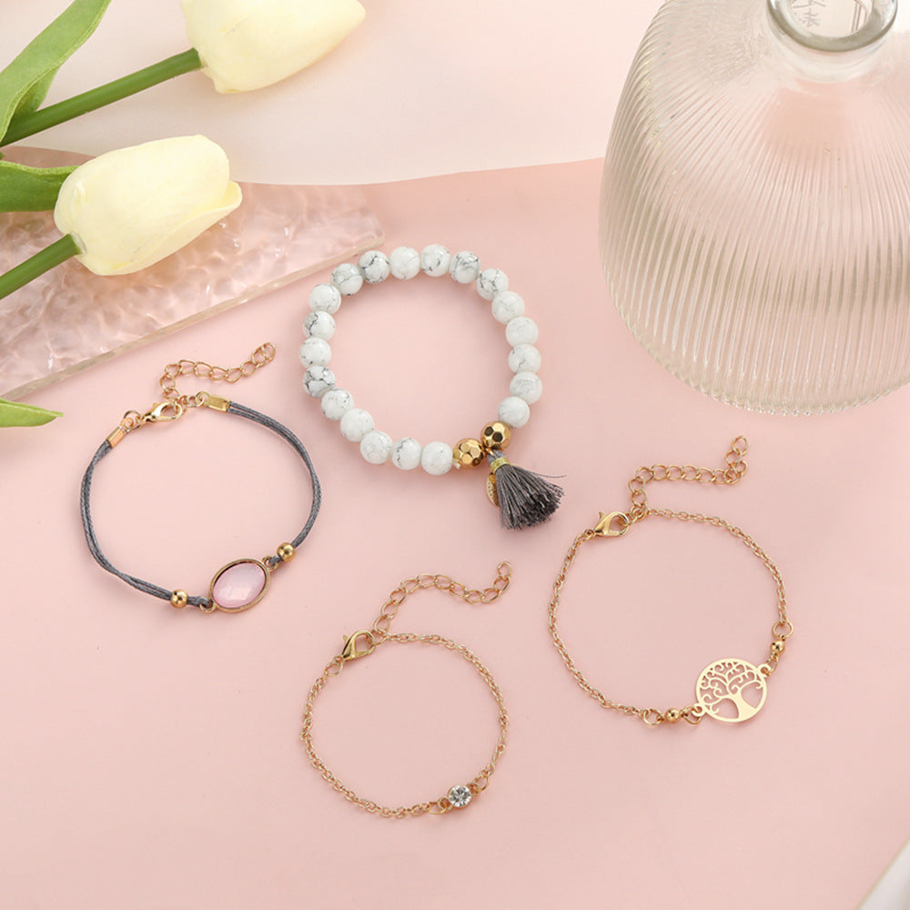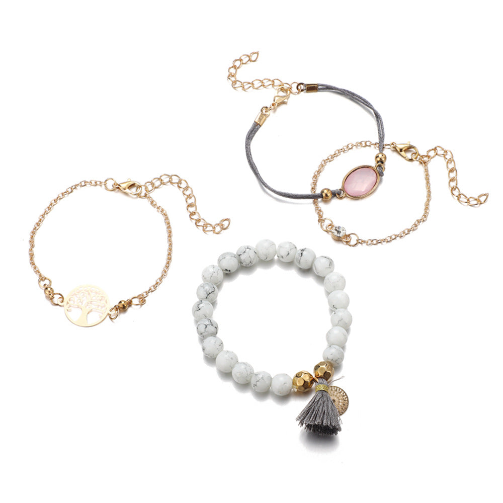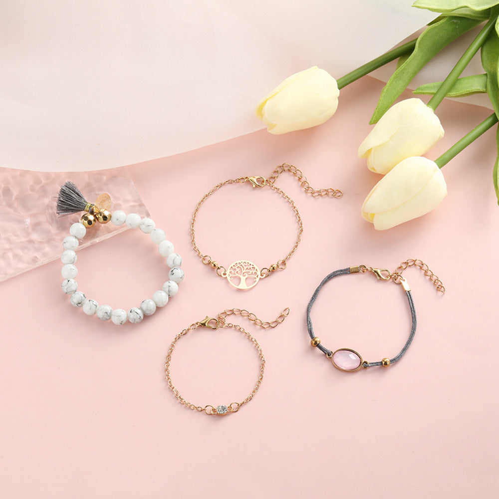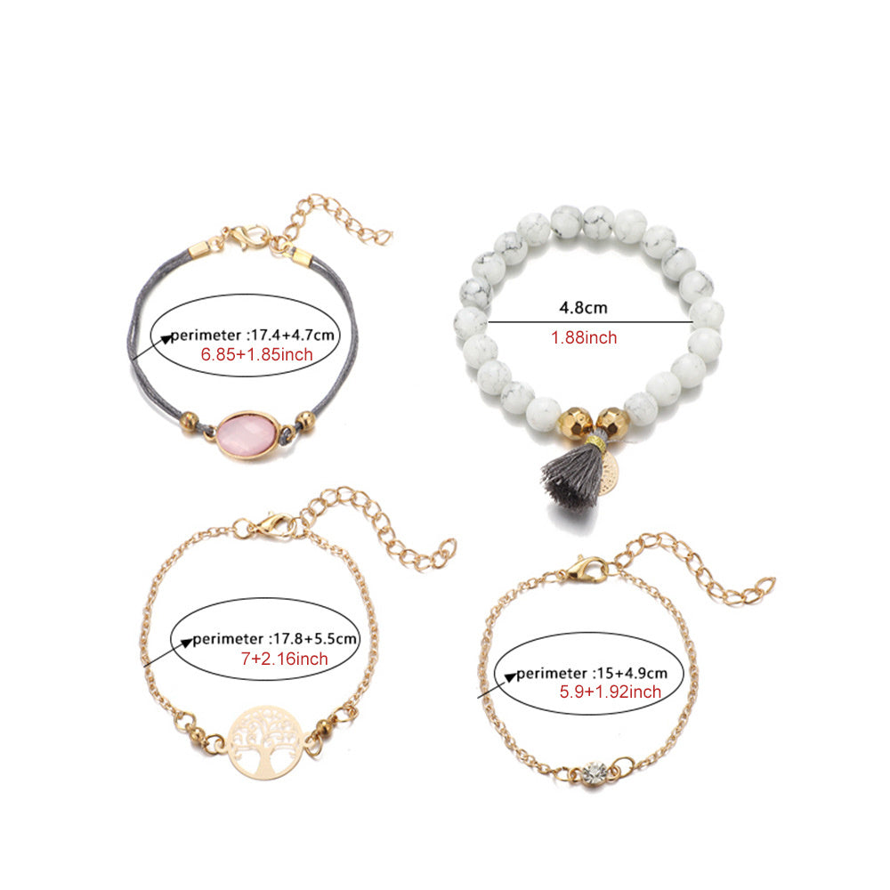 Add a touch of vintage charm with these alloy bracelets featuring a life tree design and tassel details. Perfect gift for women.