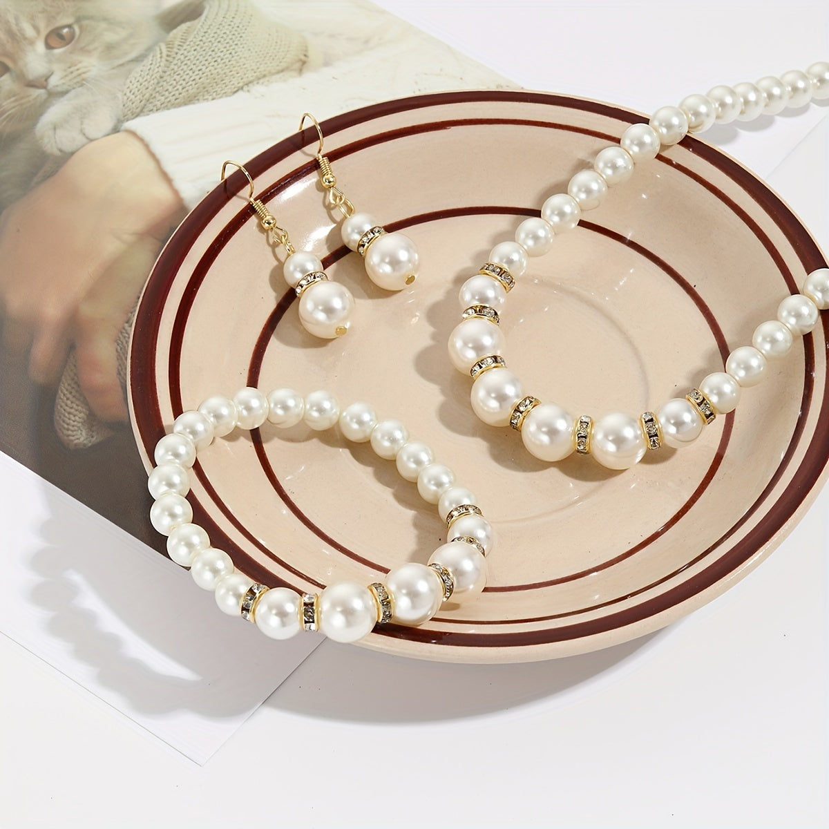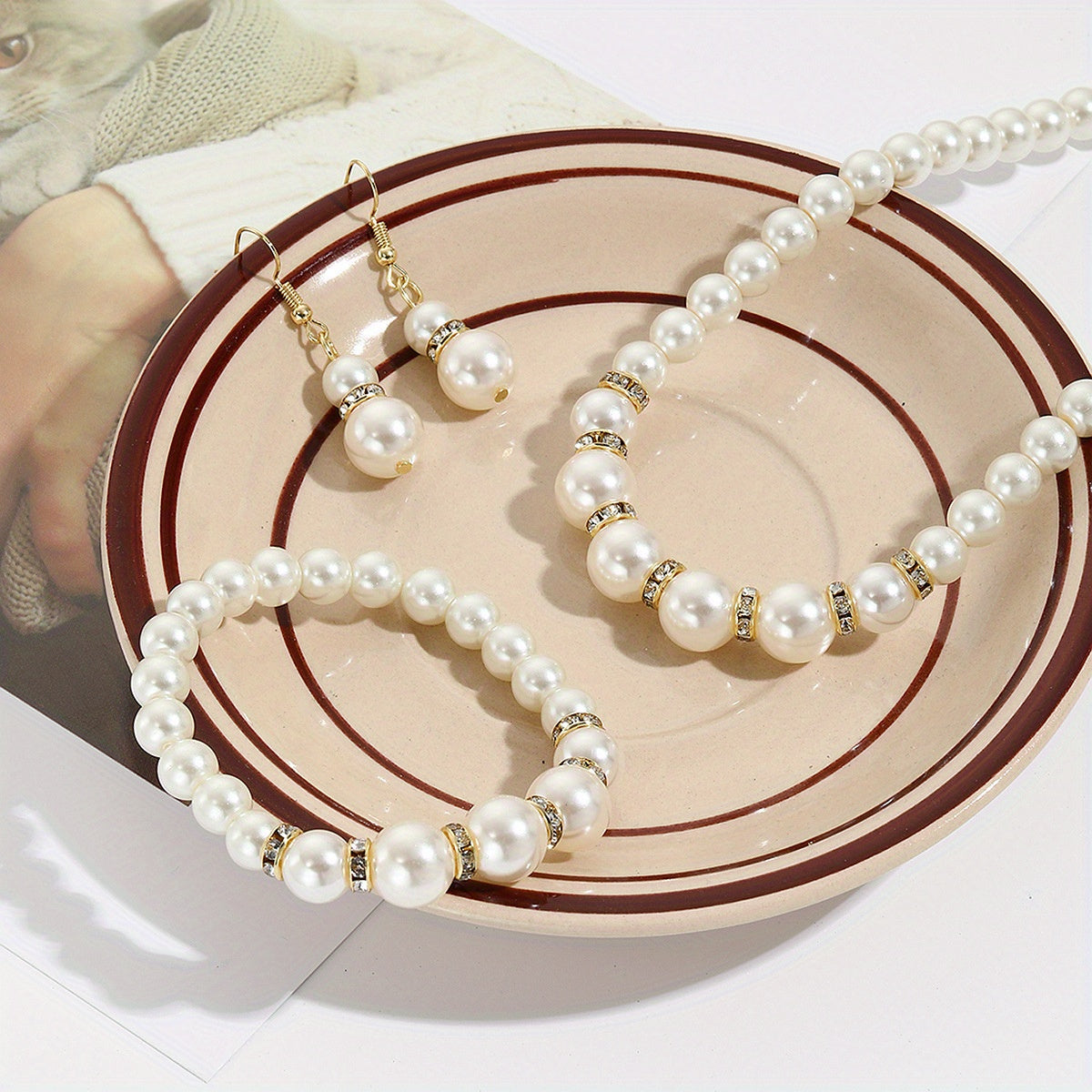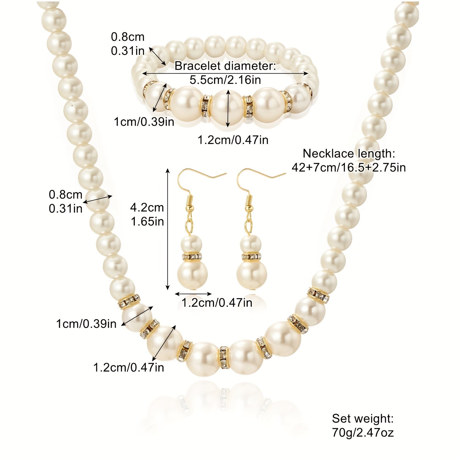 Complete your look with this elegant 4-piece jewelry set featuring inlaid rhinestone and milky stones. Perfect for daily wear or special occasions, this dainty set includes earrings, necklace, and bracelet.