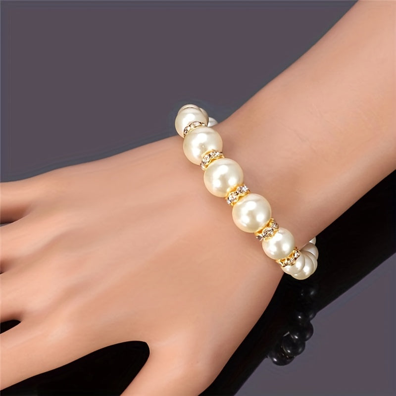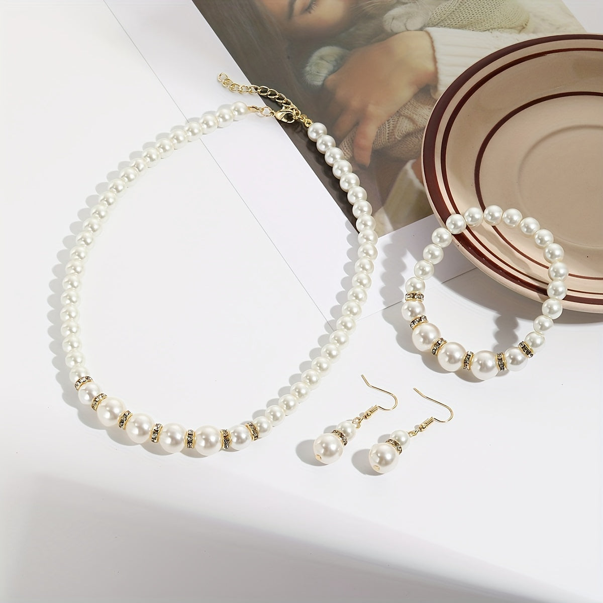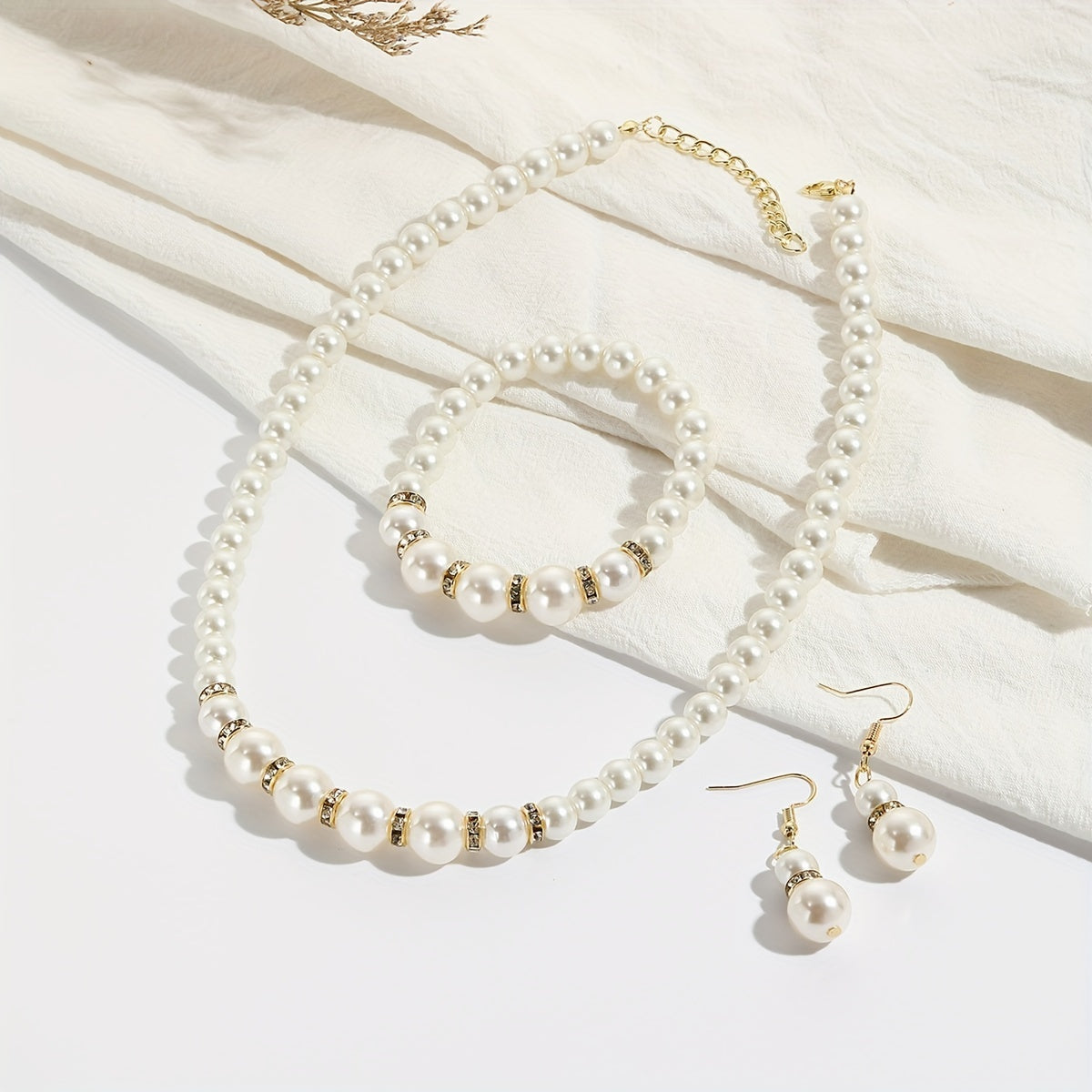 Complete your look with this elegant 4-piece jewelry set featuring inlaid rhinestone and milky stones. Perfect for daily wear or special occasions, this dainty set includes earrings, necklace, and bracelet.