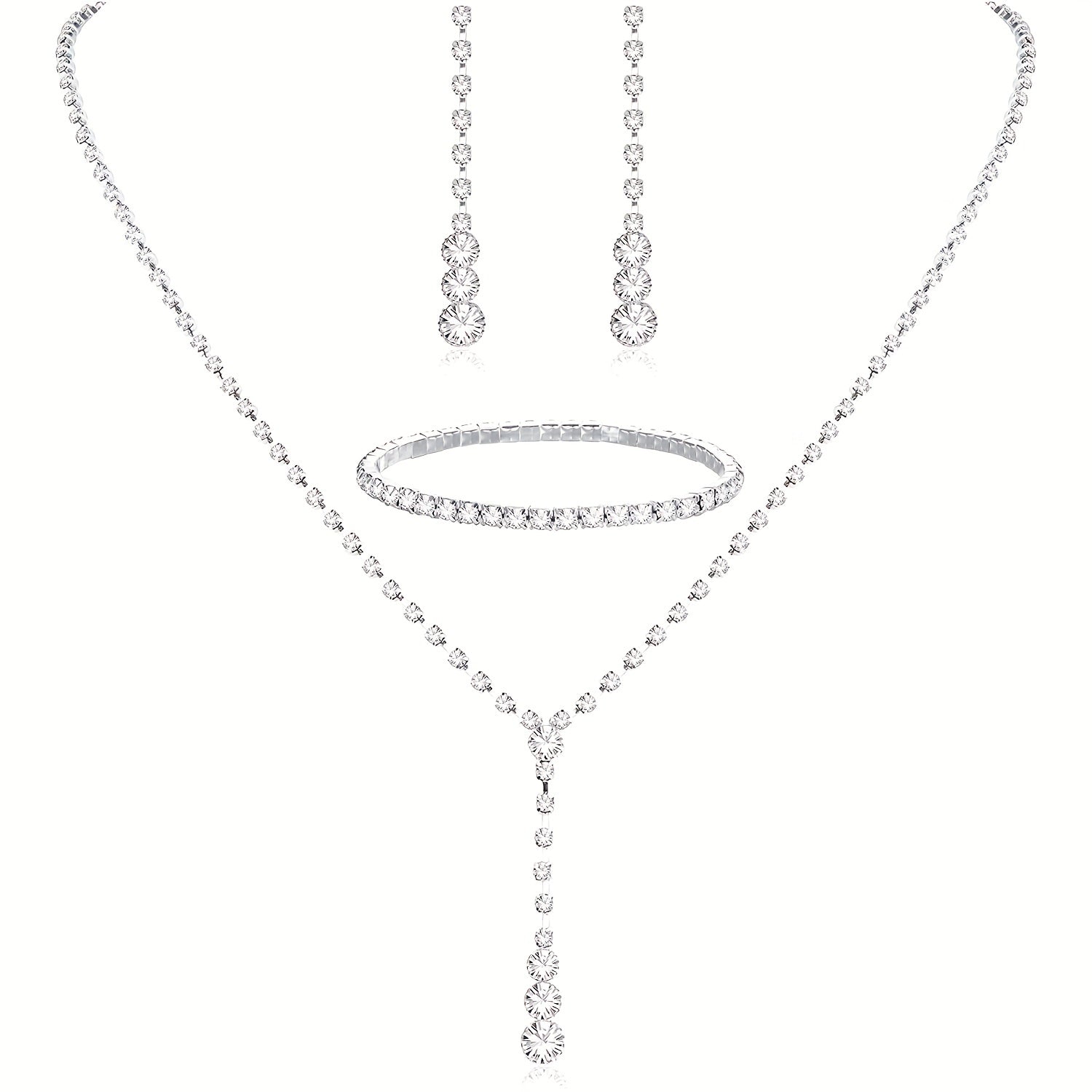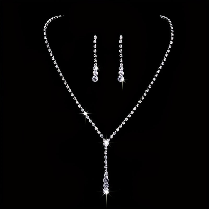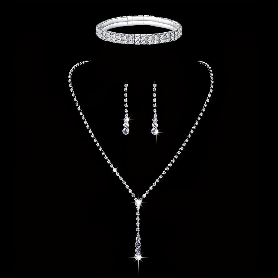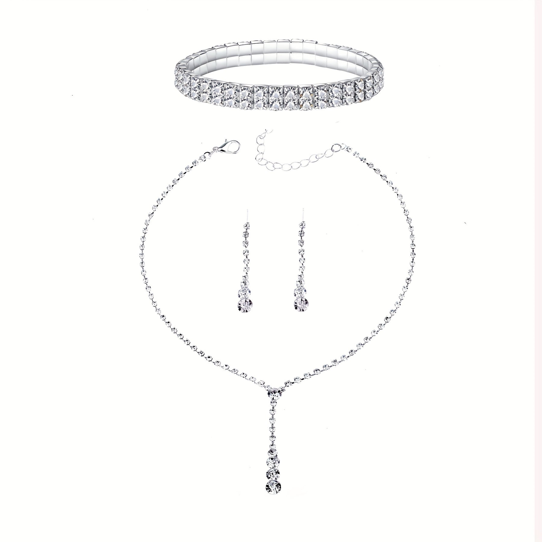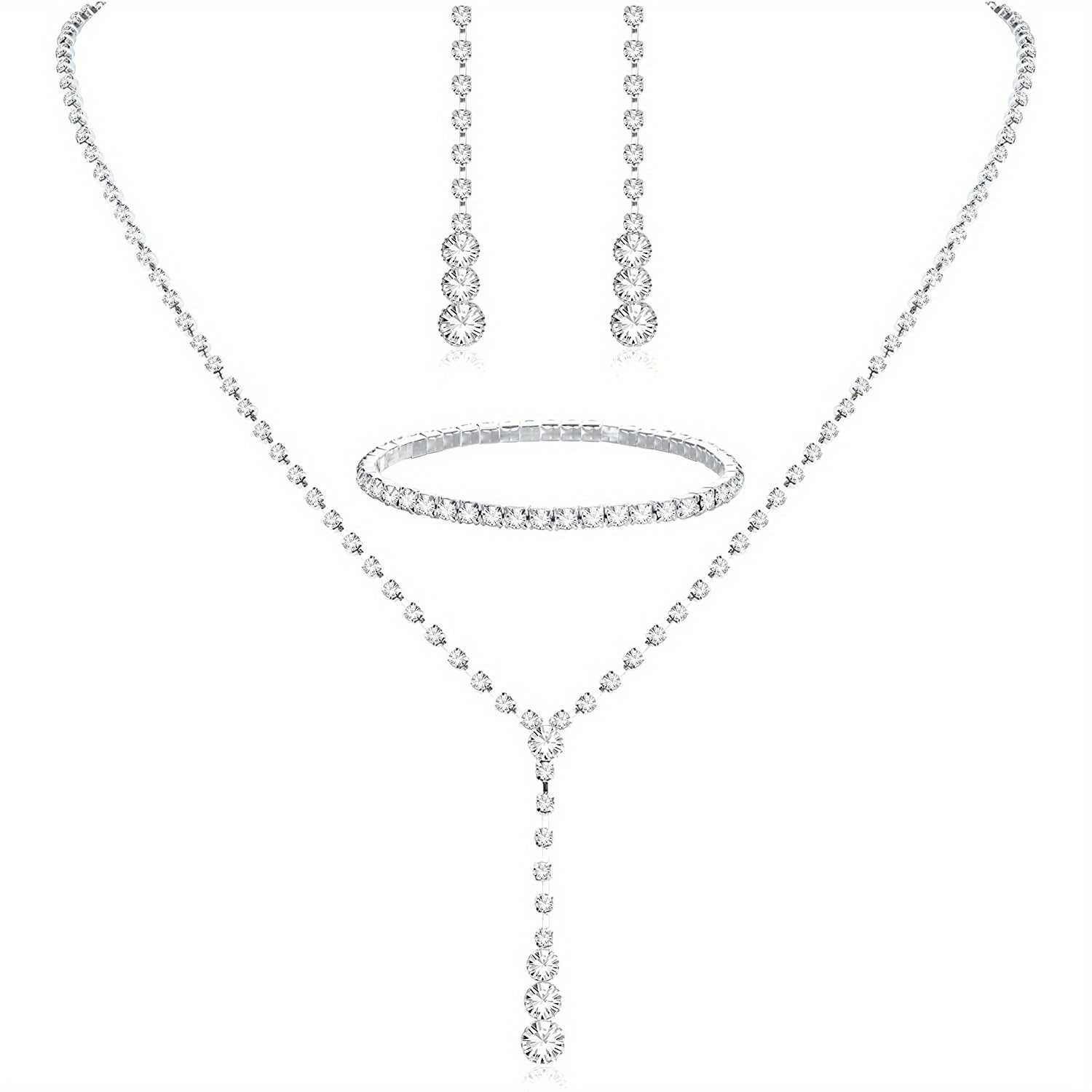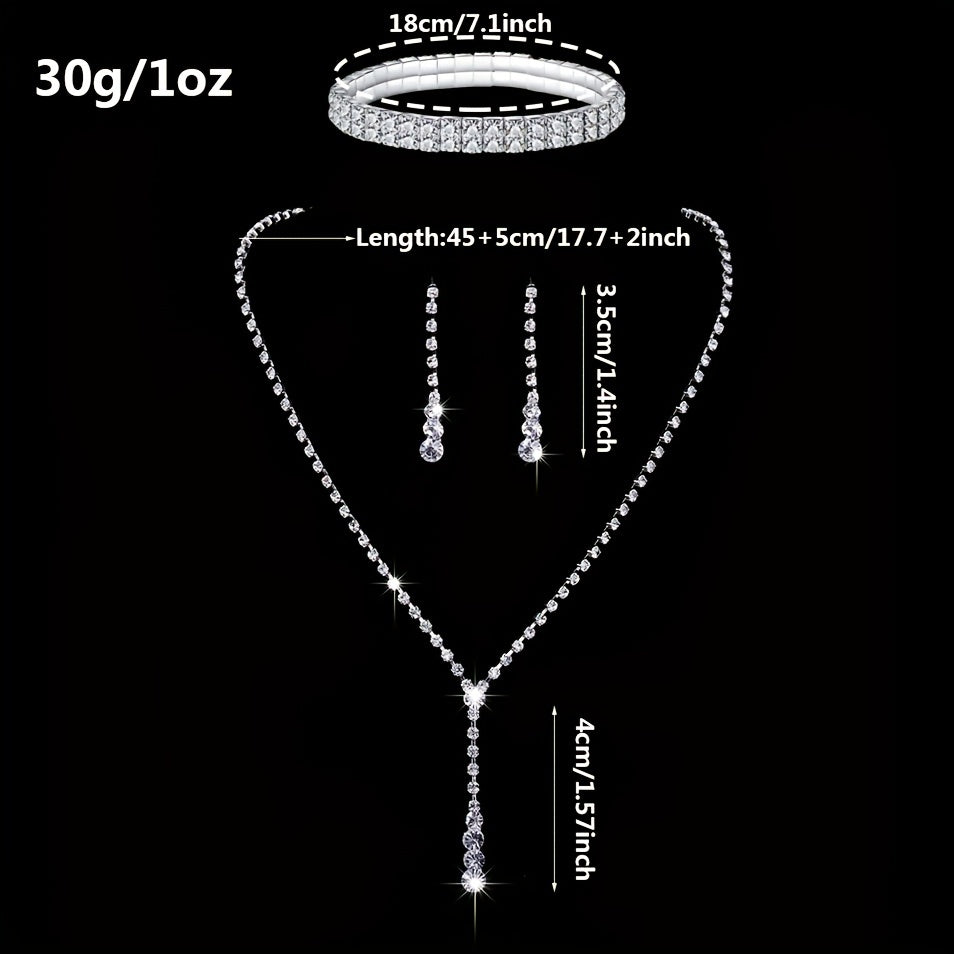 This elegant jewelry set includes a necklace, earrings, and bracelet with sparkling rhinestones. Perfect for engagement, wedding, or evening party decorations, this dainty set will enhance any outfit.