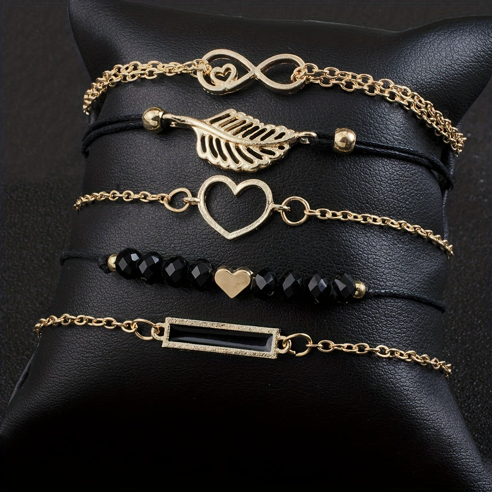 This stackable bracelet set features 5 pieces with inlaid rhinestones, making it a perfect gift for Mother's birthdays. Each bracelet adds a touch of sparkle to any outfit.